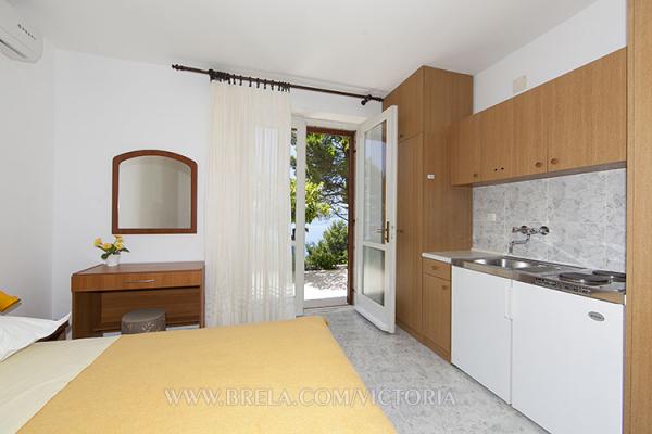 Victoria Apartments er beliggende i en rolig del af Brela - Jardula, ideel til afslapning og flygte fra stress og jag. Vi er kun 30-50m fra havet. Stranden kan nås på en del og trappen. På grund af sin placering i den første og anden række til havet, lejlighederne har udsigt over havet og øen Brac. Lejlighederne er placeret i stueetagen og første sal med balkoner eller terasom.Svi har aircondition og har gratis wi-fi og vores gæster er garanteret en parkeringsplads. Det tilbyder dobbelt A4 3 lejlighed, helt ny A2 2 lejligheder og lejligheder / studios for 2-3 personer. Kun få hundrede meter fra os er kvalitet restauran og strand-barer.
