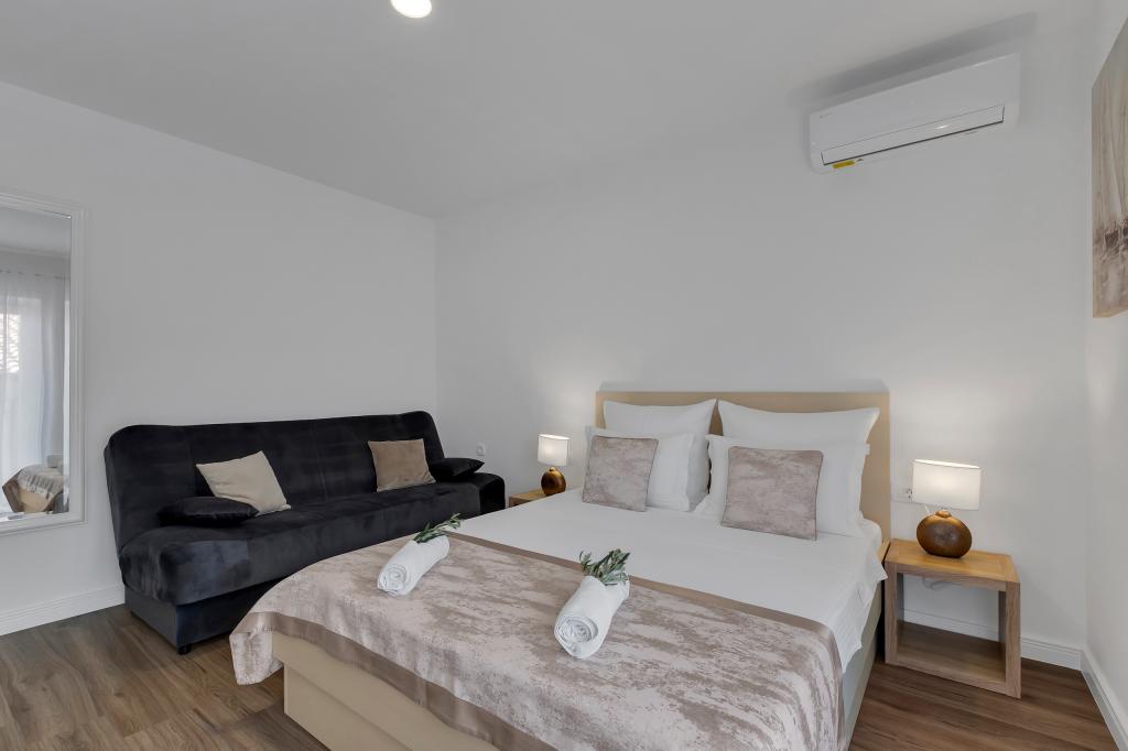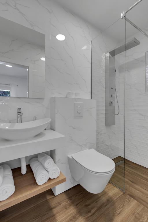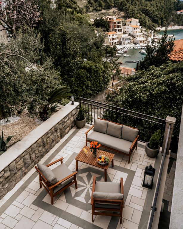 Villa AMore ligger i Brela, i den smukke Stomarica-bugt, ved foden af Biokovo-bjerget. Villaen blev fuldstændig renoveret i 2020. Beliggenheden er perfekt til en fredelig og behagelig ferie med krystalklart hav, det reneste på Makarska Riviera. Villaen er indrettet med en perfekt blanding af traditionelt og moderne. Udefra set er det et traditionelt dalmatisk stenhus, og indenfor er der komfortable lejligheder med et moderne design. Det er omgivet af en stor have med 17 oliventræer, adskillige palmer og en fyrreskov. Ved at bo på Villa AMore vil du opleve en ægte dalmatisk atmosfære. I en oase af fred vil du kun høre bølgerne slå mod klipperne og lugte duften af fyrregrene, mens du fuldstændig glemmer byens folkemængder og lyden af biler. Både dag og nat kan du nyde den unikke ro med fuglesang, da vi ligger i et roligt område. Du vil blive betaget af nærheden til stranden, og du vil kunne hoppe i havet på mindre end to minutter.