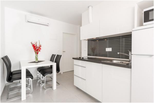Lejlighederne er moderne, aircondition, har et fuldt udstyret køkken, badeværelse med bruser, LED satellit-tv, trådløs internetadgang og balkon med udsigt over havet og øerne.