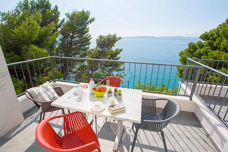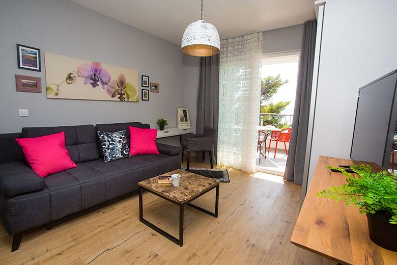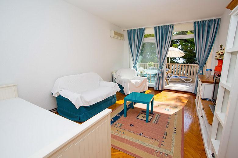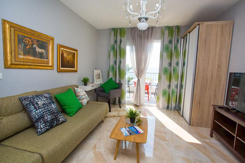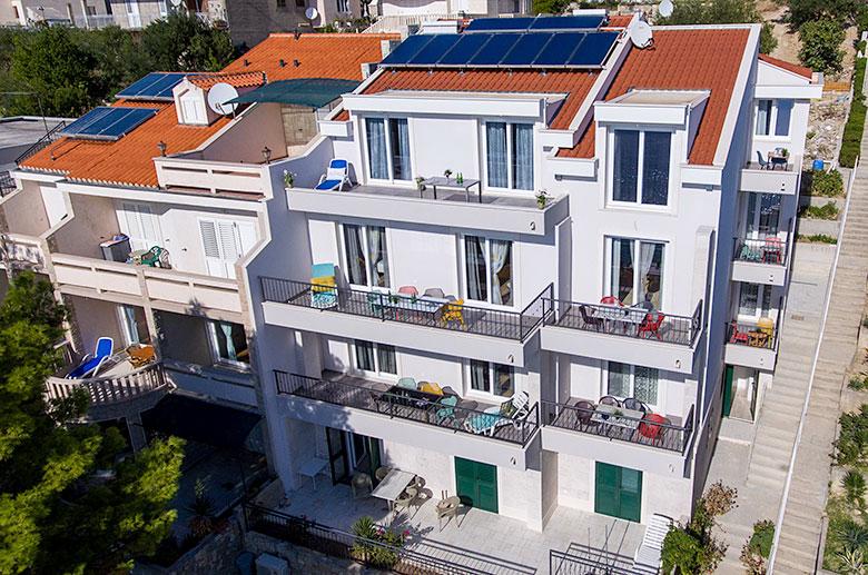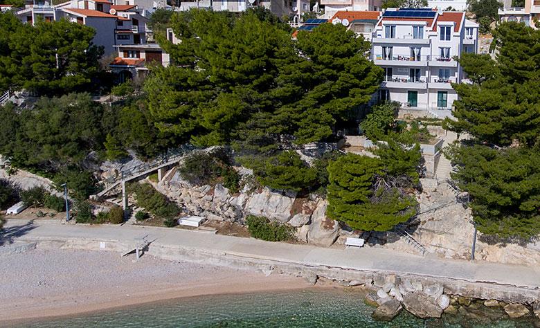 Villaen ligger direkte ud til det blå hav og en smuk stenstrand. Langt fra trafik og den sædvanlige sommertravlhed er det et ideelt sted for din fredelige og behagelige ferie. Enkle og moderne lejligheder tilbyder alt hvad du behøver.