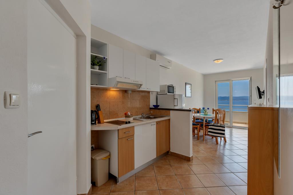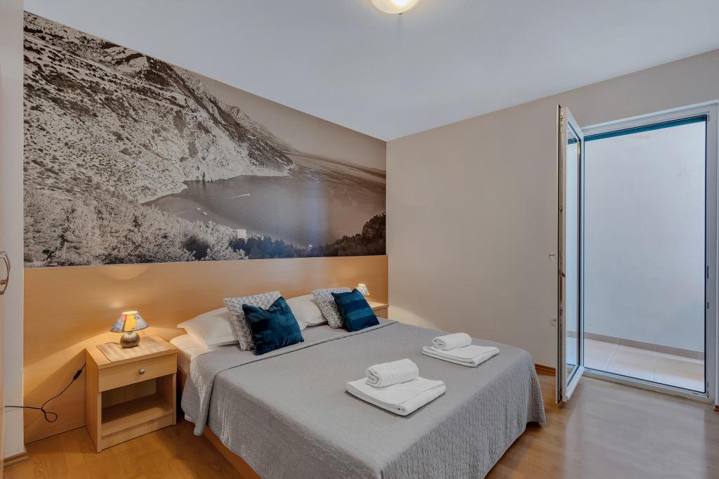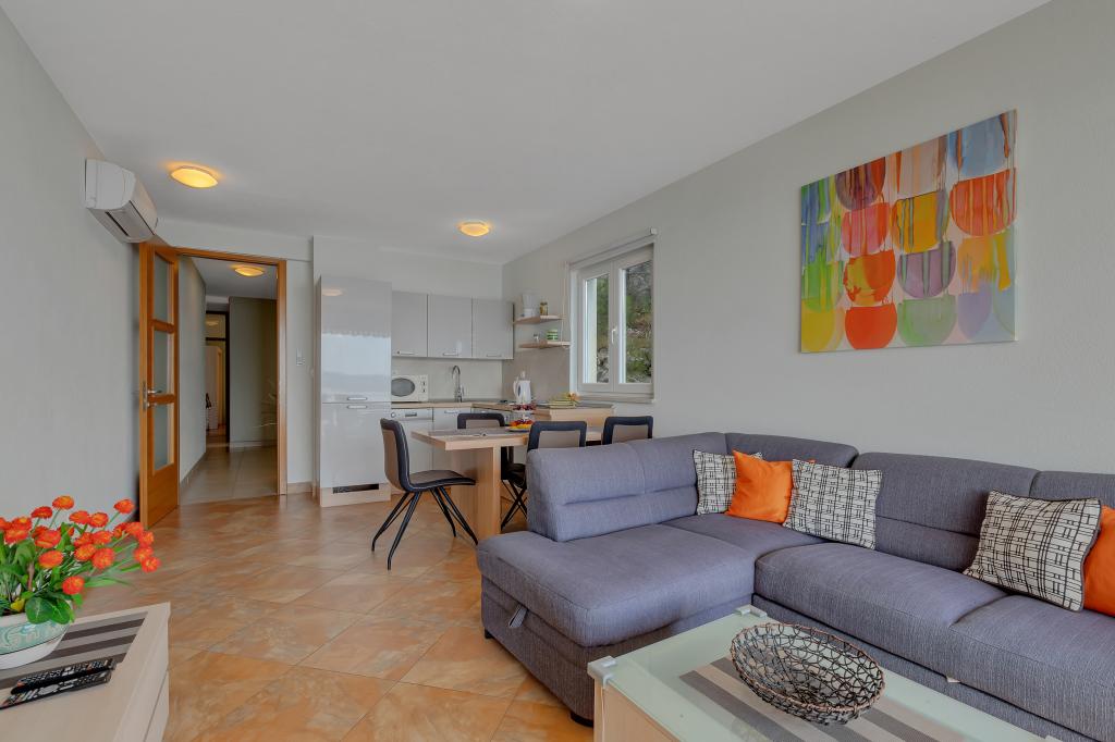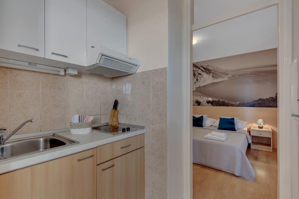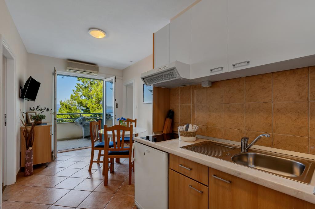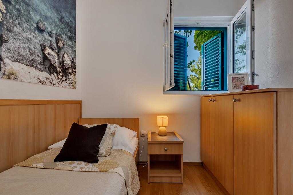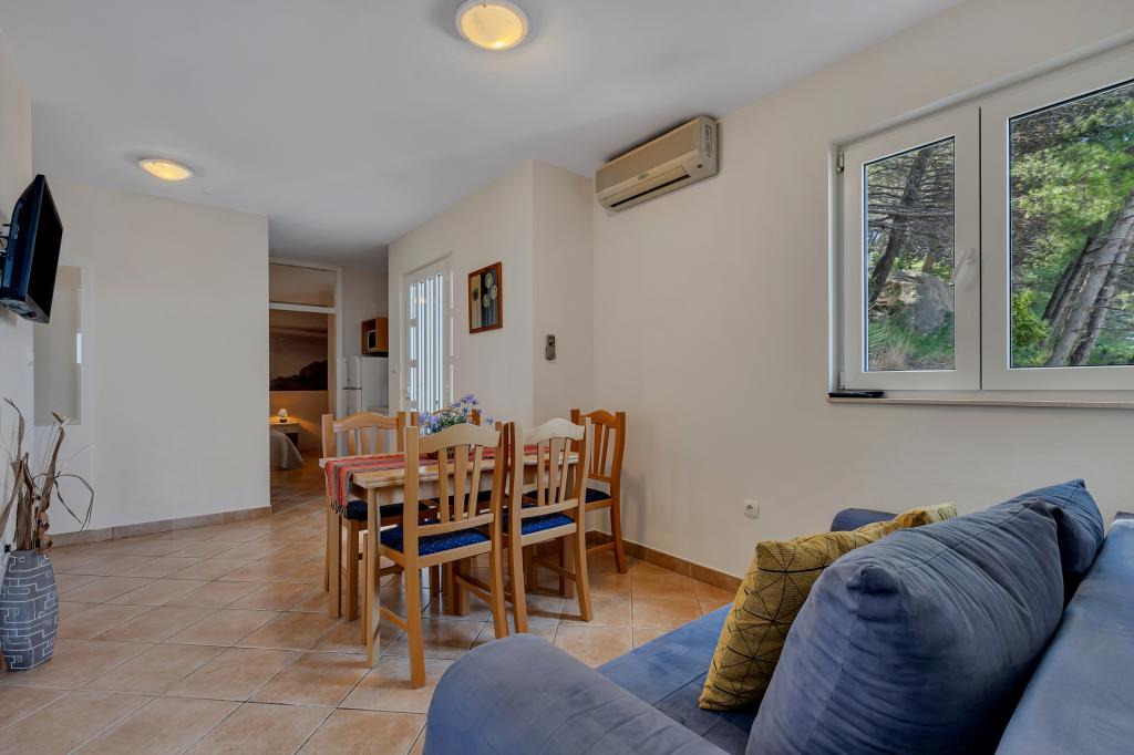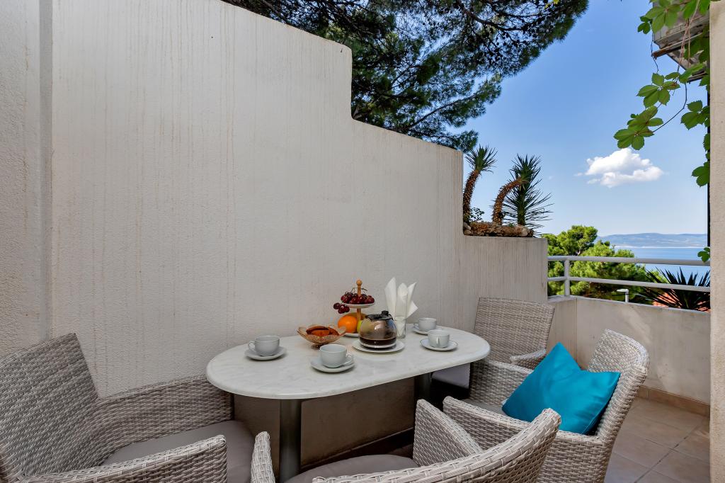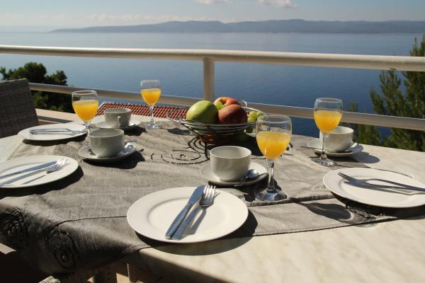 Vores hus ligger i en rolig og grøn del af Brela, beliggende 50 meter fra havet. Stranden, som ligger lige under huset, kan nås via private trapper. Den berømte Punta rata strand ligger cirka 500 meter fra huset, og byens centrum er cirka 10-15 minutters gang gennem det smukke landskab ved havet. Alle lejligheder har aircondition og har satellit-tv og internetadgang.