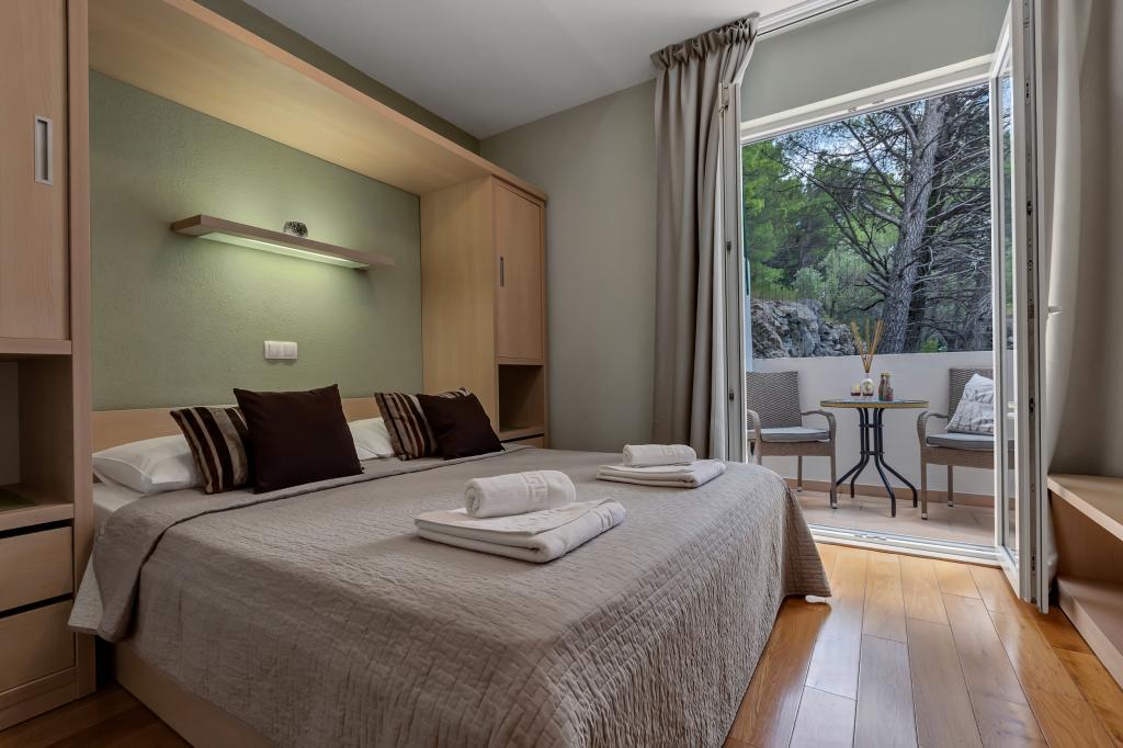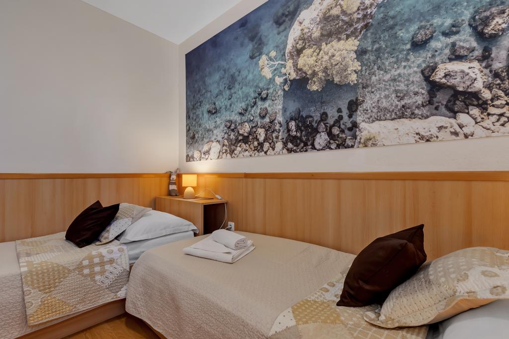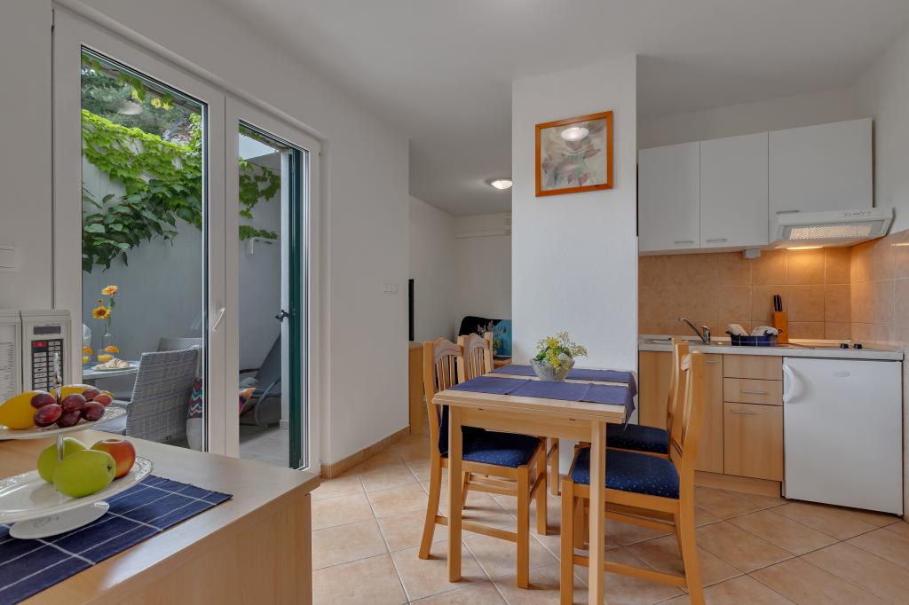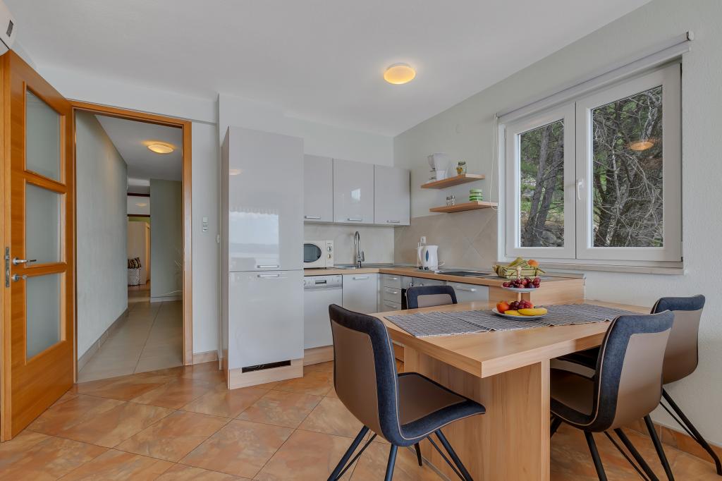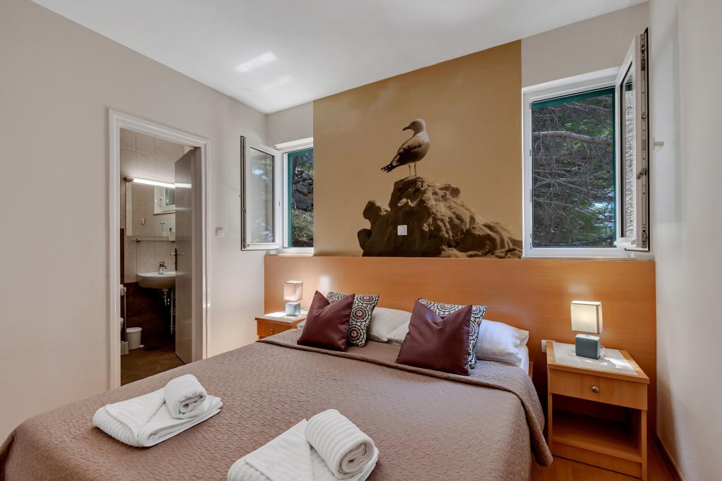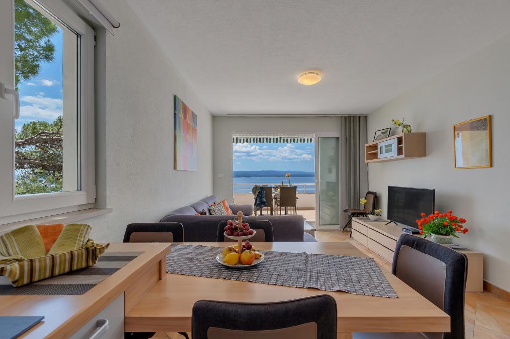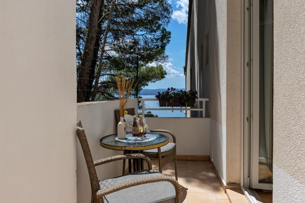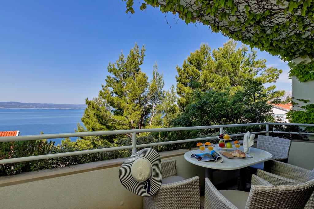 Vores hus ligger i en rolig og grøn del af Brela, beliggende 50 meter fra havet. Stranden, som ligger lige under huset, kan nås via private trapper. Den berømte Punta rata strand ligger cirka 500 meter fra huset, og byens centrum er cirka 10-15 minutters gang gennem det smukke landskab ved havet. Alle lejligheder har aircondition og har satellit-tv og internetadgang.