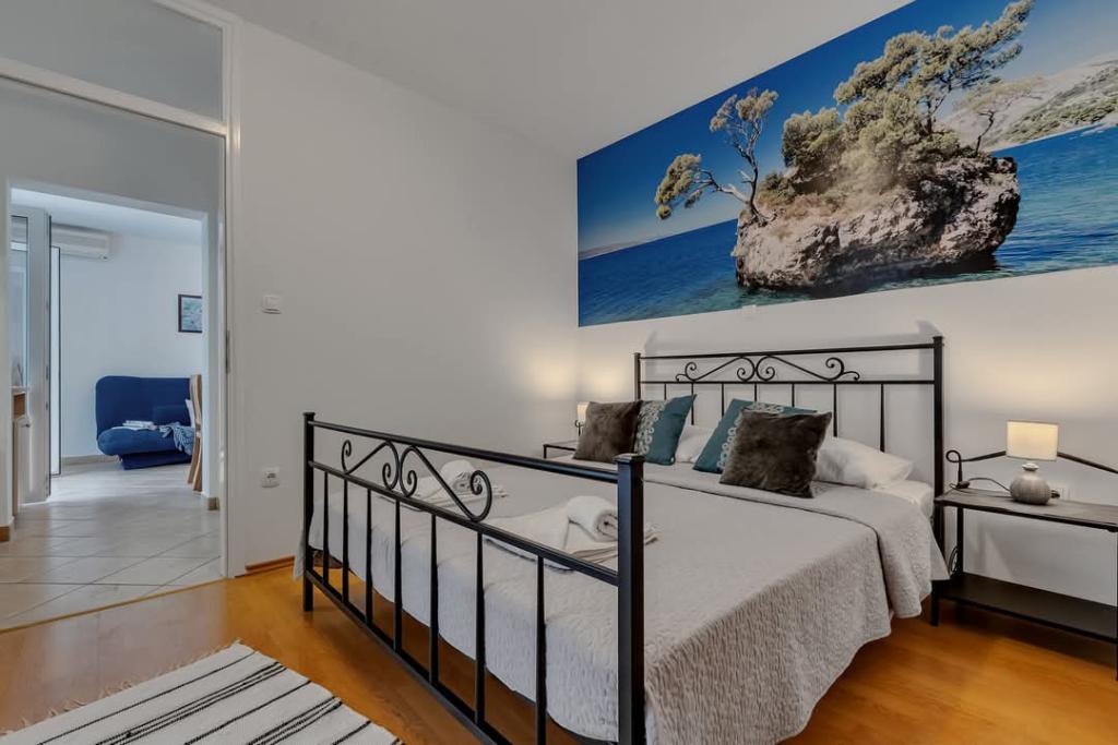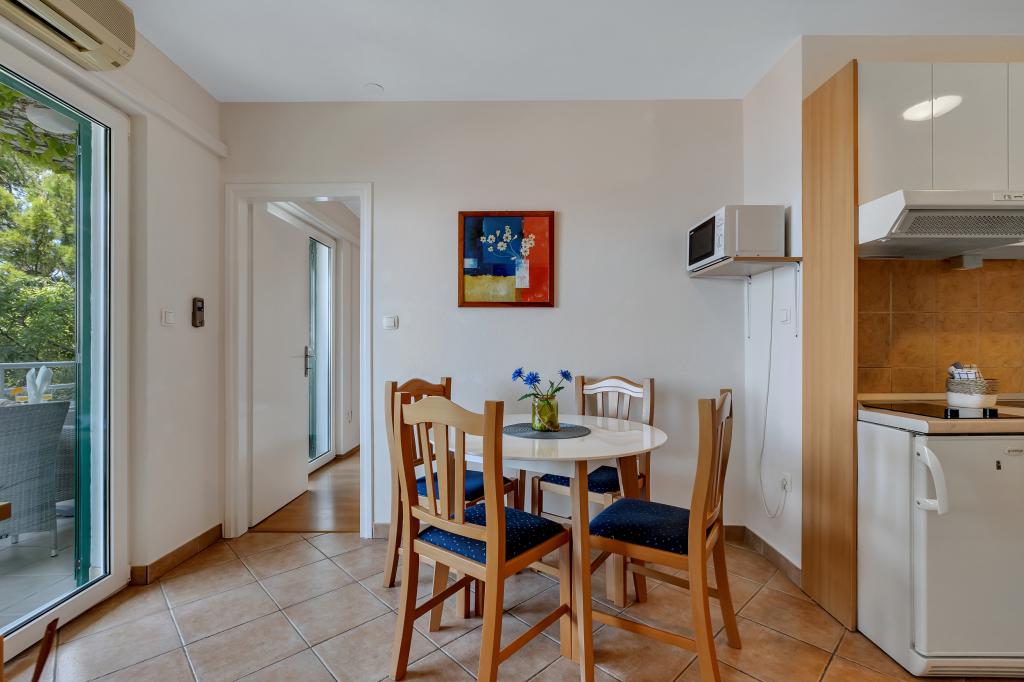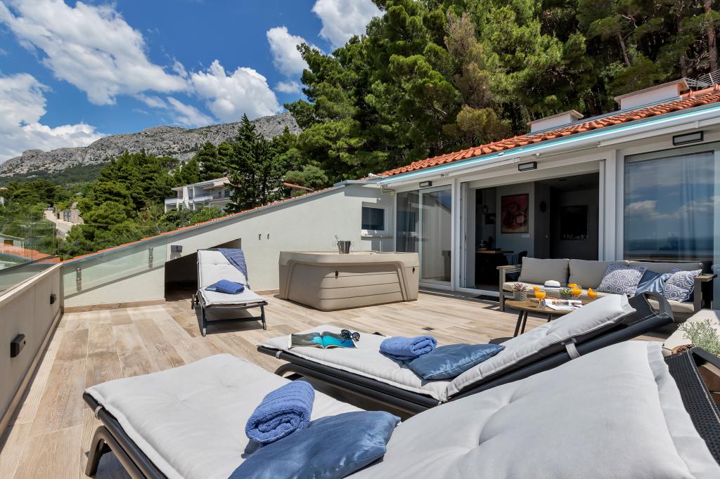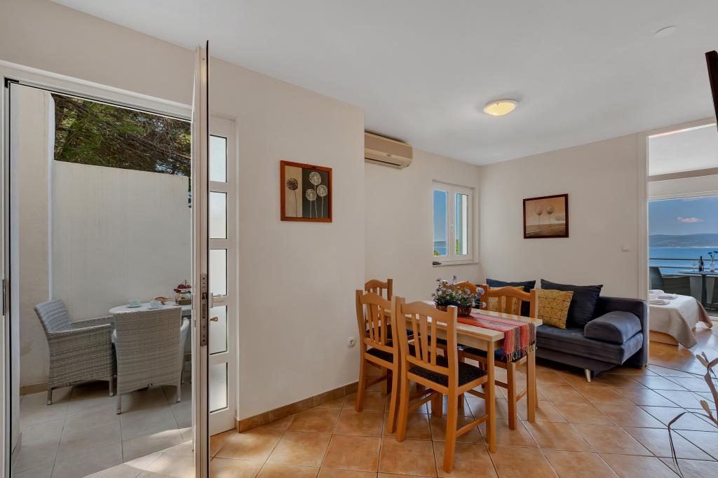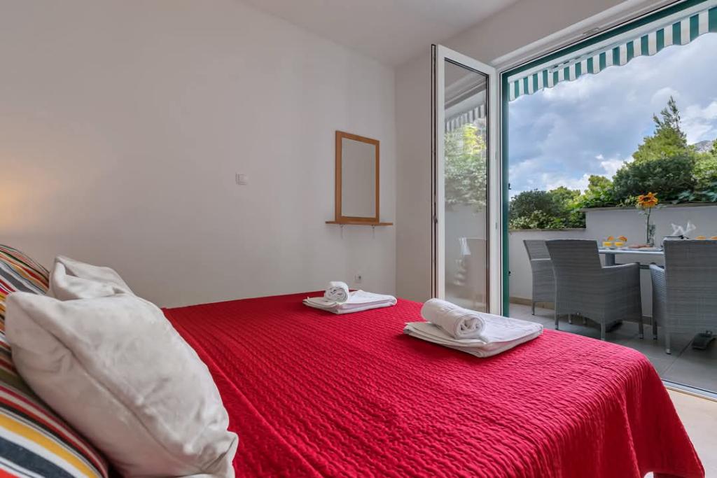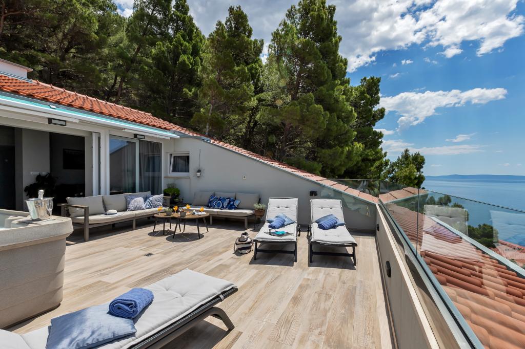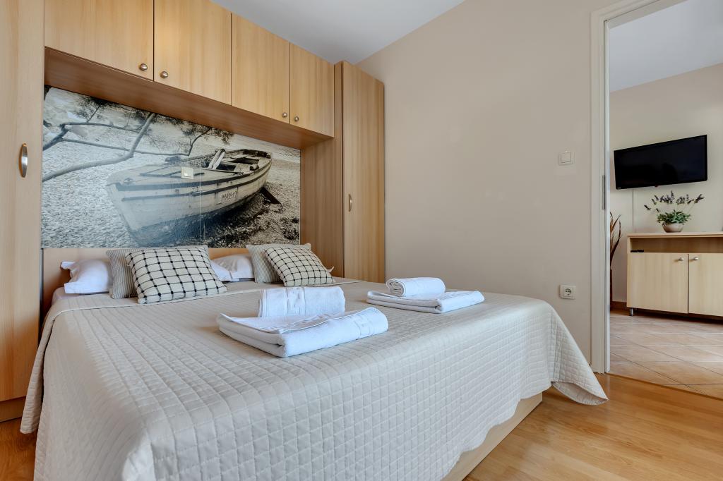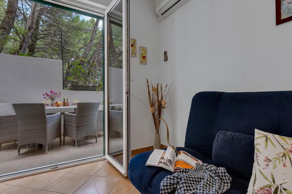 Vores hus ligger i en rolig og grøn del af Brela, beliggende 50 meter fra havet. Stranden, som ligger lige under huset, kan nås via private trapper. Den berømte Punta rata strand ligger cirka 500 meter fra huset, og byens centrum er cirka 10-15 minutters gang gennem det smukke landskab ved havet. Alle lejligheder har aircondition og har satellit-tv og internetadgang.