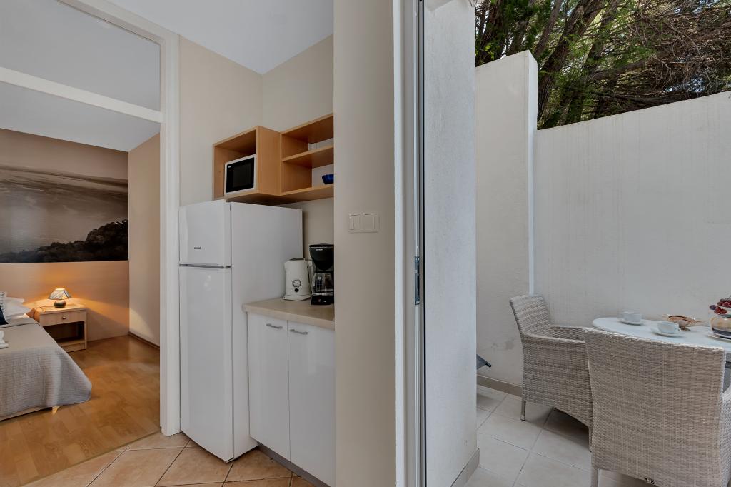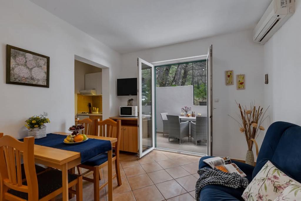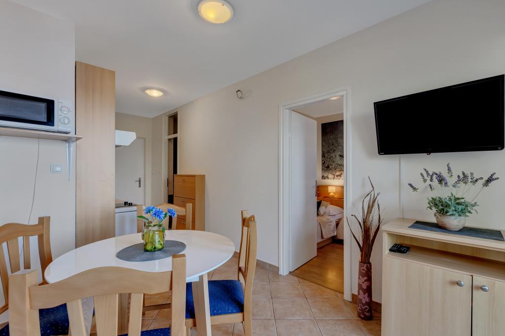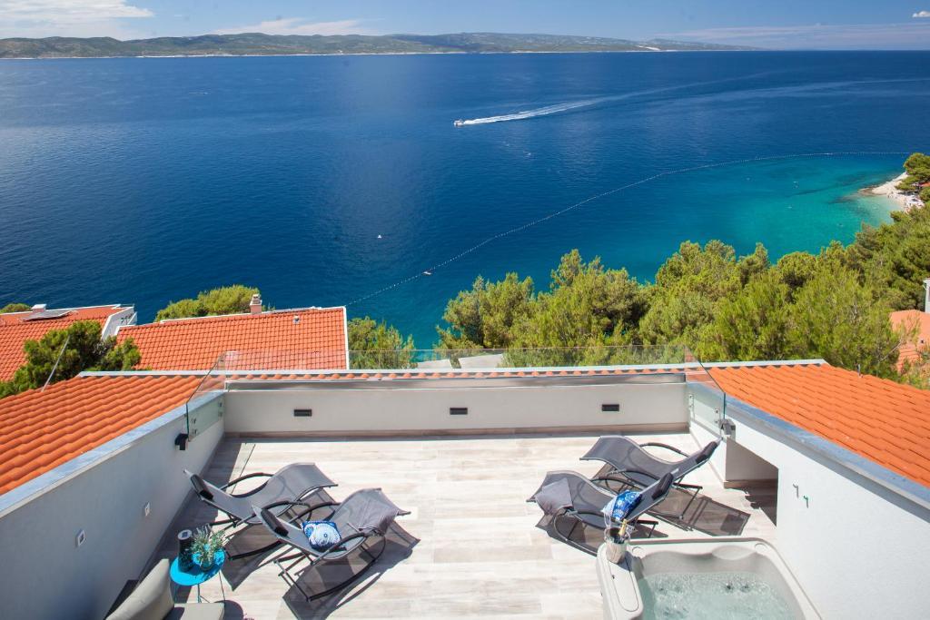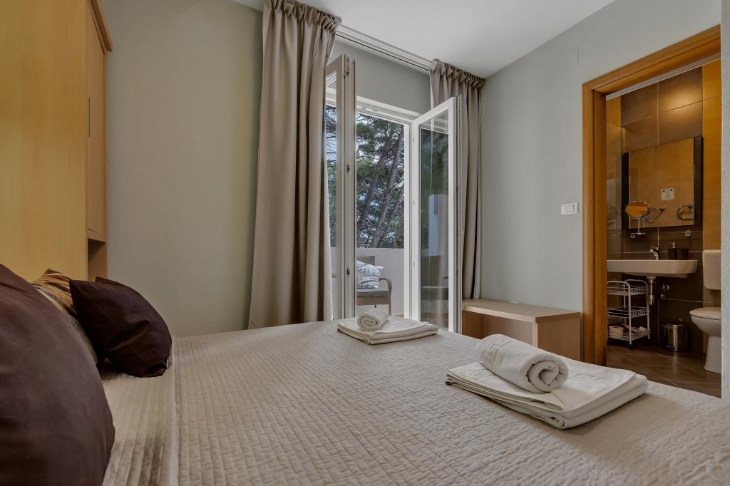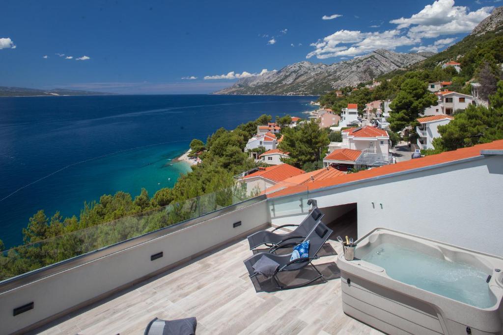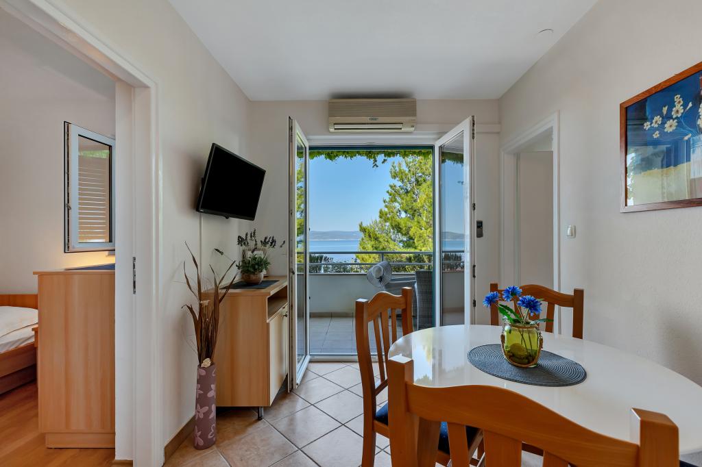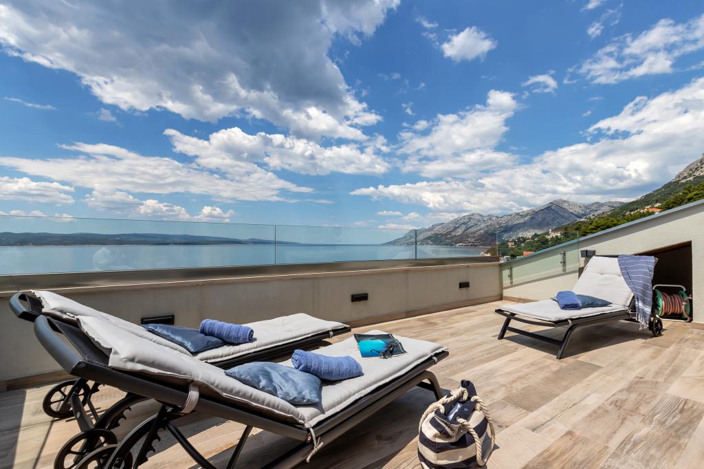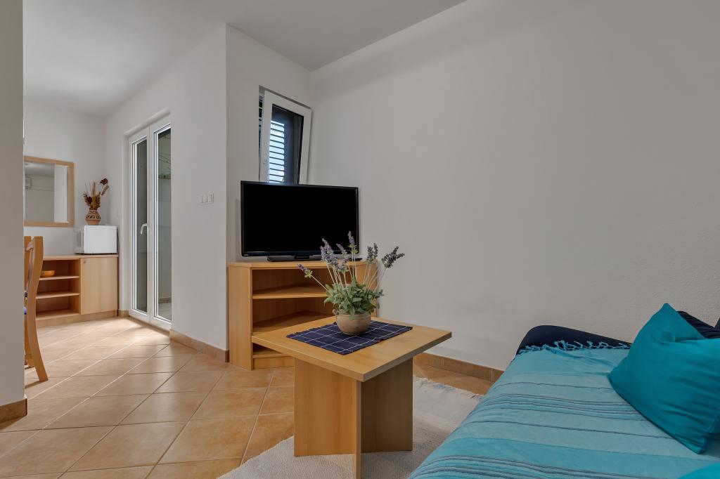 Vores hus ligger i en rolig og grøn del af Brela, beliggende 50 meter fra havet. Stranden, som ligger lige under huset, kan nås via private trapper. Den berømte Punta rata strand ligger cirka 500 meter fra huset, og byens centrum er cirka 10-15 minutters gang gennem det smukke landskab ved havet. Alle lejligheder har aircondition og har satellit-tv og internetadgang.