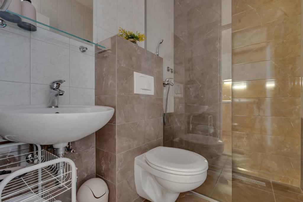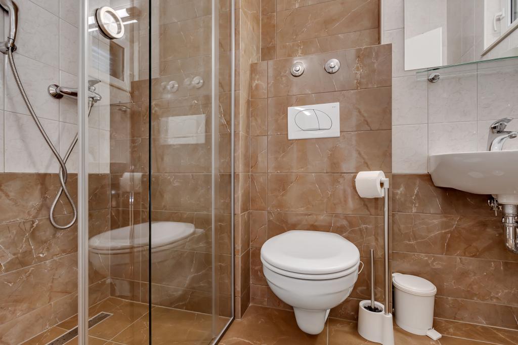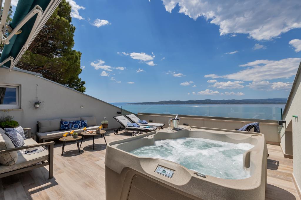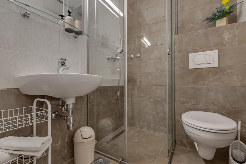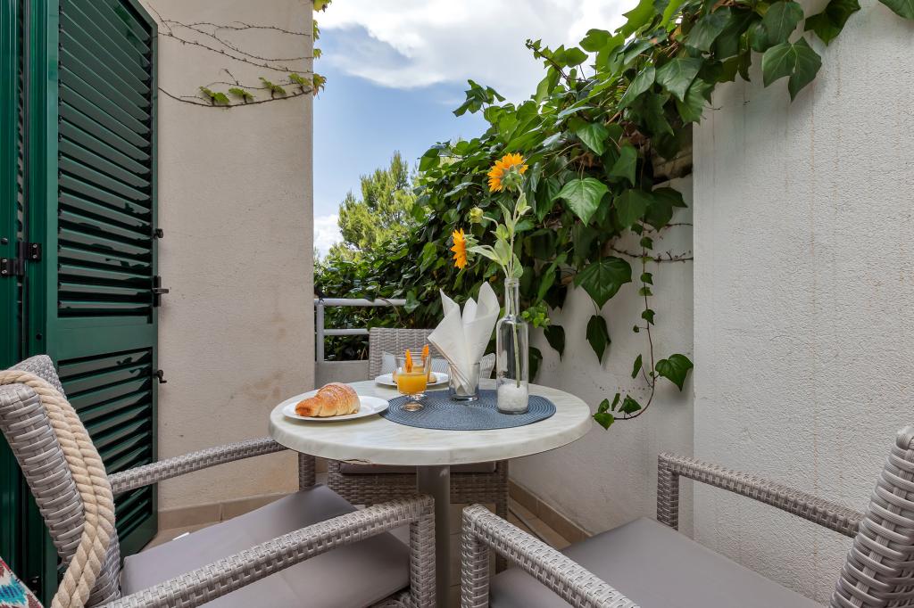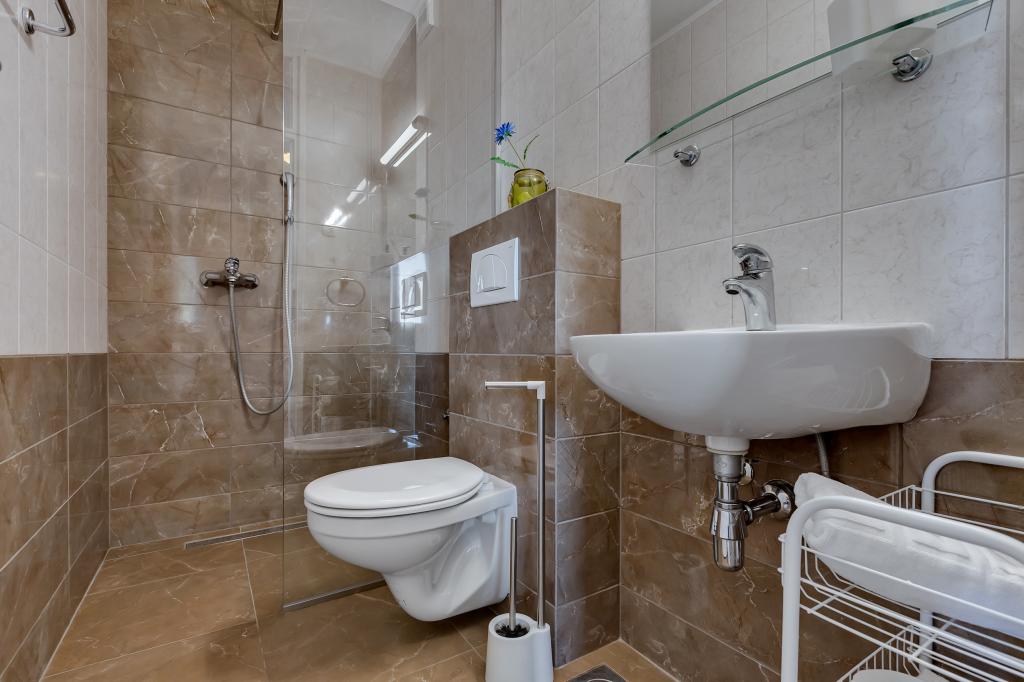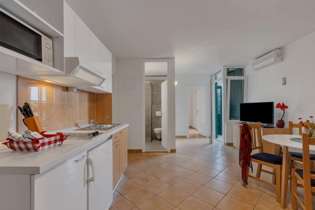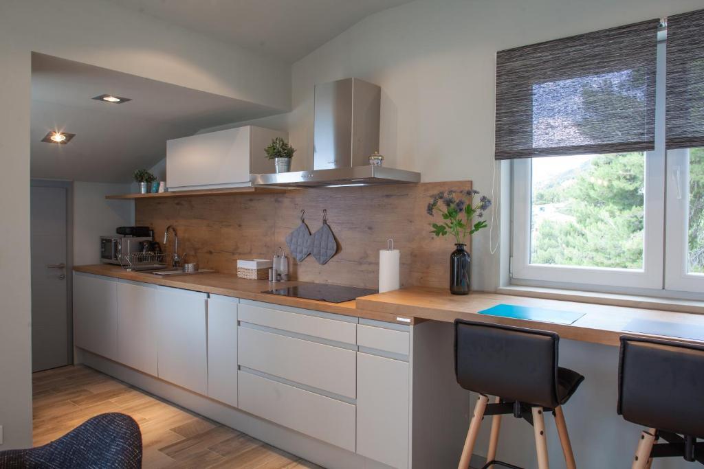 Vores hus ligger i en rolig og grøn del af Brela, beliggende 50 meter fra havet. Stranden, som ligger lige under huset, kan nås via private trapper. Den berømte Punta rata strand ligger cirka 500 meter fra huset, og byens centrum er cirka 10-15 minutters gang gennem det smukke landskab ved havet. Alle lejligheder har aircondition og har satellit-tv og internetadgang.