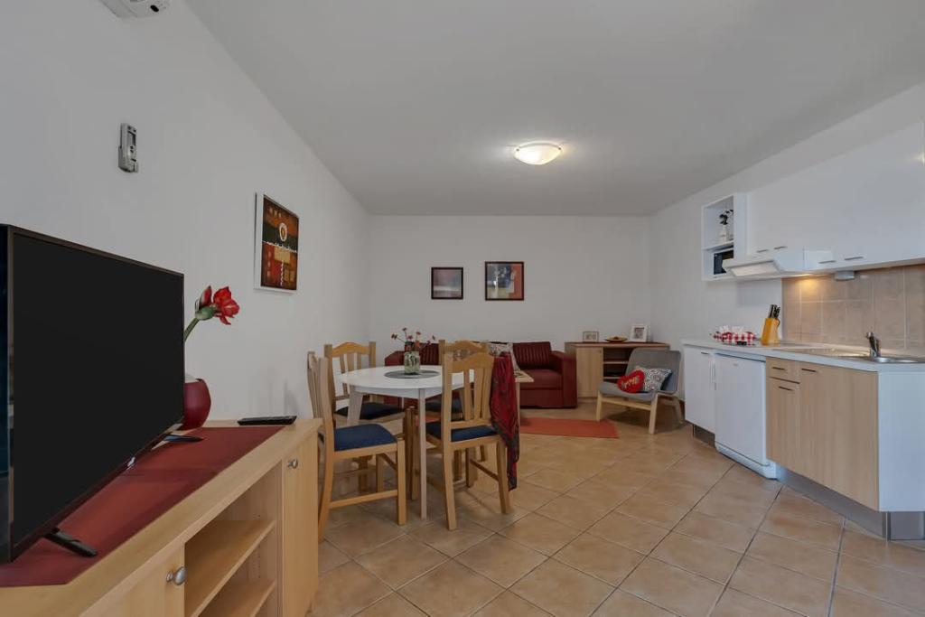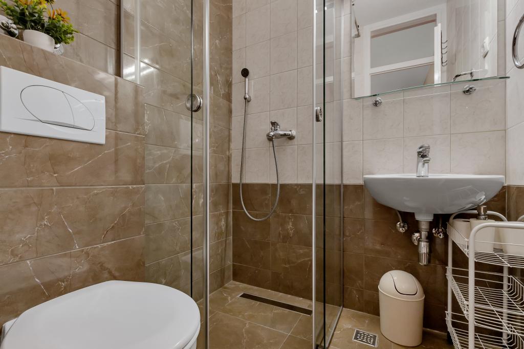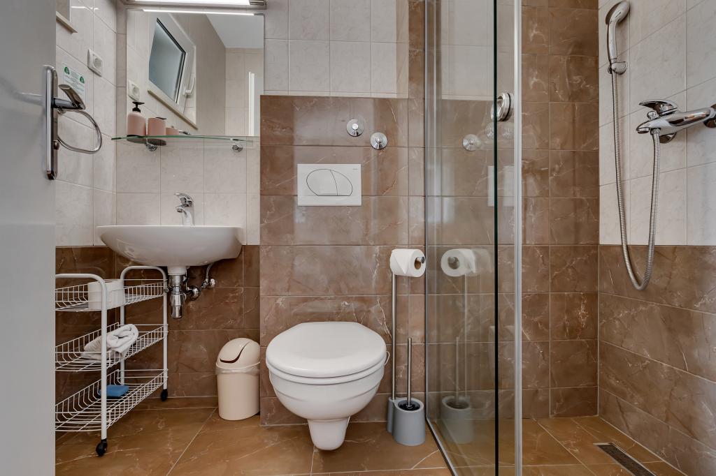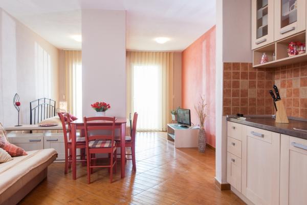 For et par dage siden vendte vi tilbage fra havet, og jeg må indrømme, at vi er meget skuffede over, hvad vi fik. Det første indtryk, da vi ankom, var ikke godt. Parkeringspladsen vi fik er op ad bakke på en slags terrasse uden hegn, og nedenunder er et afgrund og en klippe. Om natten er parkeringspladsen absolut ikke oplyst, og det er meget risikabelt at parkere. Vi styrtede med vores bil, og nu efter ferien skal vi reparere den. Det næste er, at beskrivelsen siger, at stranden ligger 50 m væk, men ingen steder står der, at der er mindst 150 trin til stranden. Vi skulle til stranden med børn og barnevogne. De satte ikke et billede af parkeringspladsen eller trappen, du bruger for at komme til stranden. Internettet er også dårligt... Brela er vidunderlig, naturen er meget smuk, men du besøger denne bolig i en bred cirkel!!