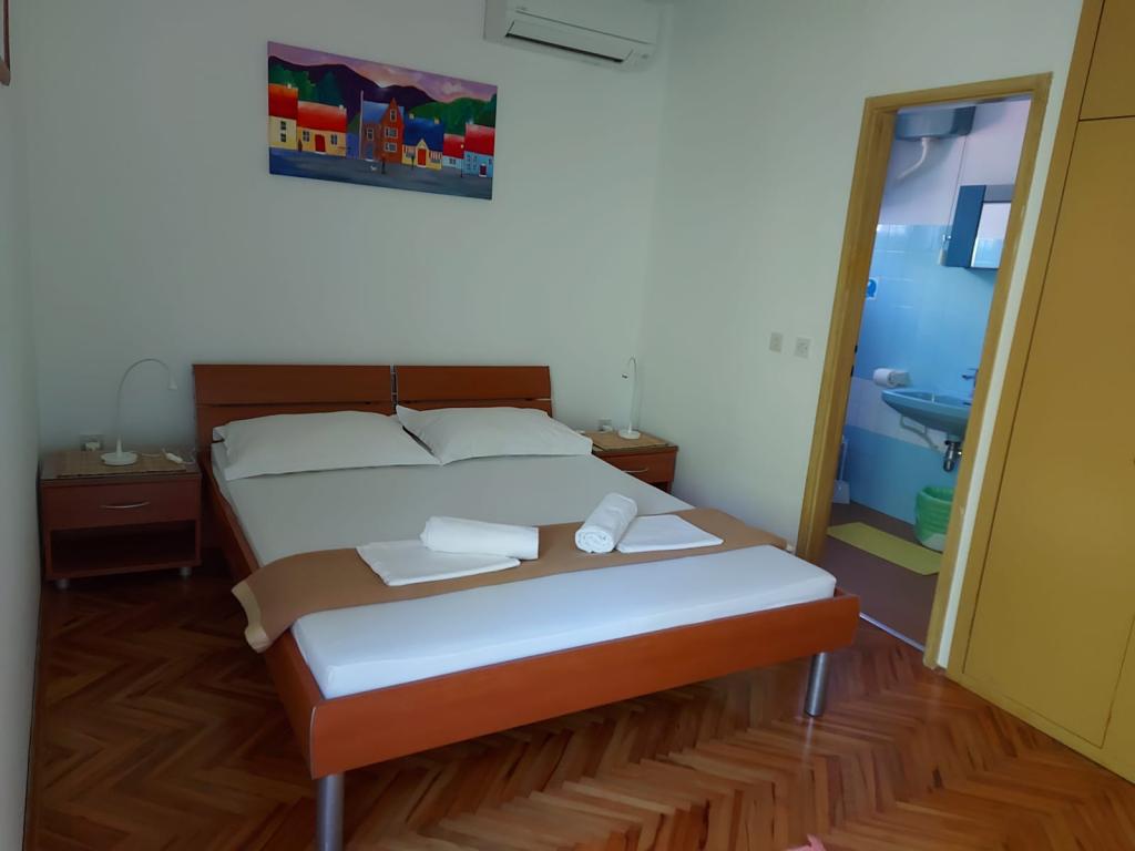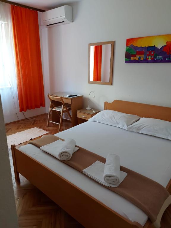 Hus til leje, værelser Brela Šodan, er beliggende i den del af Brela kaldet Soline. Huset til leje har 5 værelser, stor stue på ca 25 m2, køkken på ca 16 m2 og stor terrasse på ca 40 m2. Alle værelser har eget badeværelse, LED SAT TV 82 cm, aircondition og hurtig WIFI med ubegrænset trafik. Hele huset kan lejes som flerværelseslejlighed med eget køkken, terrasse og stue. Alle værelser har dobbeltsenge og huset kan rumme 10 voksne. Du kan også leje et værelse med badeværelse og bruge køkkenet til at tilberede morgenmad og hurtige måltider. I så fald har I jeres eget bord på den fælles terrasse med udsigt over havet. Brela Sobe Šodan ligger 50 meter fra en smuk stenstrand, som du kan se på de vedhæftede billeder. Villa Šodan ligger 5-10 minutters gang fra centrum af Brela og 10-15 minutters gang fra centrum af Baška Voda. Supermarkedet ligger 15 meter fra huset. Der er tv med satellitmodtager i stuen. For alle detaljerede oplysninger, kontakt os via e-mail.