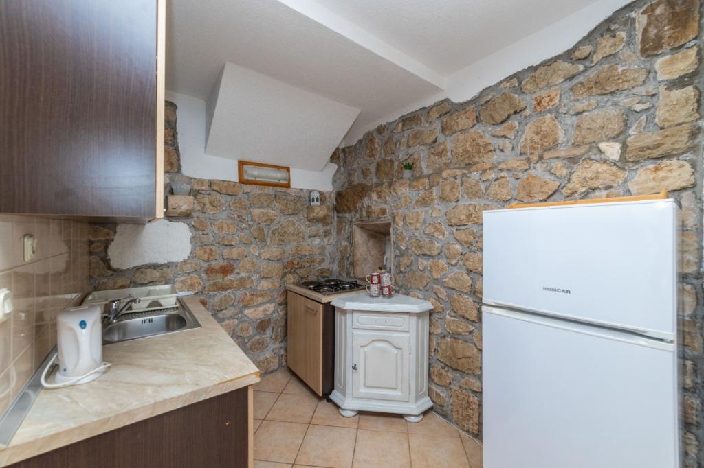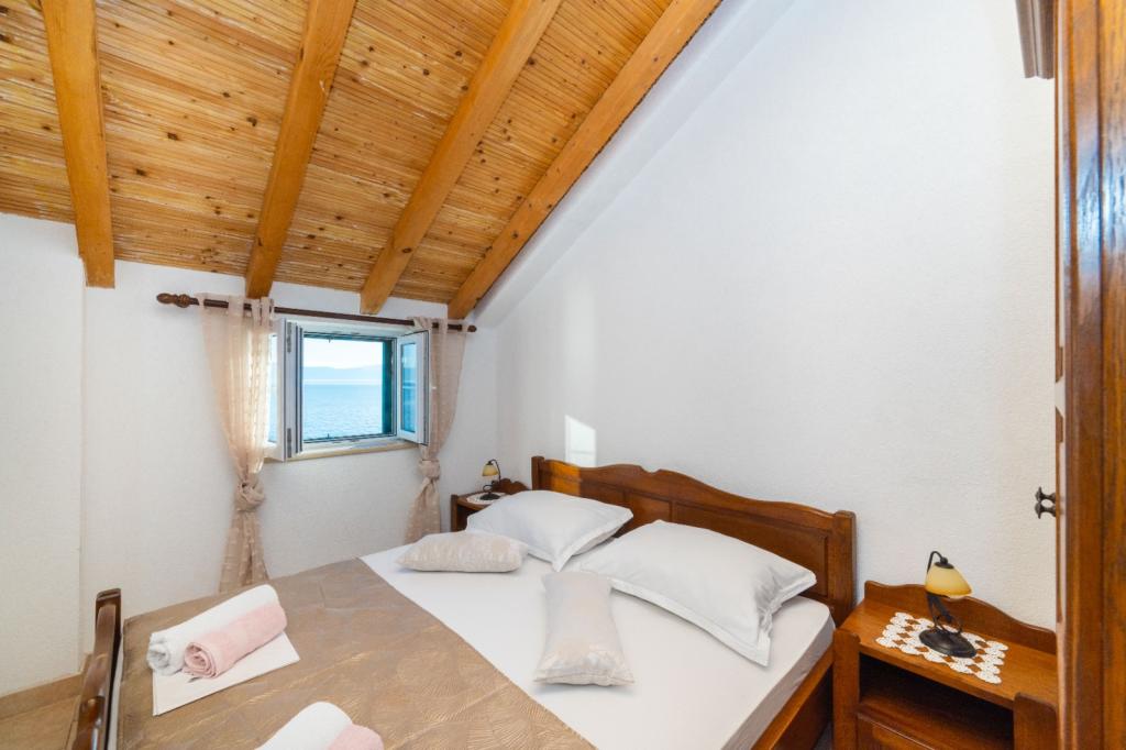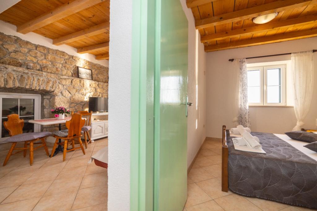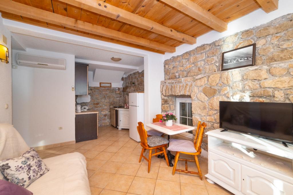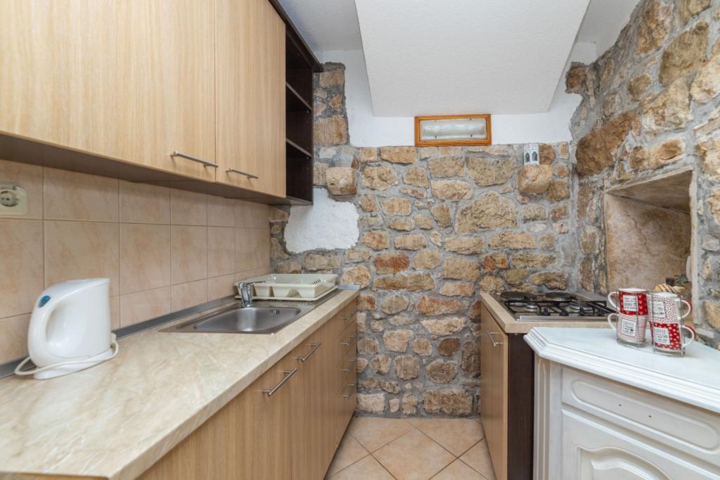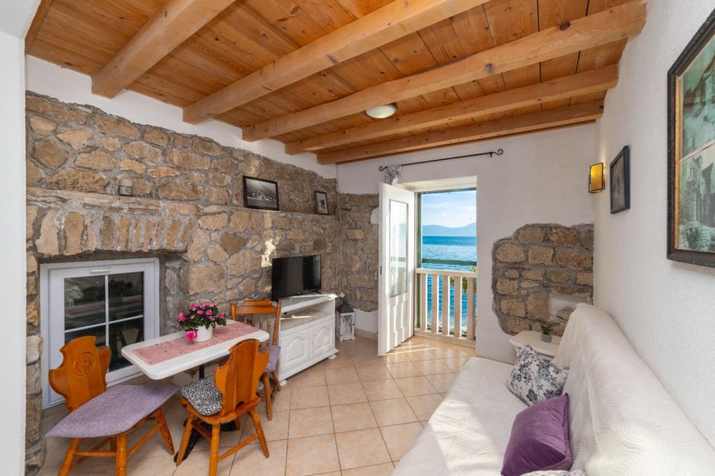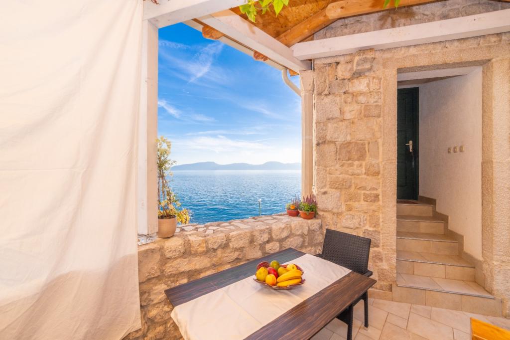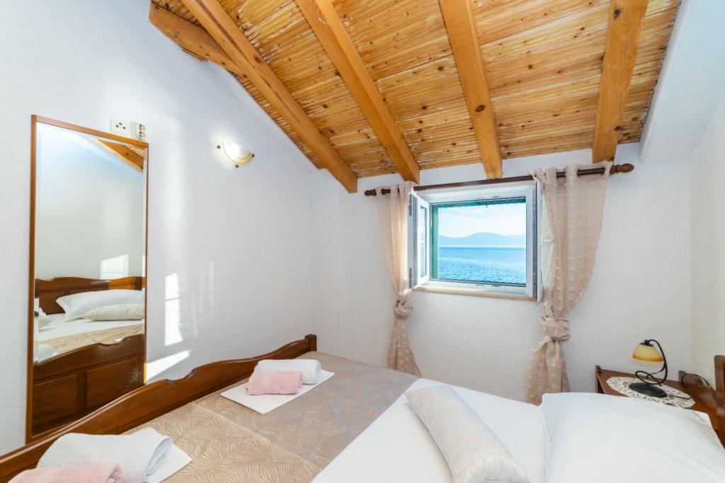 Vores gamle stenhus renoveret i to separate lejligheder. Hver lejlighed har eget køkken, badeværelse, soveværelse. Lejligheden på første sal har en balkon med havudsigt og en lille terrasse på den anden side af huset. Huset har moderne udstyr, men stranden er kun 5 meter og er beliggende i den lille kystby Brist. Centret er 10 minutter væk, og de større nærliggende by har en 2 km. Berømte turistmål ligesom Split, Dubrovnik, Mostar, kan Medjugorje besøges i et par timer. Brist er et roligt sted ved havet ideel til ferie alle, især familier med små børn.