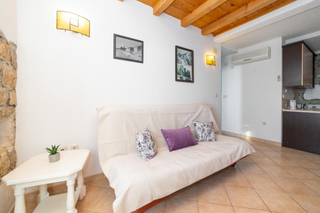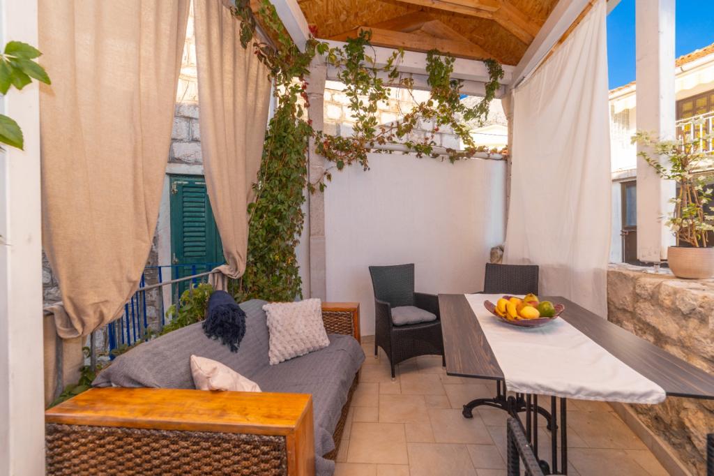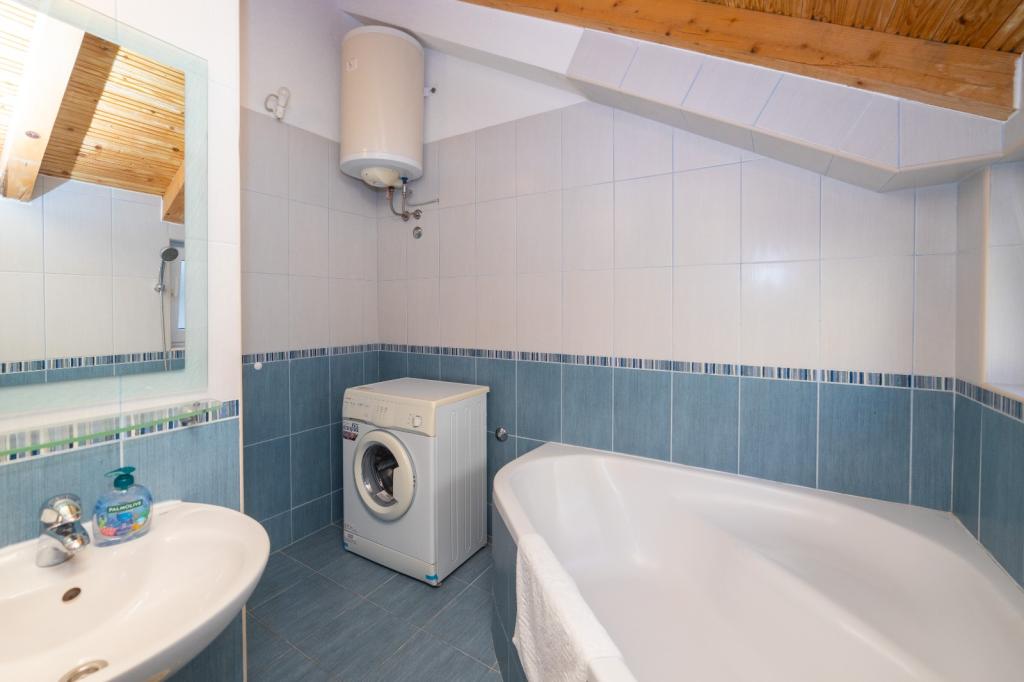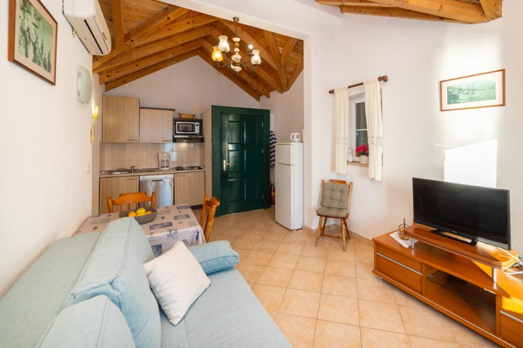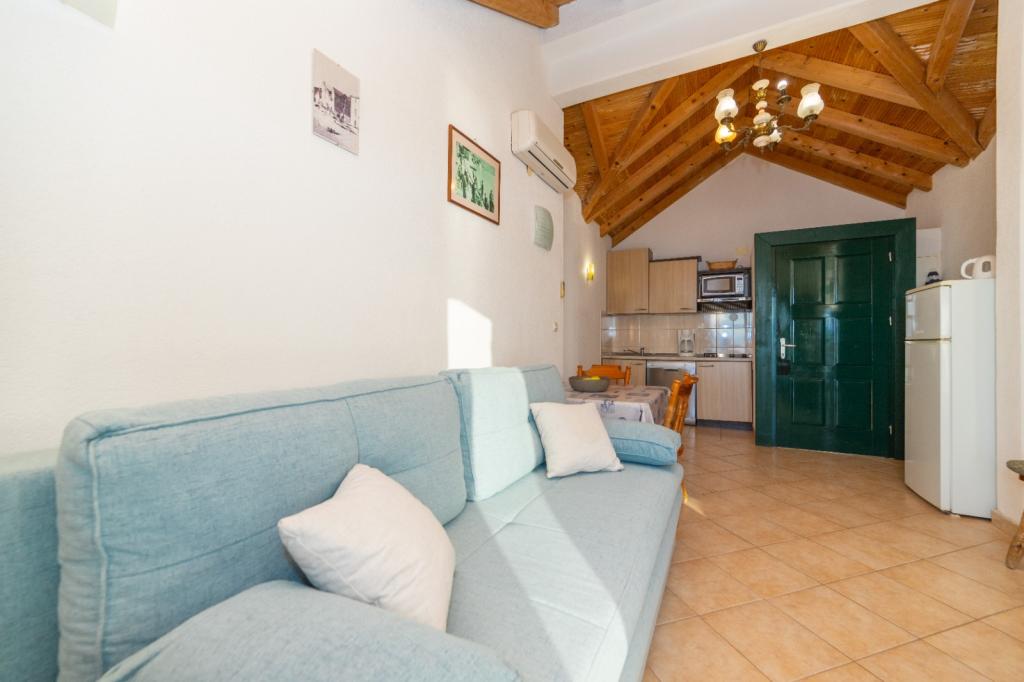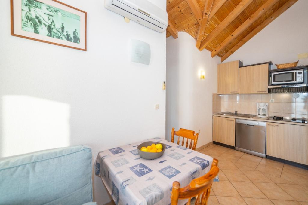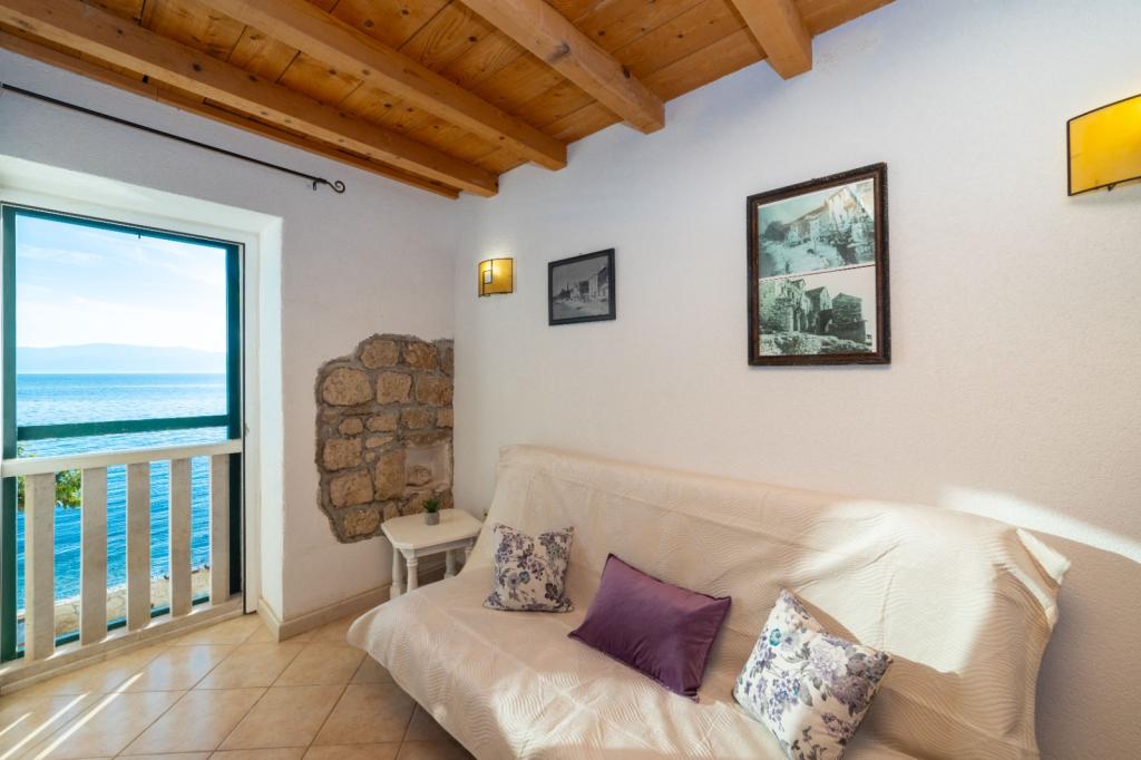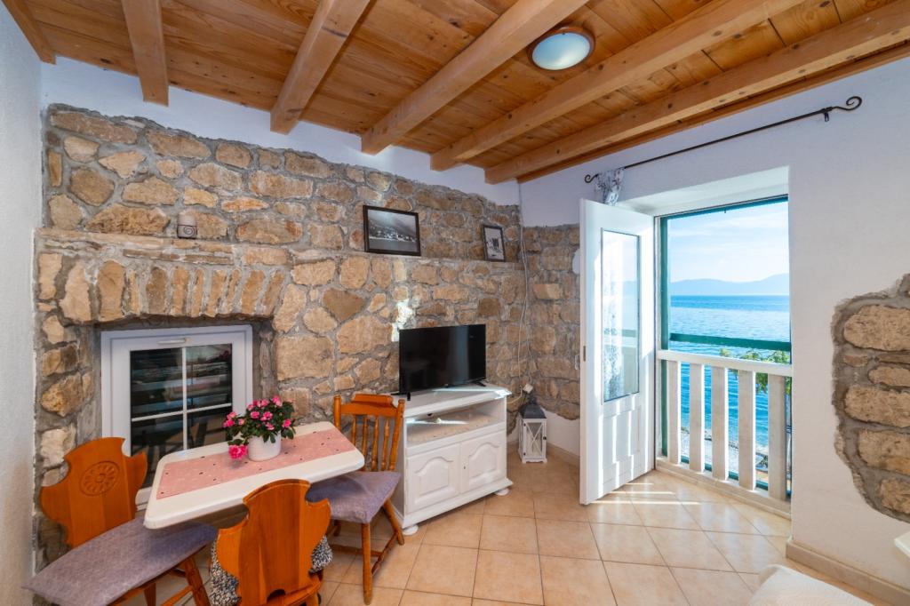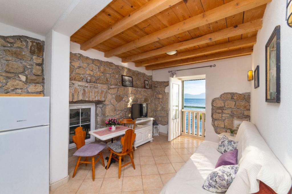 Vores gamle stenhus renoveret i to separate lejligheder. Hver lejlighed har eget køkken, badeværelse, soveværelse. Lejligheden på første sal har en balkon med havudsigt og en lille terrasse på den anden side af huset. Huset har moderne udstyr, men stranden er kun 5 meter og er beliggende i den lille kystby Brist. Centret er 10 minutter væk, og de større nærliggende by har en 2 km. Berømte turistmål ligesom Split, Dubrovnik, Mostar, kan Medjugorje besøges i et par timer. Brist er et roligt sted ved havet ideel til ferie alle, især familier med små børn.