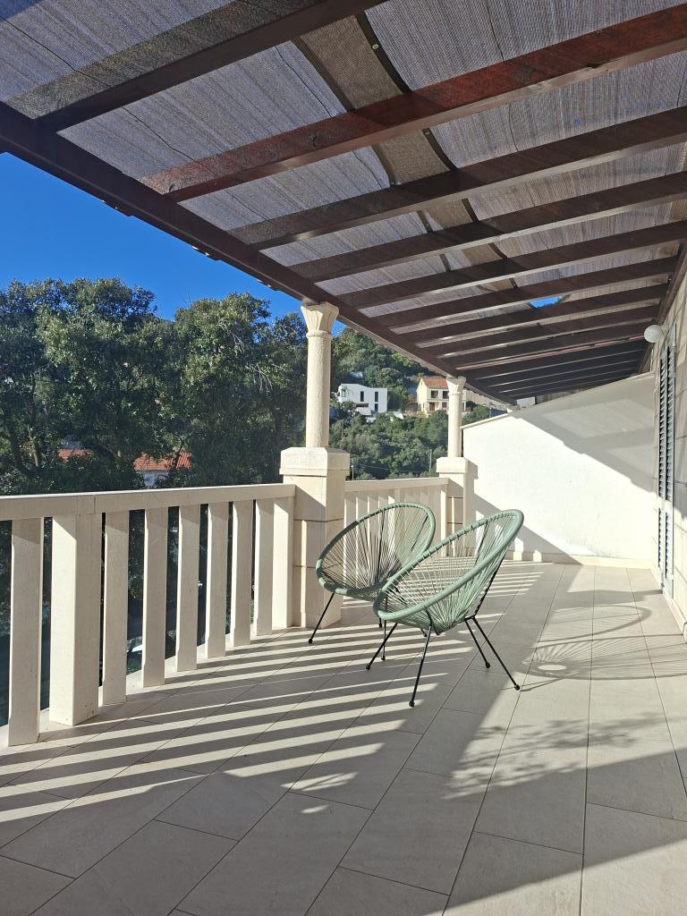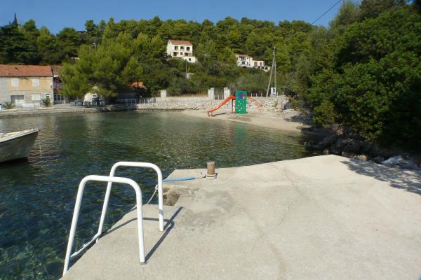 Helt og moderne indrettede lejligheder i den fredelige bugt Brna på sydsiden af øen Korcula. Anlægget er beliggende i centrum af byen, alt er lige ved hånden, butikker, restauranter, pizzeriaer. Huset ligger ved kysten, 6m som er ideel til familier med børn. På forsiden er en balkon med en smuk havudsigt, og på bagsiden af huset er der en stor gård ideel til børns lege.