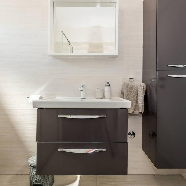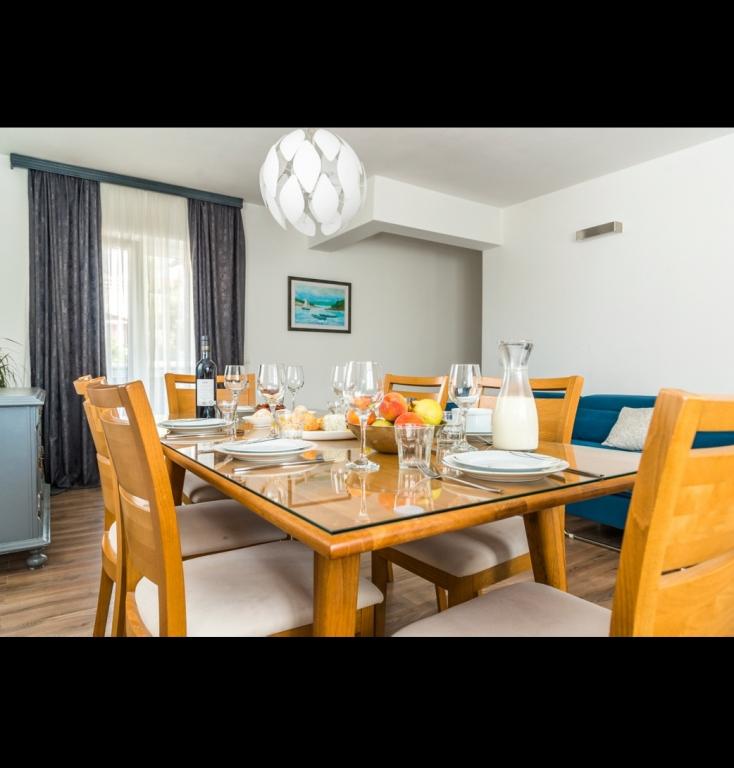 Lejligheden er virkelig fantastisk til enhver anbefaling! Det er fuldt udstyret, og en særlig lettelse efter ankomst fra stranden leveres af en vaskemaskine, som du hurtigt kan vaske salt fra badedragt og lignende i henhold til et kort program. Også en opvaskemaskine til uvurderlig hjælp. Lejligheden er ren, behagelig at hvile og ekstremt stor og rummelig! Pænt og smagfuldt møbleret også. Det har 3 soveværelser, hvoraf 2 værelser har deres eget private badeværelse med bruser, mens det tredje badeværelse er det største ved siden af det tredje soveværelse. Så når vi ankommer fra stranden, alle på samme tid under deres brusebad, alle i deres badeværelse uden at spilde tid og vente i kø. Stranden ligger kun 10 minutters gang fra lejligheden rent hav, fred og ro på stranden med en smuk udsigt over øen Krapanj. Ejeren af lejligheden Ana er meget venlig og hjertelig, hun hilste os ved ankomsten og var interesseret i, om alt er i orden, og om alt passer Vi blev mødt ved ankomsten af en kølet drink i køleskabet; juice og god vin. Efter rejsen kom hun for at hilse os med en dejlig gave til minde om sommeren i Brodarica og bo i hendes lejlighed. Alle anbefalinger til ophold her!