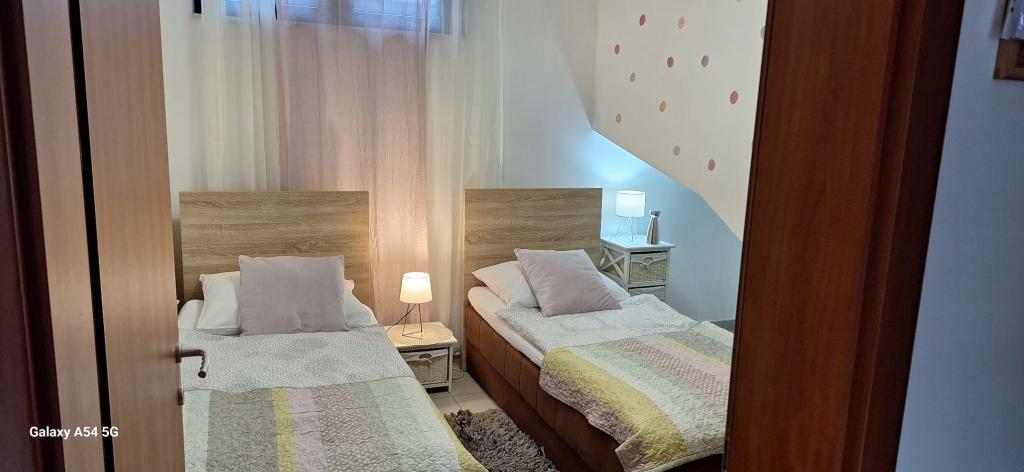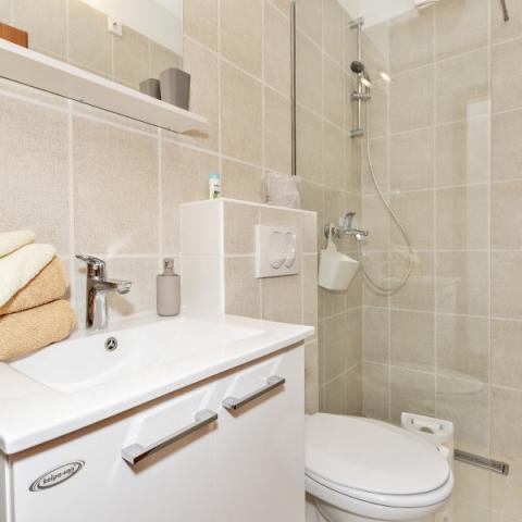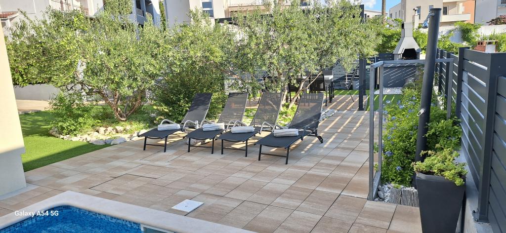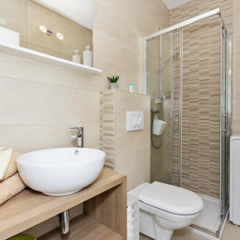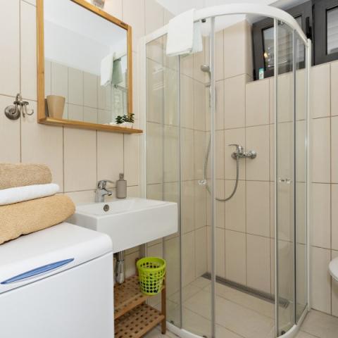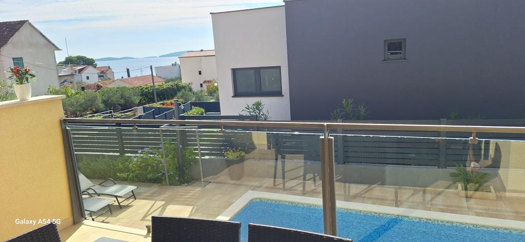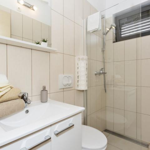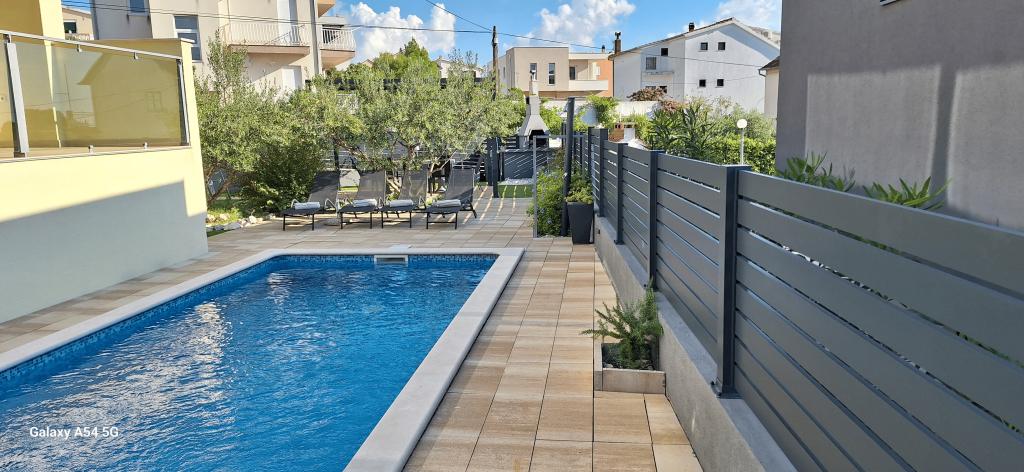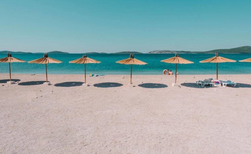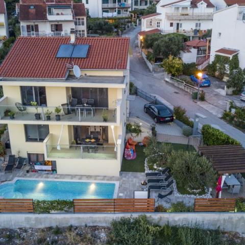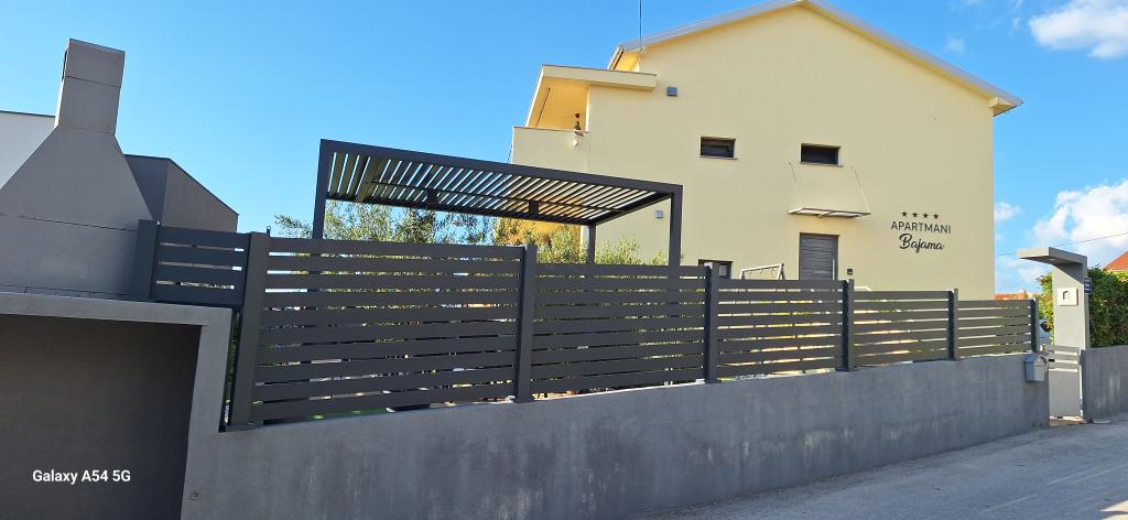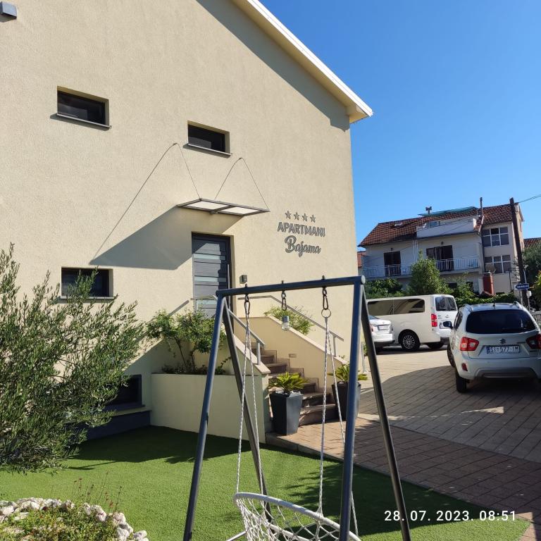 Lejligheder Bajama er beliggende i Šibenik forstad til Brodarica, kun 3 km fra centrum af Šibenik. I huset er der to moderne indrettede lejligheder kategoriseret med 4 stjerner hver med to komfortable soveværelser, moderne udstyret køkken og stue og to badeværelser og et toilet. Fra lejligheden kan 1 gæster nyde havudsigt fra egen balkon, mens gæsterne fra Lejlighed 2 har deres egen direkte udgang til deres egen terrasse, hvor den fælles gård med pool fortsættes. Derudover har gæsterne adgang til en grill, et solbadningsområde til solbadning, liggestole, en udendørs bruser, en fælles øvelse / spillerum og parkeringspladser i en indhegnet gård. Bajama-ferieboligen er kun 100 m fra klippestenstranden med strandbarer og børnefaciliteter, 1,5 km fra Solaris udvej med den berømte vandpark og 3 km fra centrum af Šibenik, en by rig på kulturel og historisk arv. Det er ideelt til familieferier.