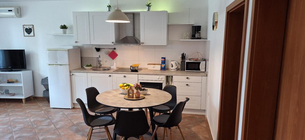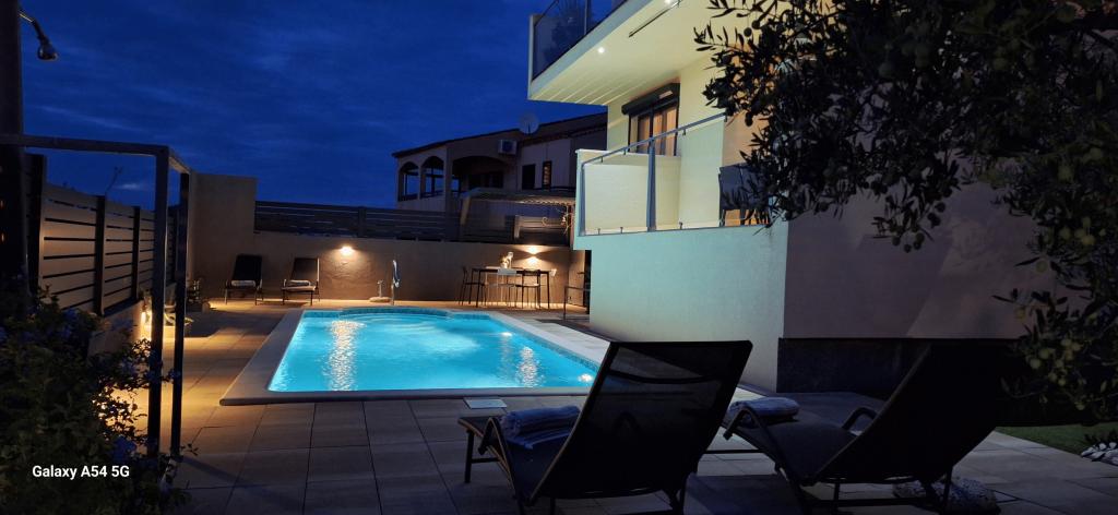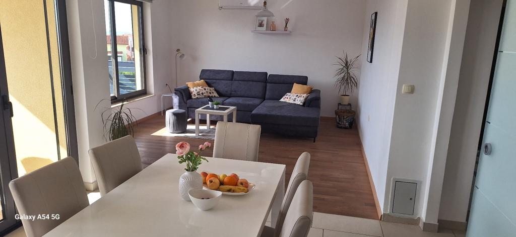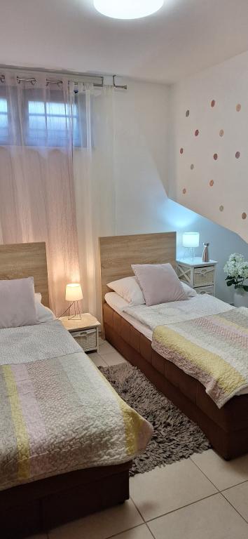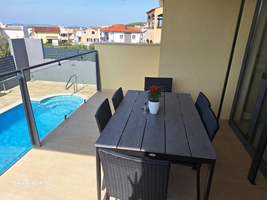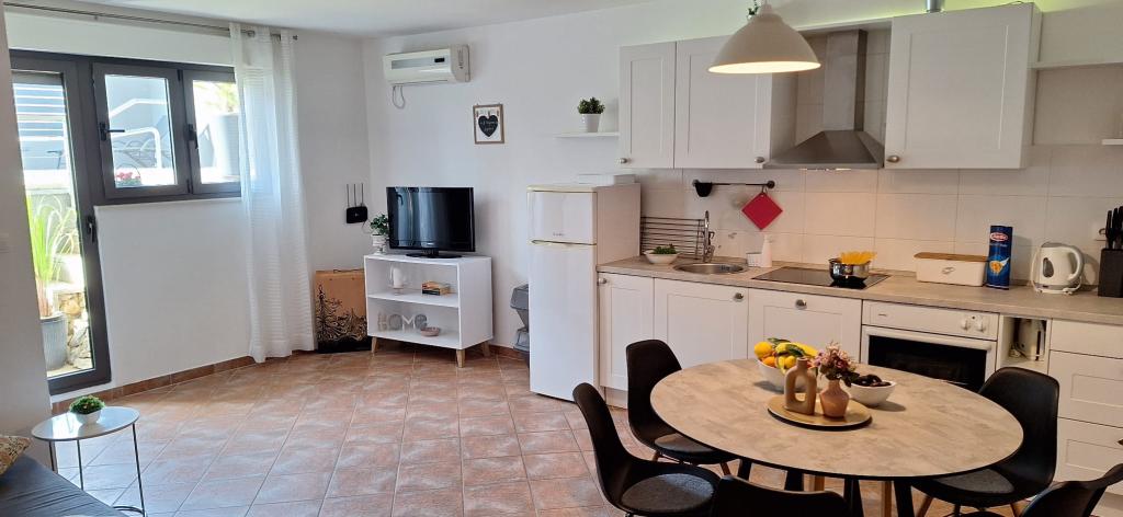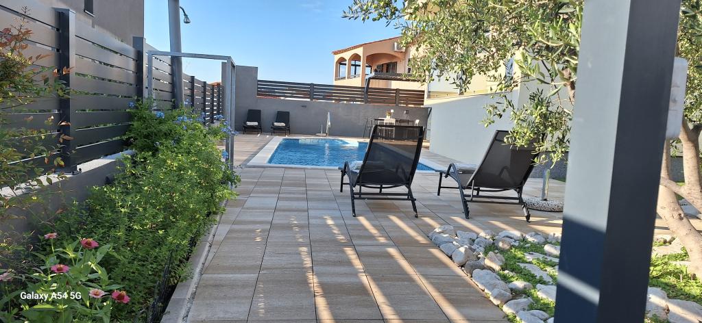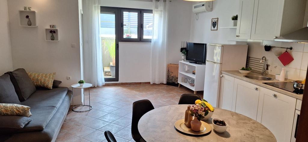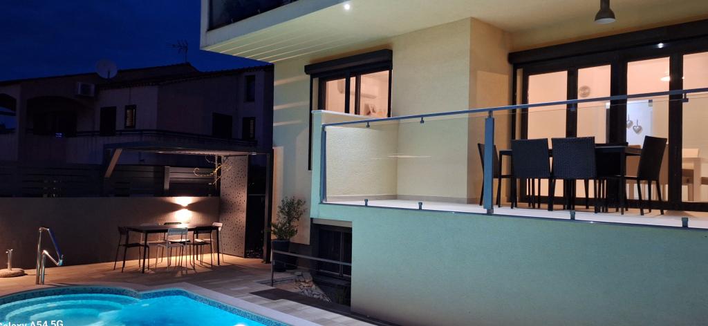 Lejligheder Bajama er beliggende i Šibenik forstad til Brodarica, kun 3 km fra centrum af Šibenik. I huset er der to moderne indrettede lejligheder kategoriseret med 4 stjerner hver med to komfortable soveværelser, moderne udstyret køkken og stue og to badeværelser og et toilet. Fra lejligheden kan 1 gæster nyde havudsigt fra egen balkon, mens gæsterne fra Lejlighed 2 har deres egen direkte udgang til deres egen terrasse, hvor den fælles gård med pool fortsættes. Derudover har gæsterne adgang til en grill, et solbadningsområde til solbadning, liggestole, en udendørs bruser, en fælles øvelse / spillerum og parkeringspladser i en indhegnet gård. Bajama-ferieboligen er kun 100 m fra klippestenstranden med strandbarer og børnefaciliteter, 1,5 km fra Solaris udvej med den berømte vandpark og 3 km fra centrum af Šibenik, en by rig på kulturel og historisk arv. Det er ideelt til familieferier.