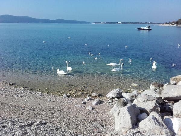 Lejlighed i en fantastisk beliggenhed ved havet, tæt på butikken og ved siden af Pizzeria Delfin, hvor du kan spise billigt og godt. Det er rummeligt, udstyret med de nødvendige ting fra håndklæder, gryder, komfur til vaskemaskine, aircondition, bogstaveligt talt alt er der. Ejerne var meget venlige og hjælpsomme. Vi var der for første gang, og vi vil helt sikkert komme tilbage der igen.