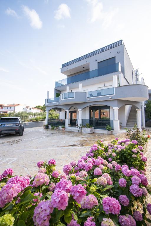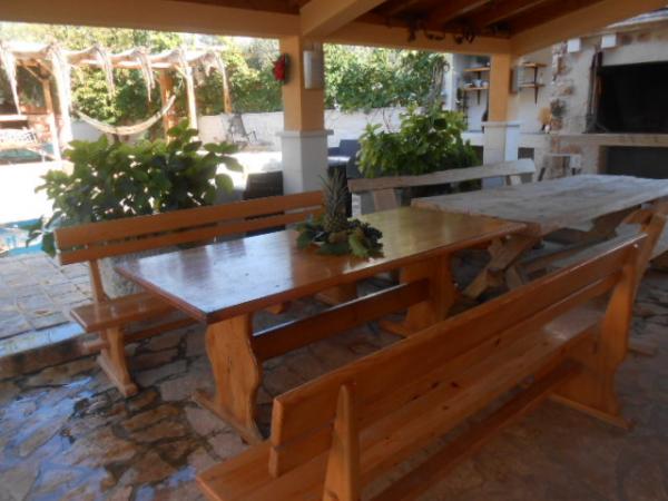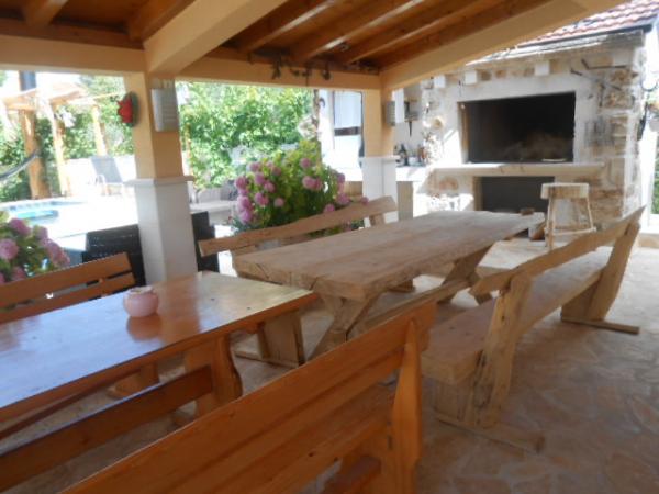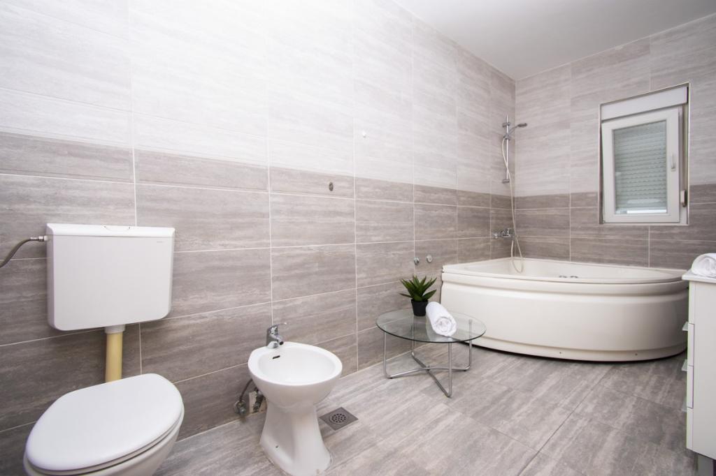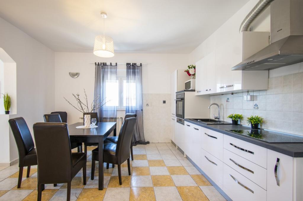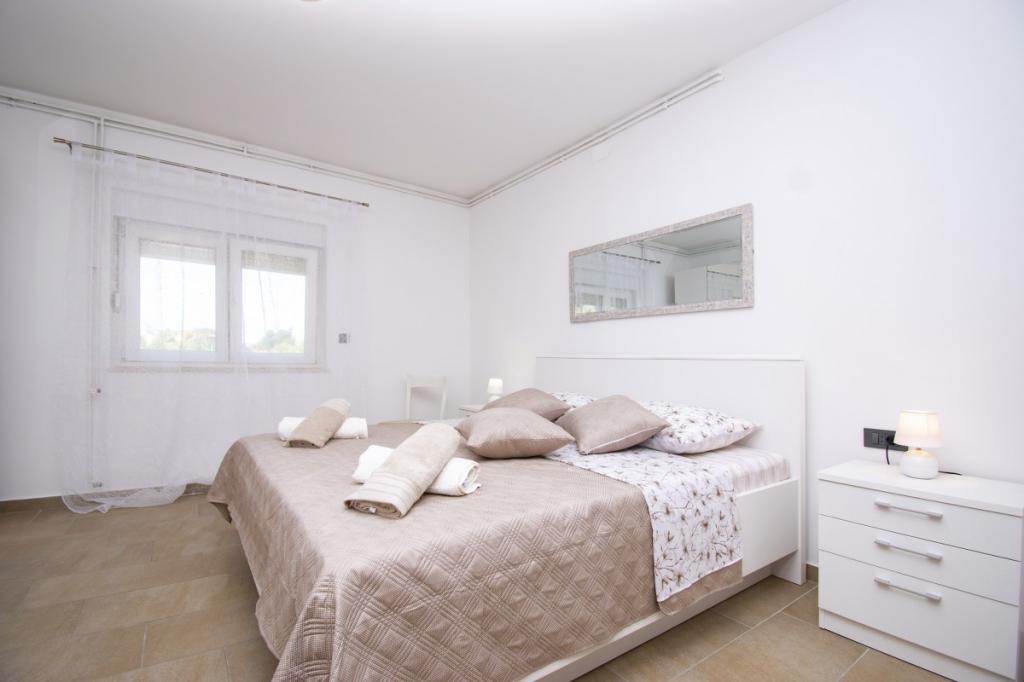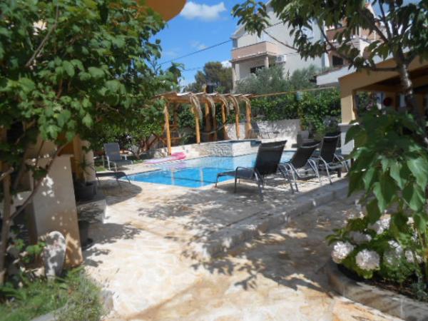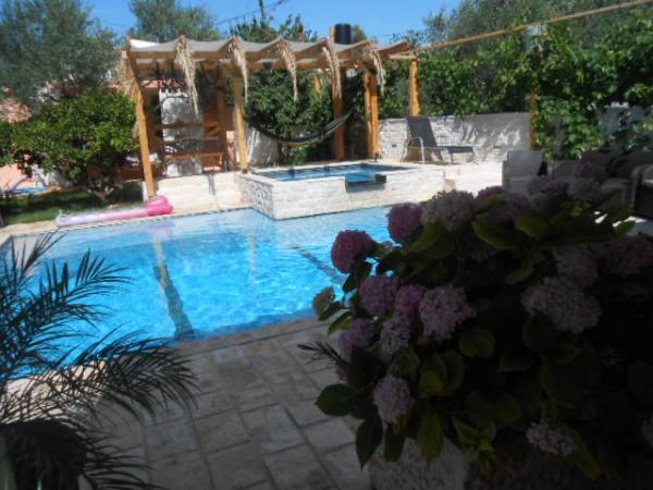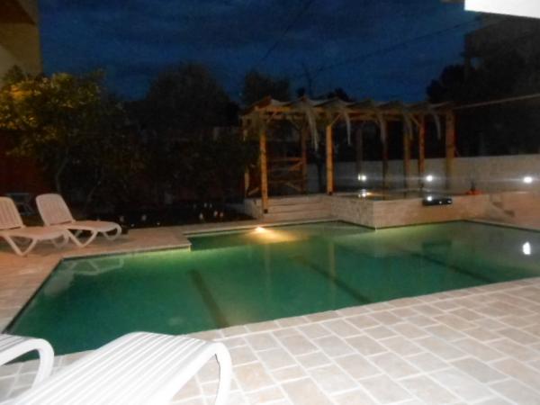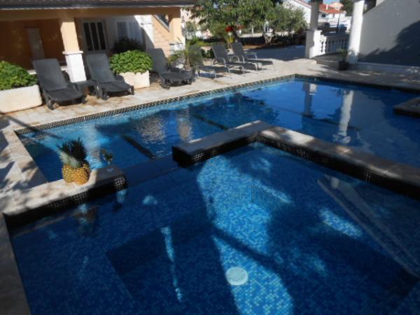 Huset til 10 personer med swimmingpool og jacuzzi ligger i et roligt område af Brodarica, omgivet af masser af grønne områder og blomster. De to første lejligheder ligger i stueetagen, den ene er 45 m2, og den anden er på 50 m2. Hver lejlighed har et soveværelse med dobbeltseng, et køkken, en sovesofa, et badeværelse og en terrasse med bord og stole. Den tredje lejlighed er på 90 m2, beliggende på første sal, har to store dobbeltværelser, en stor stue, køkken, badeværelse og en 45 m2 terrasse med bord og stole. Den er velegnet til en lidt større familie og venner. Lejligheden har aircondition. Den fjerde lejlighed er luksuriøst indrettet, ca. 100m2, har en stor stue, et fuldt udstyret køkken, et stort værelse med tv og aircondition, lejligheden har også en sauna. der er jacuzzi med stor terrasse på taget. hver lejlighed har aircondition, og hvert værelse har også et fjernsyn. Poolen er delt. Huset ligger 5-6 minutters gang fra havet. Ved siden af huset er der yderligere to lejligheder, den ene er 110m2 luksuriøst indrettet, og den anden er på 55m2.