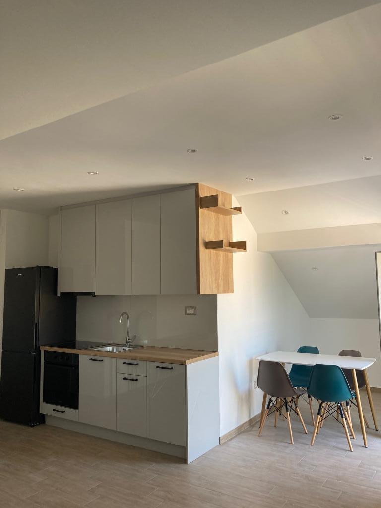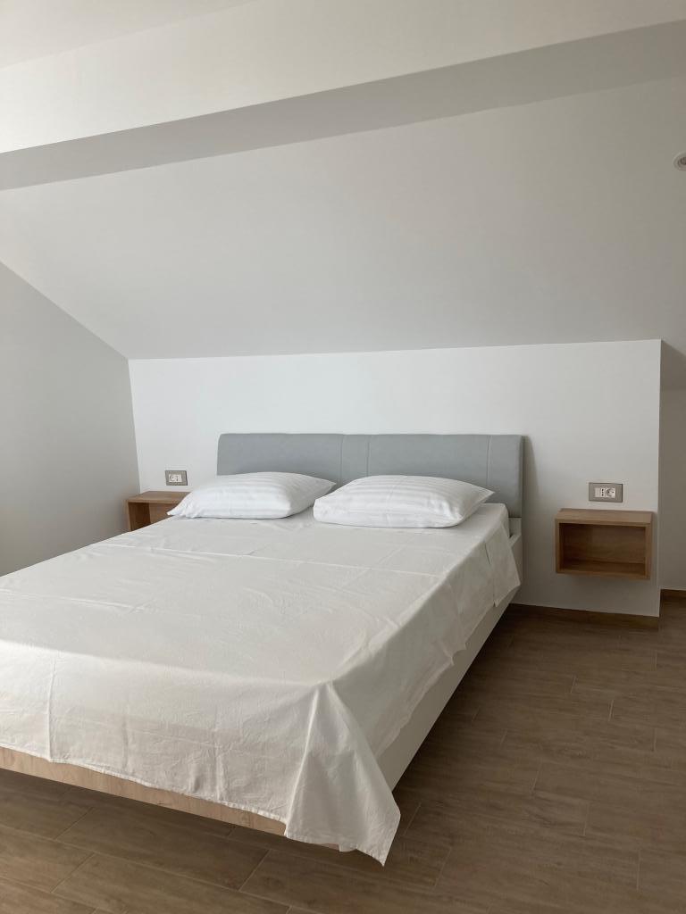 To nye, rummelige og moderne udstyrede lejligheder, anden række til havet. Alle værelser har balkon med smuk udsigt over strand, hav og omgivelser. Det er 5 minutters gang til stranden. Lejlighederne er placeret på loftet i familiens hus. Værten bor på etagen nedenfor. Etagerne er forbundet med en rummelig, lysbelyst trappe, og hver etage er en boligenhed i sig selv. Hver lejlighed har sin egen separate indgang.