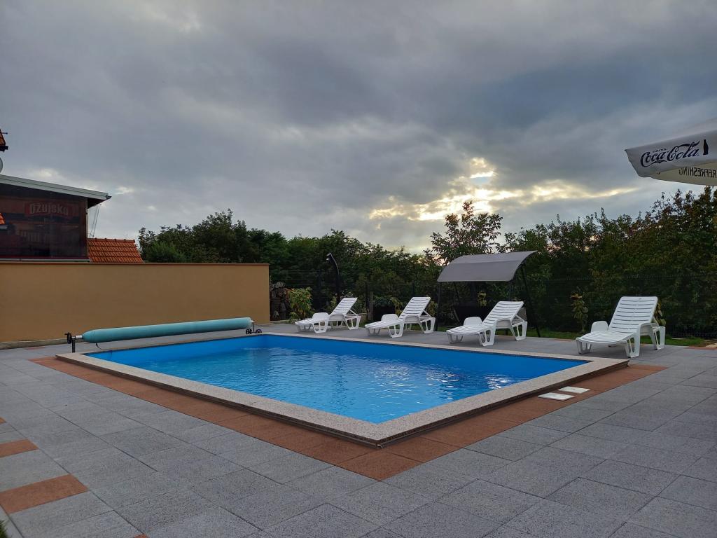Holiday House Novak ligger i Zasadbreg, en rolig landsby i øvre Međimurje. Vi er nye i udbuddet med et hus til op til 4 personer: ▪️ nyistandsat hus ▪️ fuldt udstyret køkken ▪️ badeværelse med bruser ▪️ åbent rum stue med spisestue ▪️ børnehjørne ▪️ stor udendørs opvarmet pool ▪️ legeplads ▪️ indhegnet gård ▪️ lille dådyrfarm ▪️ parkering ved siden af huset, wifi, tv overdækket terrasse med gasgrill, dart, bordfodbold og jacuzzi. Under dit ophold kan du udforske vores "lille" Međimurje: Spa Sveti Martin Acredo Centrar (500 m) Restaurant "Zlatni breg" (200 m) Magjerkin breg Mlin na Muri Arcadia wellness park Museum Treasury Međimurje Talrige familievingårde Trimsti Plešivica Forkæl dig selv med en dosis hvile og genoplad batterierne ud over den fortryllende natur, som den øvre Međimurje tilbyder. En gåtur ad veltrampede skovveje eller en cykeltur gennem de blide bakker i vores landskab vil helbrede din sjæl og styrke din krop. Velkommen