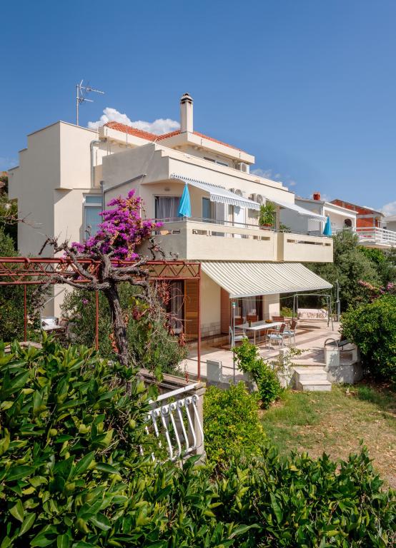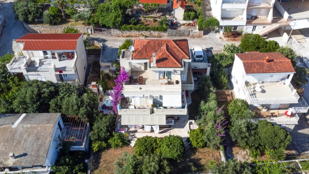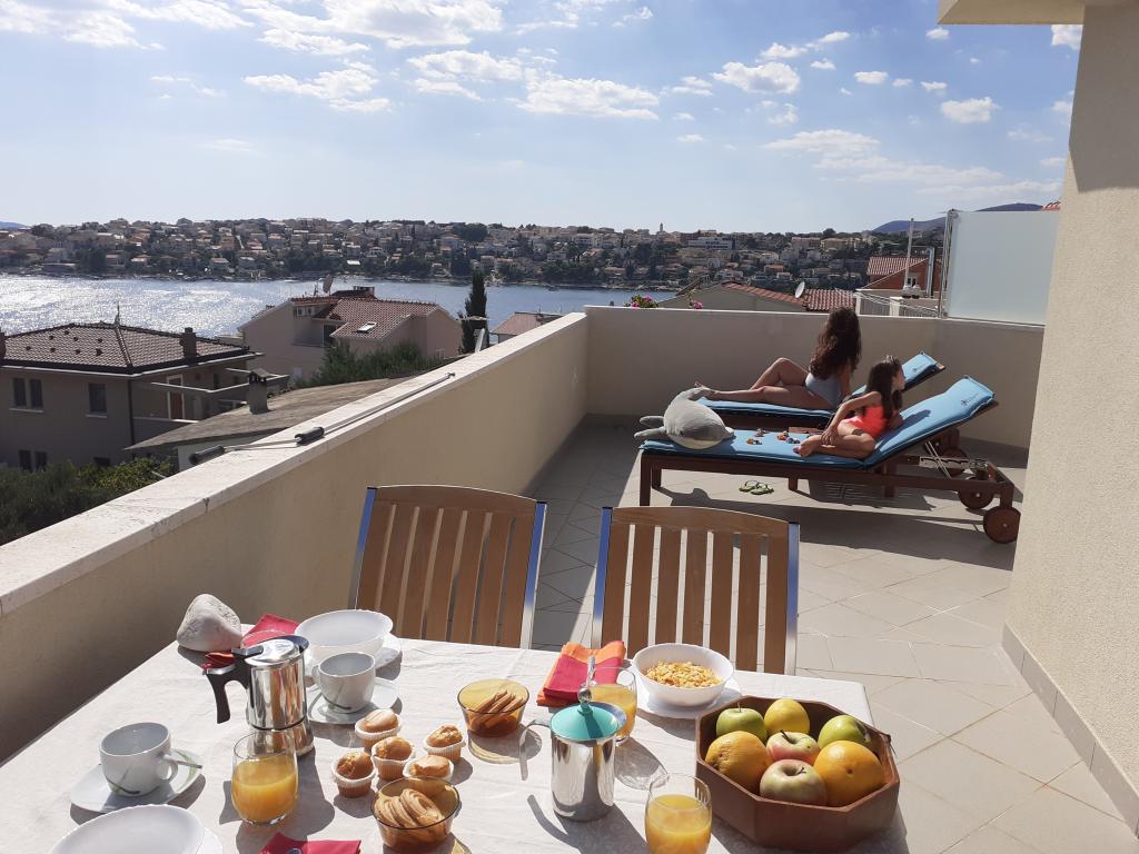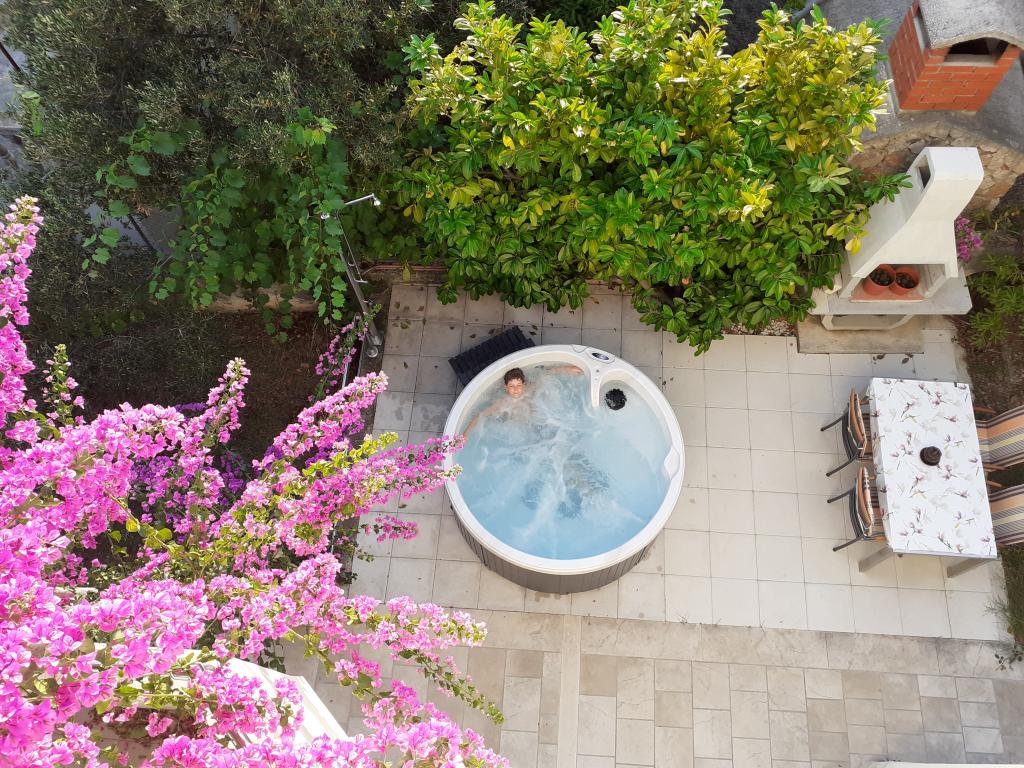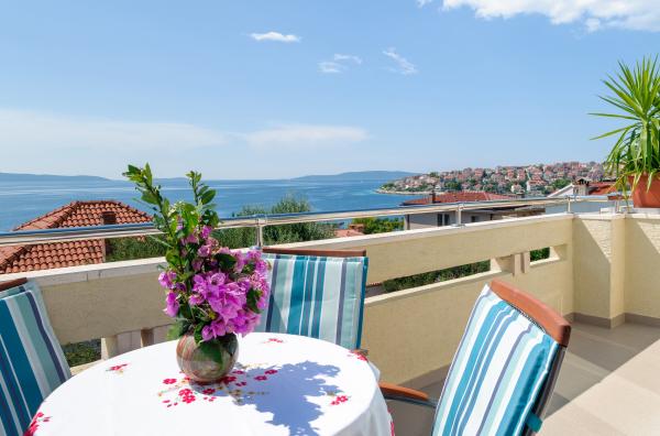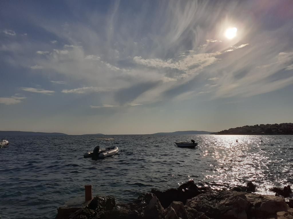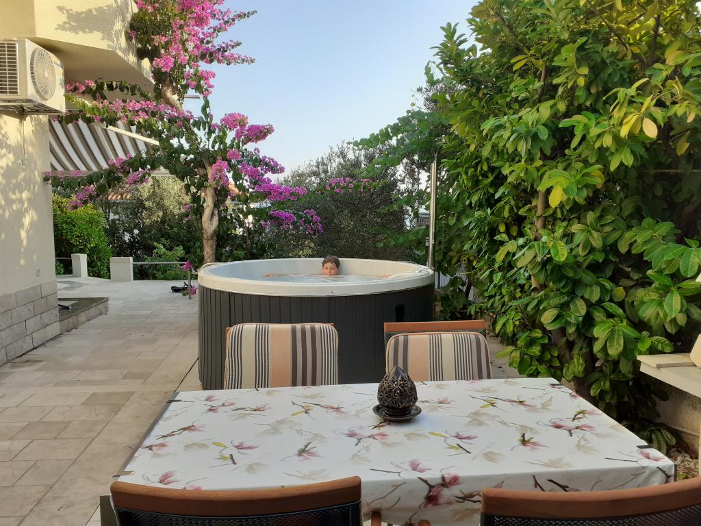 Vi boede i den store lejlighed på anden sal, der var to voksne og to teenagere, i en uge i juni. Alt var perfekt: vejret, havet, huset, men frem for alt vores kære Nina, venlig, venlig, hjælpsom, altid klar til at hjælpe, give anvisninger og forslag, tilbyde en drink. Lejligheden er smuk, meget ren, komfortabel, udstyret med alt hvad du behøver til en familieferie; Vi følte virkelig, at vi var hjemme, faktisk meget bedre! Sengene er meget komfortable og puderne er vidunderlige! Vi sov og hvilede så godt!! Køkkenet er veludstyret, badeværelset har en bruser og også en vaskemaskine og er meget rart, men det, vi måske mest af alt kunne lide, er den store terrasse, hvor du kunne spise, nyde en aperitif, endda tage et brusebad, mens du kiggede havet og øerne foran eller den fantastiske og uforglemmelige solnedgang! Vi fyldte vores øjne med ekstraordinær skønhed! Desuden er der en jacuzzi i haven samt en grill til rådighed for alle gæster. Ninas far, store Leo, tilbød os en super mega god middag og en super visnjevac (sort kirsebærlikør lavet af ham). Havet er meget tæt på, de første strande er 100 meter væk, du kan nemt gå dertil til fods, havet er VIDUNDERLIGT, farverne grøn, blå, turkis, den berusende duft af de maritime fyrretræer, sangen fra de utrættelige cikader. Der er ikke mange mennesker (i hvert fald ikke i juni), så afslapning er total! Strandene er stenede (fremragende til dykning), og brug af havsko anbefales (eller endda hvide småsten - den meget nærliggende og berømte Vela Draga-strand). Et besøg i Trogir (5 km) og Split (25 km) er også et absolut must. Det hele var så smukt, at vi ikke ønskede at tage afsted og også gerne ville vende tilbage næste år. Tak, Nina, for alt!