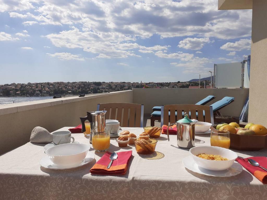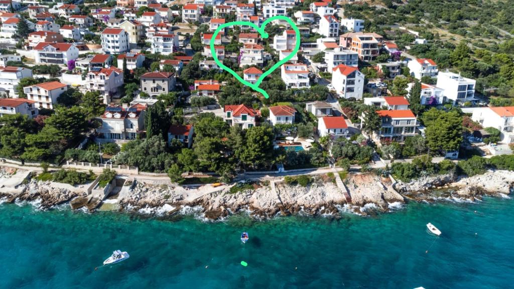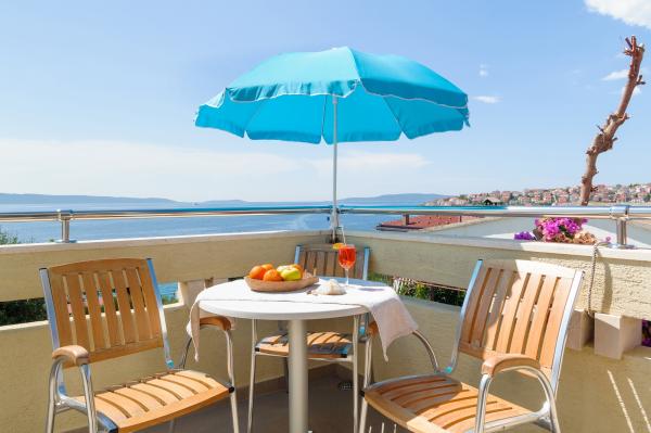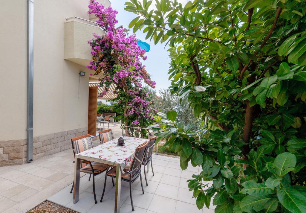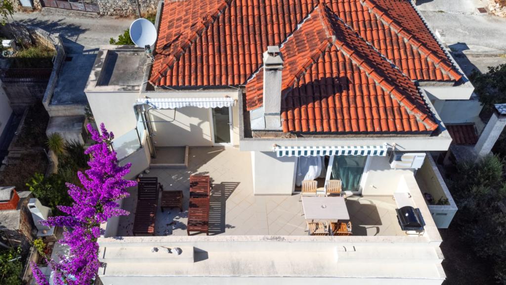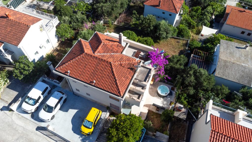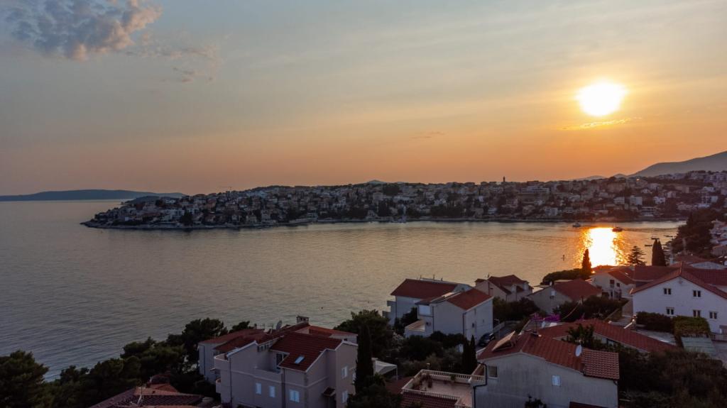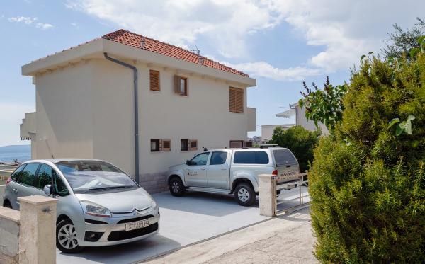 Vi boede i den store lejlighed på anden sal, der var to voksne og to teenagere, i en uge i juni. Alt var perfekt: vejret, havet, huset, men frem for alt vores kære Nina, venlig, venlig, hjælpsom, altid klar til at hjælpe, give anvisninger og forslag, tilbyde en drink. Lejligheden er smuk, meget ren, komfortabel, udstyret med alt hvad du behøver til en familieferie; Vi følte virkelig, at vi var hjemme, faktisk meget bedre! Sengene er meget komfortable og puderne er vidunderlige! Vi sov og hvilede så godt!! Køkkenet er veludstyret, badeværelset har en bruser og også en vaskemaskine og er meget rart, men det, vi måske mest af alt kunne lide, er den store terrasse, hvor du kunne spise, nyde en aperitif, endda tage et brusebad, mens du kiggede havet og øerne foran eller den fantastiske og uforglemmelige solnedgang! Vi fyldte vores øjne med ekstraordinær skønhed! Desuden er der en jacuzzi i haven samt en grill til rådighed for alle gæster. Ninas far, store Leo, tilbød os en super mega god middag og en super visnjevac (sort kirsebærlikør lavet af ham). Havet er meget tæt på, de første strande er 100 meter væk, du kan nemt gå dertil til fods, havet er VIDUNDERLIGT, farverne grøn, blå, turkis, den berusende duft af de maritime fyrretræer, sangen fra de utrættelige cikader. Der er ikke mange mennesker (i hvert fald ikke i juni), så afslapning er total! Strandene er stenede (fremragende til dykning), og brug af havsko anbefales (eller endda hvide småsten - den meget nærliggende og berømte Vela Draga-strand). Et besøg i Trogir (5 km) og Split (25 km) er også et absolut must. Det hele var så smukt, at vi ikke ønskede at tage afsted og også gerne ville vende tilbage næste år. Tak, Nina, for alt!