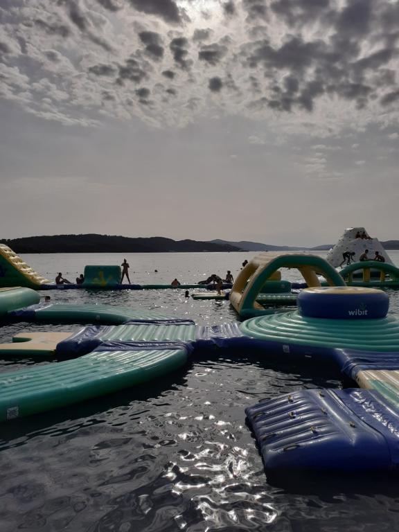 Turistskat er inkluderet i prisen. Dokumentation for reservationsbekræftelse ved reservationDen kroatiske Adriaterhavsperle med imponerende historie, byen Trogir, på UNESCOs verdensarvsliste, ligger kun 5 kilometer fra dig. Til gengæld ligger Split, som kan nås med bil eller båd, kun 20 km væk. Denne by Diocletian dateres tilbage til det 4. århundrede e.Kr., og har været under UNESCO-beskyttelse siden 1979, hvilket er et unikt eksempel i verden. Skønheden ved de syv travertinvandfald, et natur- og karstfænomen i Krka National Park (50 km), vil helt sikkert forblive i din hukommelse for evigt. Talrige operatører på øen tilbyder udflugter til nærliggende øer og laguner. En dykkerskole er også i nærheden. I umiddelbar nærhed af vores lejlighed, nedsænket i en fyrreskov, ligger den smukke hvide strand (Vela Draga).