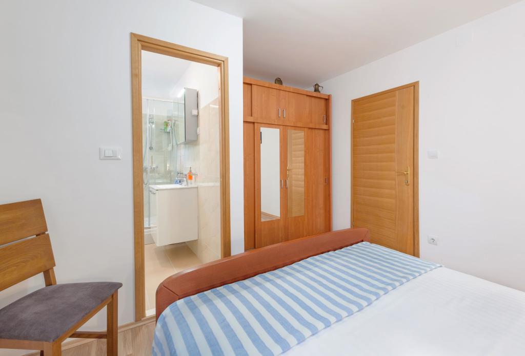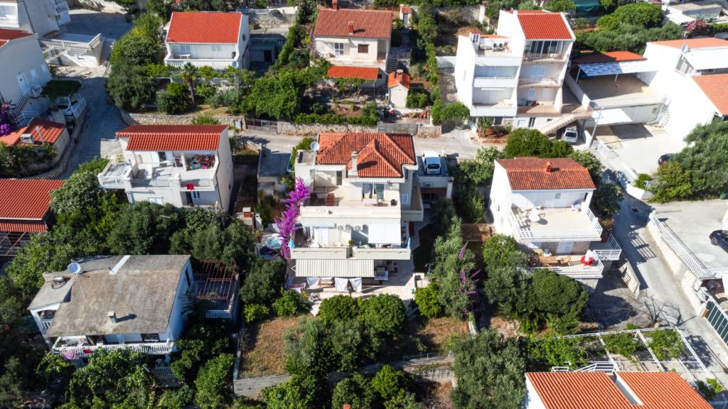 I umiddelbar nærhed af havet og fyrreskoven, på den sydlige side af øen Čiovo, to lejligheder på første sal i et familiehus, med udsigt over øerne Brač, Hvar, Šolta, Drvenik og infinity. Begge lejligheder er luftige, orienteret mod syd og øst (Levante) og vest (Ponente), udstyret med kvalitetsmaterialer og apparater. Et soveværelse med essentielle linjer, med en seng, der måler 160x200 cm, en førsteklasses madras og en topmadras fyldt med memoryskum, og selvfølgelig velvalgt sengetøj, garanterer din komfort. Badeværelset er indrettet, så du med garanti ikke går glip af noget. Yderligere afslapning vil helt sikkert blive hjulpet af en hyggelig stue med en sofa (med mulighed for en udtrækssofa), et 40\\ tv og et køkken, hvor du kan gemme dine yndlingsopskrifter. En altan til morgenkaffen og en aftenaperitif, muligheden for at bruge en fælles grill, et havebord og en udendørs bruser vil helt sikkert garantere dit gode sommerhumør. Vi er her, du er kun et klik væk fra os!