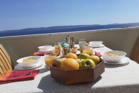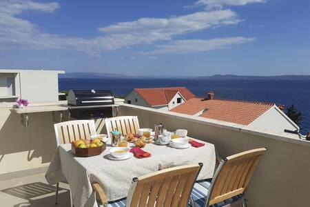 En meget flot indrettet og rummelig lejlighed med en smuk udsigt over havet og en stor terrasse, hvor du kan nyde hele aftenen, hvis du ikke har lyst til at gå ud. Lejligheden indeholder alt hvad du behøver. Efter en lang rejse blev vi mødt af kolde forfriskninger og figner i køleskabet, hvilket kun taler om omsorgen for gæsterne. Ejeren Nina er meget venlig, og hvis du har brug for yderligere information, vil hun helt sikkert hjælpe dig. En perfekt destination for en roligere ferie. Mange tak for alt!