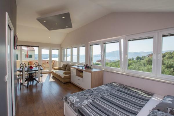 Jeg er anden gang på dette sted. Jeg er i øjeblikket i 2 + 2 år siden, jeg var i studiet rene og rummelige værelser, og udsigten storslået. Petrovici meget nice og hjælpsomme hyggelige mennesker jeg varmt anbefale. Meget god værdi for pengene det bedste sted på øen Ciovo