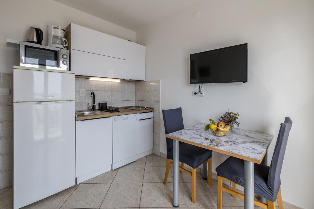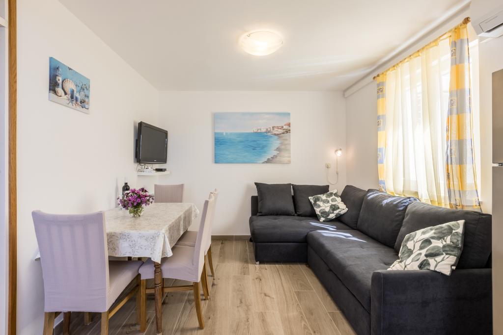 En dejlig lejlighed, ren, duftende og veludstyret, perfekt til 4-5 personer. Den består af 2 soveværelser, 2 badeværelser (hvilket giver stor komfort med et så stort antal mennesker, især en god mulighed for to ægtepar) og et køkken (ekstra soveplads) Udenfor en stor terrasse, hvor du kan spise et måltid i stilhed og slappe af. Den store fordel er det udendørs brusebad, hvor du kan skylle dig selv, når du kommer fra stranden. Området er meget roligt og stille. En god base for de nærliggende større byer. Stranden er meget tæt, ca. 50 meter. Ejerne af lejligheden - Marija og Ante, er meget søde og venlige værter, altid smilende. Jeg vil oprigtigt anbefale alle at bo på dette sted. Vi håber at komme tilbage til dig på ferie en dag. Tak for et dejligt ophold.