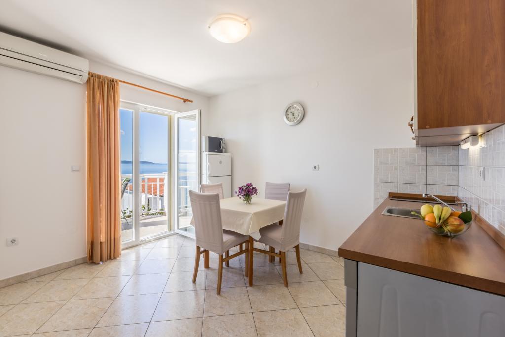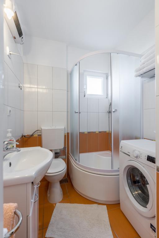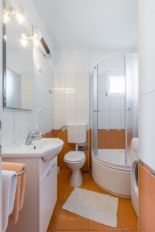 Fantastisk lejlighed til 4-5 gæster. Meget rent, pænt og duftende. Lejligheden har to badeværelser, hvilket øger opholdets komfort med flere personer. Der er også en vaskemaskine til eget brug. Der er en stor terrasse til din rådighed, som giver dig mulighed for at slappe af om eftermiddagen eller om aftenen. Strand (stenet - så du skal tage mindst måtter, men jeg foreslår dine egne liggestole) er ganske tæt, en 3 minutters gang fra boligen, der er steder og skyggefulde og i solen. På stranden er det muligt at leje et solseng - 30 kunas / dag / hver. og paraply 20 kunas / dag - priser fra 07.2019. Tæt på Trogir, Split, Klis, Krk - så du kan udforske meget og se meget i området. Værter meget venlige, venlige og altid smilende. Vi følte at vi var hos venner. Jeg anbefaler varmt dette sted og denne særlige indkvartering Vi vil helt sikkert komme tilbage her. Tak for et godt ophold!