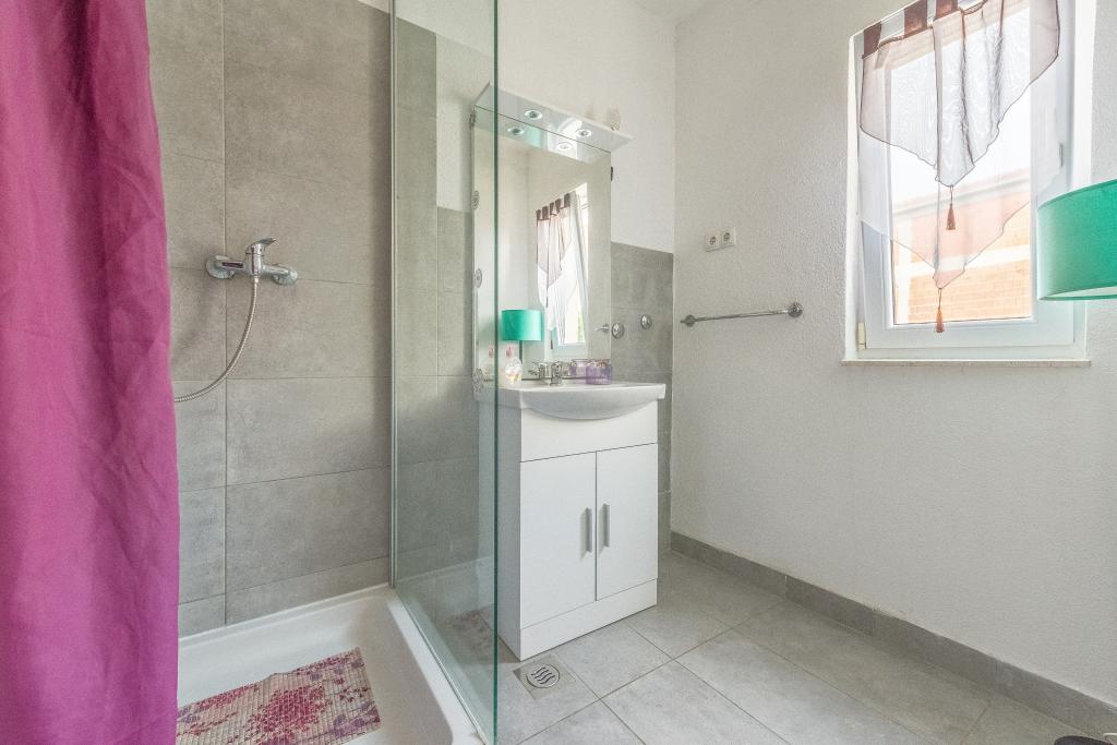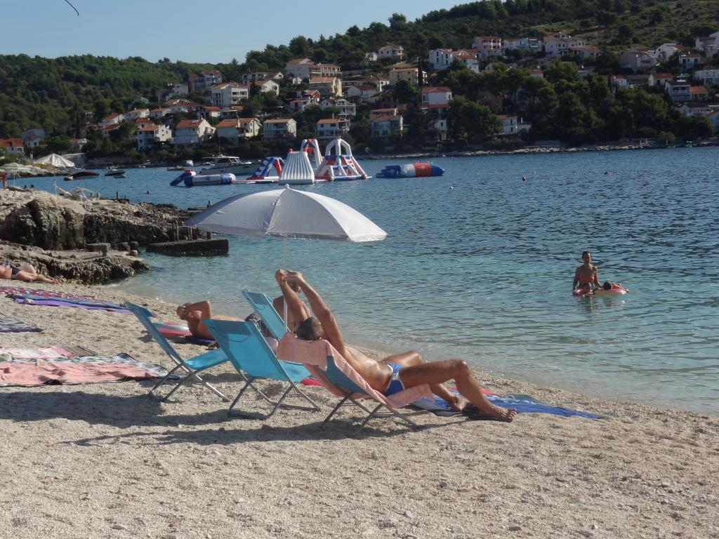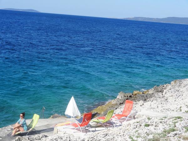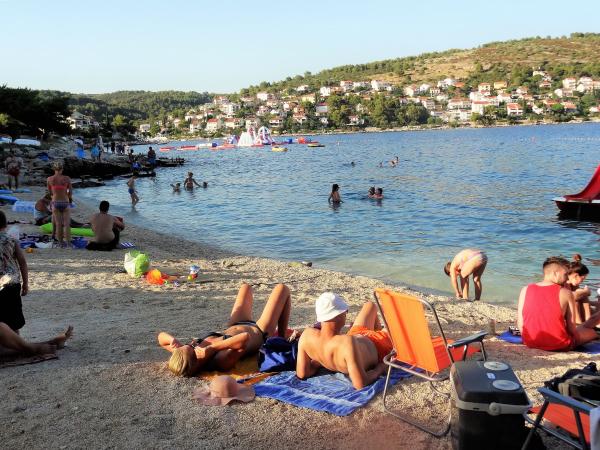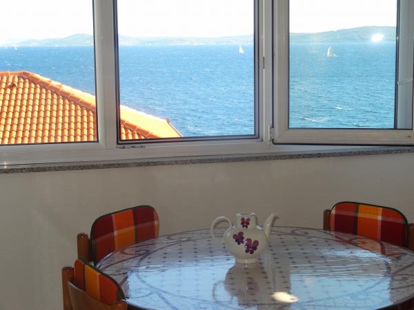 Huset er på 3 etager. Hver etage har sin egen indgang, parkering og balkon med bord og stole. Lejlighed nr. 1 (første sal) har et værelse med en dobbeltseng og en stue med en dobbeltseng på klik klak. Lejlighed nr. 2 (anden sal) har et værelse med dobbeltseng og stue (privat værelse) med luksus sovesofa (160x 200) for to, plus blagavona. Ap nr. 3 er på tredje sal har en dobbeltseng og det. Stue (privat værelse) med luksus sofa (160 X200) til to plus spisning. Havet og den nærmeste strand er præcis 70 meter. Huset har en udsigt over det åbne hav og øer. Til fods kan du nå markedet i 3 minutter, 5 minutter restauranter, kirker, supermarkeder, markeder, banker og læger kan nås på 15 minutter. Aeodrom er udaljen10 kilometer. Lejlighederne er godt udstyret. De er placeret 60 meter til den nærmeste strand, rolig sydlige solsiden af Ciovo. Med en overkommelig pris og med en rig kulturel underholdning tilbringe din ferie .