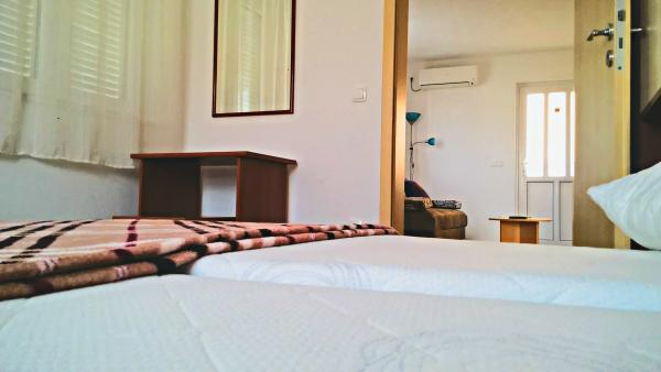 I år er det første gang vi opholdt sig her. Jeg må indrømme, at lejlighederne er godt møblerede og ren. Især dodbrodošel stor balkon / terrasse på nordsiden, og på det hele dagen komfortable udsigt temperatur- og havudsigt. Værterne er imødekommende og venlige og hjalp os med alle de oplysninger, vi ønskede. Kort sagt, vi føler velkommen og hjemme. For sådan en kvalitet indkvartering nær havet og den favorable pris for indkvartering, hvis vi tilføjer den gæstfrihed af værter helt sikkert jeg anbefaler at installere alle, der ønsker en fredelig og kvalitet ferie.