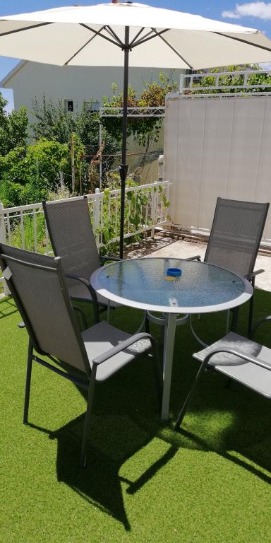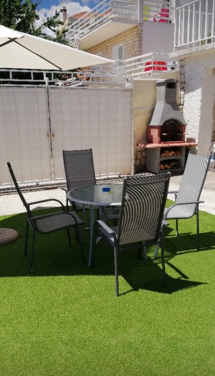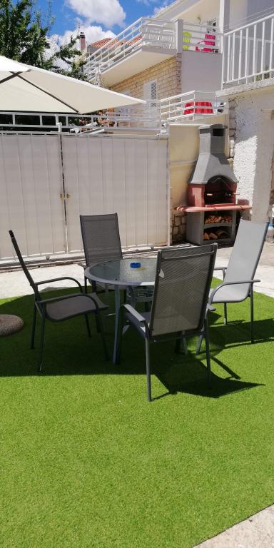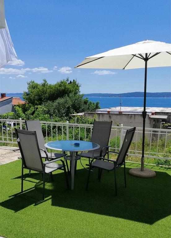 Fuldt og moderne udstyret lejlighed i en rolig del af den sydlige side af øen Ciovo, der er forbundet med broer. Lejligheden ligger 70 m fra stranden, helt dækket af myggenet, der er en grill i den rummelige have ... caféer og restauranter er inden for 200 m, til Trogir er 5 km, til Split 30 km.