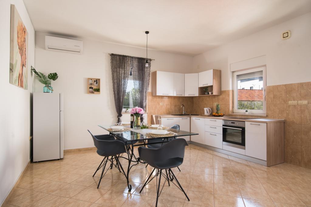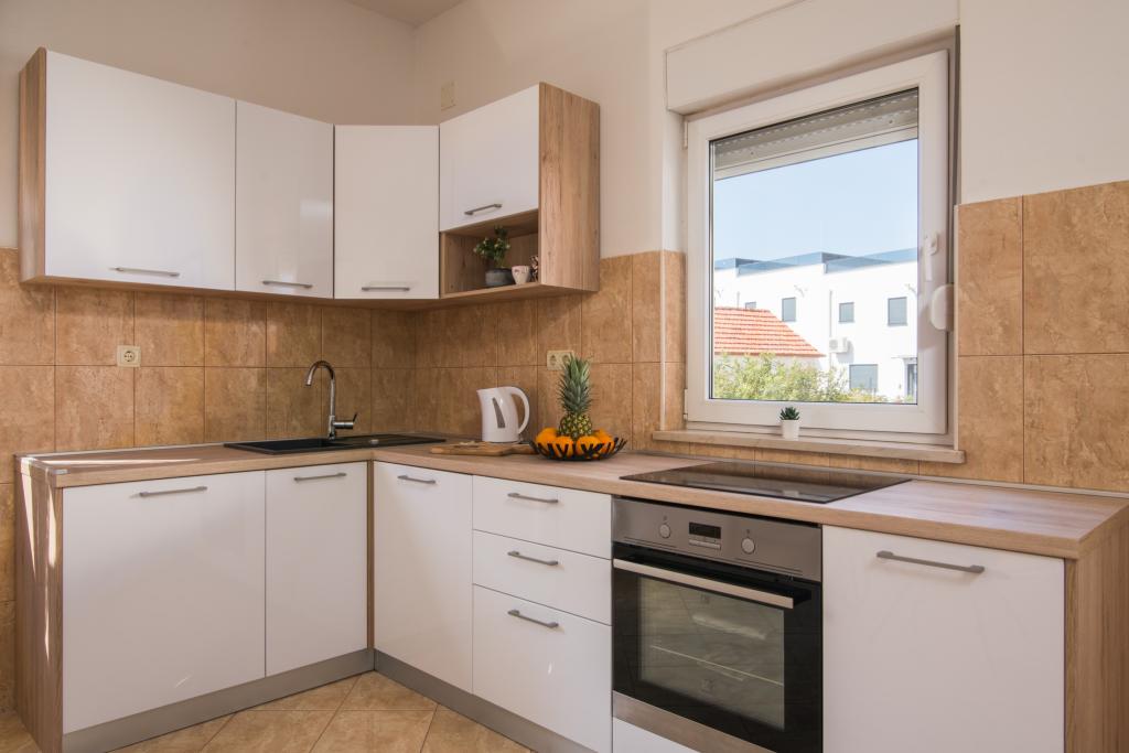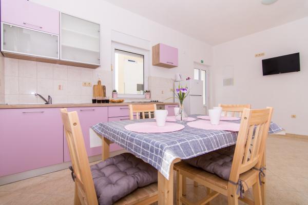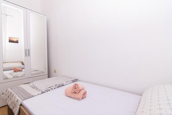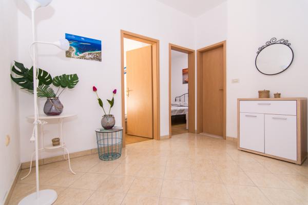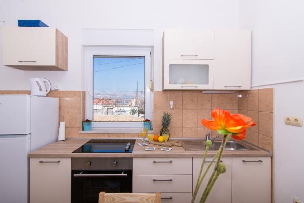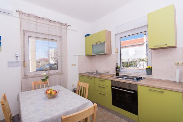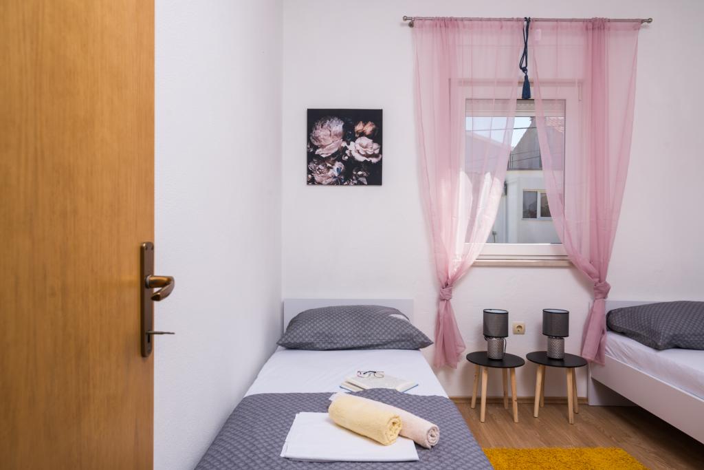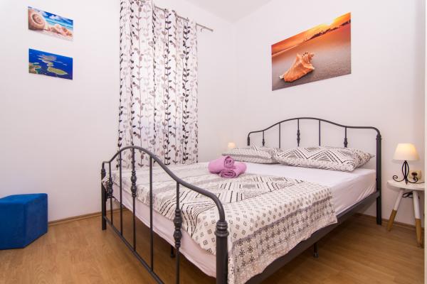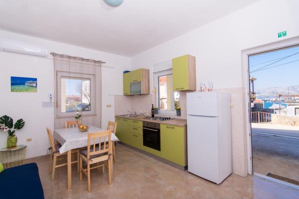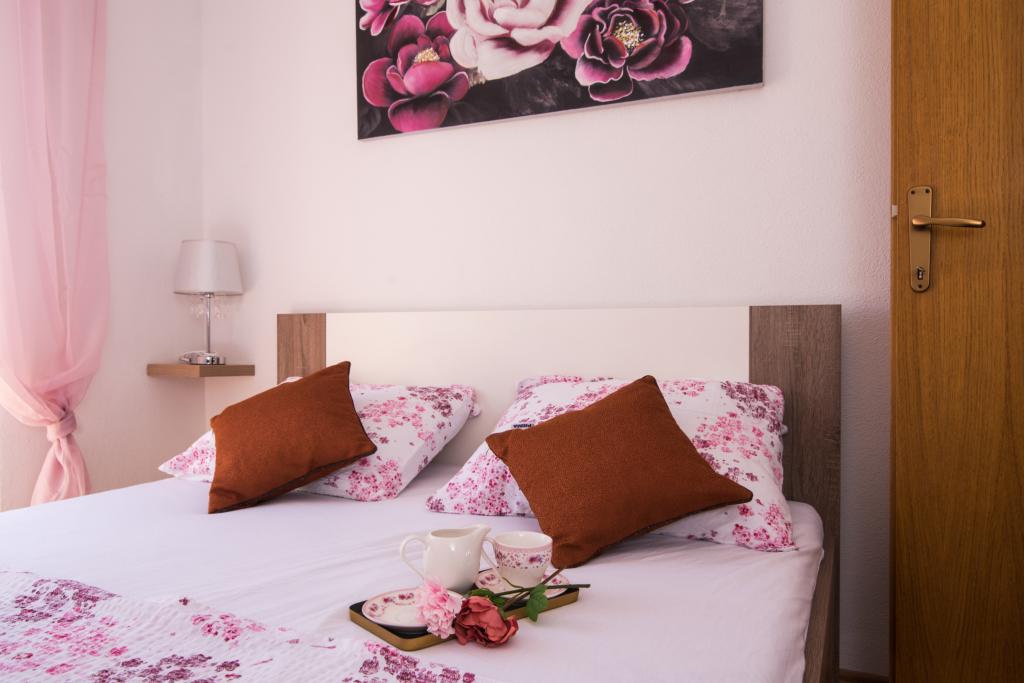 Fuldt og moderne udstyrede lejligheder i en rolig del af Okrug Gornji, 150 meter fra byens centrum. Lejlighederne indeholder alt, hvad du behøver, og hvad der skal gøre dit ophold så behageligt som muligt. Byens centrum - 5 minutters gang (nær posthus, marked, butikker, caféer, restauranter, apotek) og nærheden til alle strande gør vores faciliteter endnu mere interessante og attraktive. De rolige omgivelser i faciliteterne giver dig mulighed for at gøre dit ophold så behageligt som muligt, samt at nyde din morgenkaffe i ro og mag på terrassen foran lejligheden.