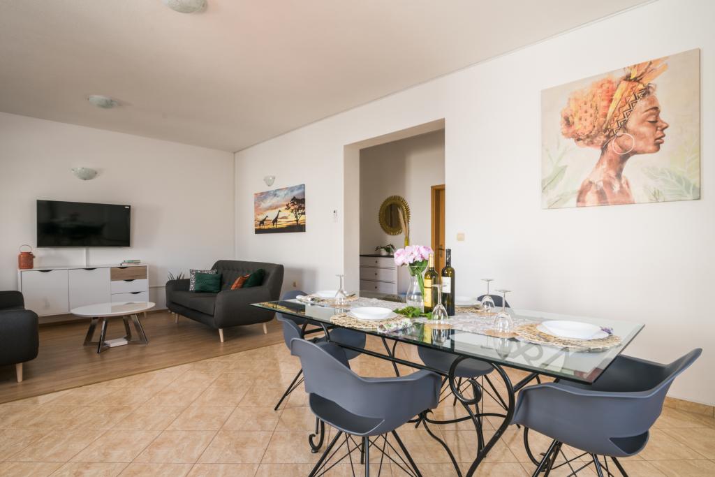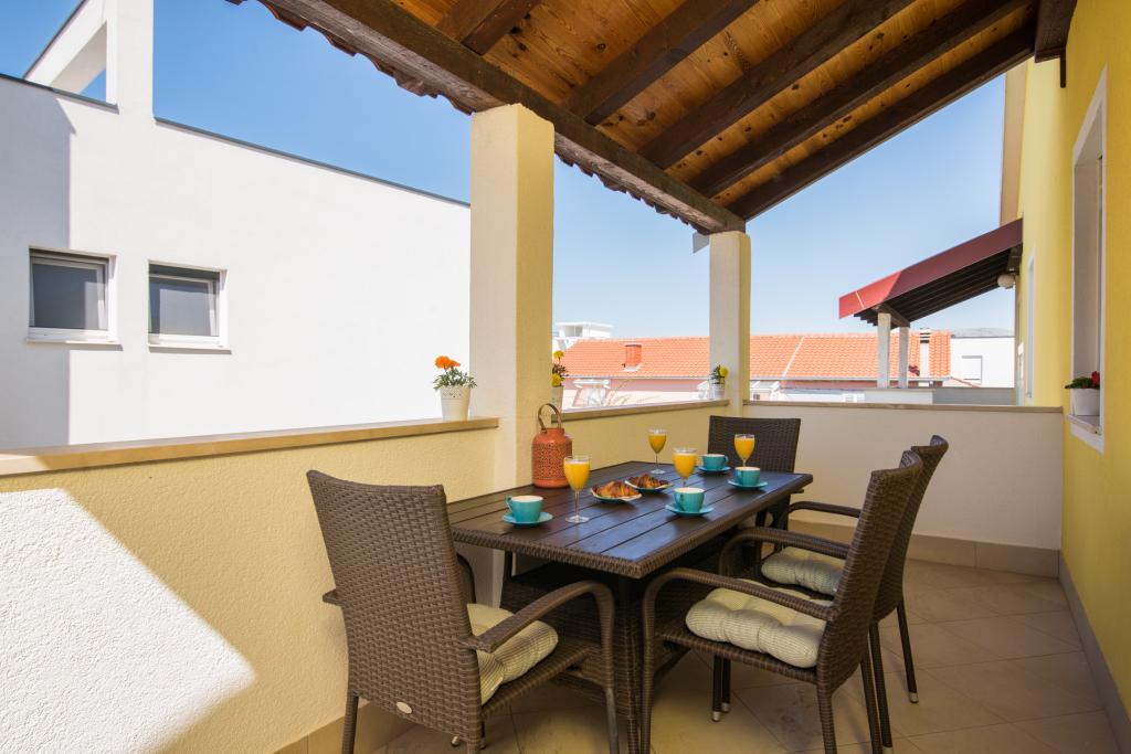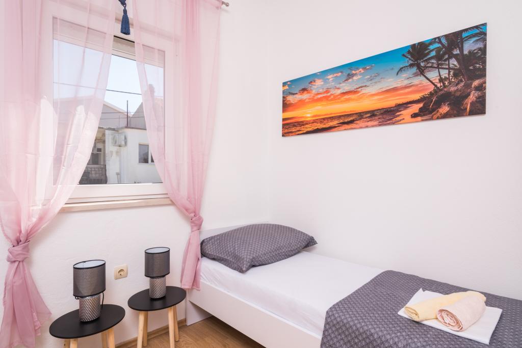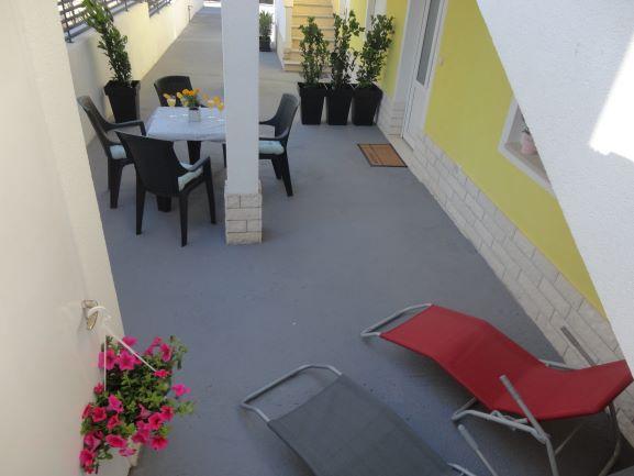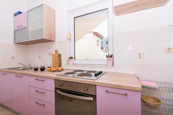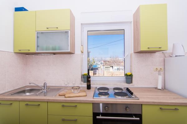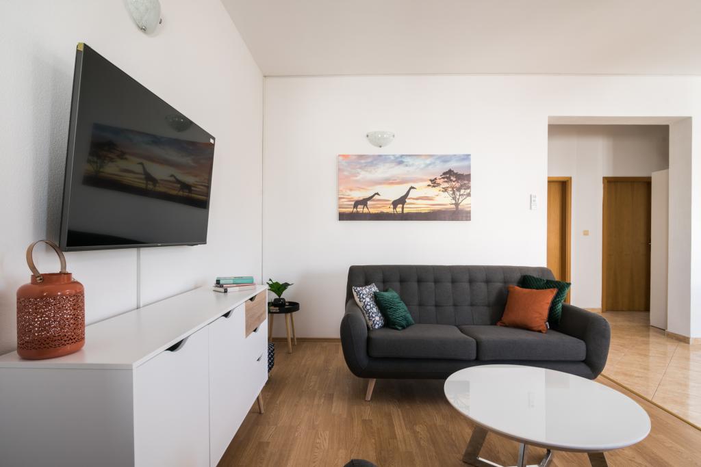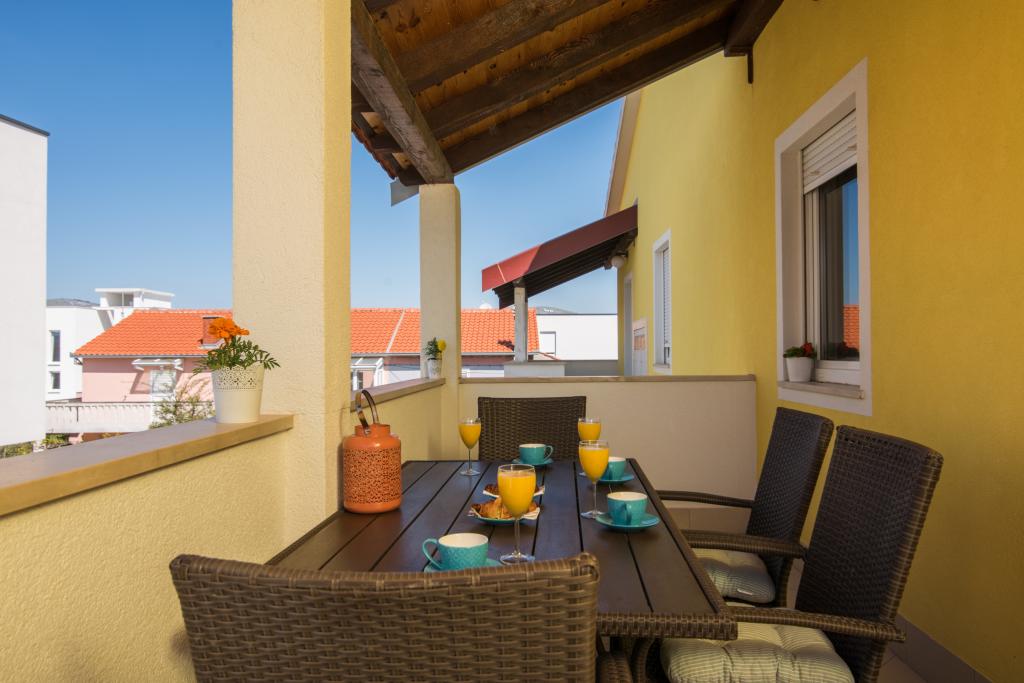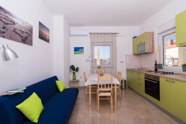 Fuldt og moderne udstyrede lejligheder i en rolig del af Okrug Gornji, 150 meter fra byens centrum. Lejlighederne indeholder alt, hvad du behøver, og hvad der skal gøre dit ophold så behageligt som muligt. Byens centrum - 5 minutters gang (nær posthus, marked, butikker, caféer, restauranter, apotek) og nærheden til alle strande gør vores faciliteter endnu mere interessante og attraktive. De rolige omgivelser i faciliteterne giver dig mulighed for at gøre dit ophold så behageligt som muligt, samt at nyde din morgenkaffe i ro og mag på terrassen foran lejligheden.