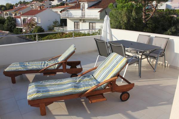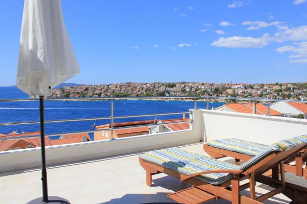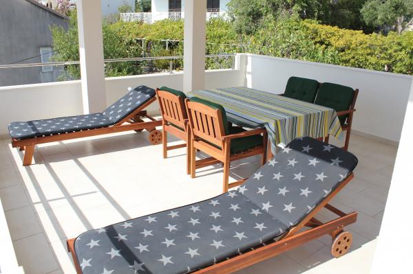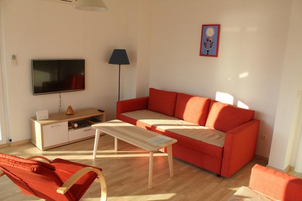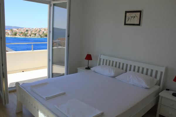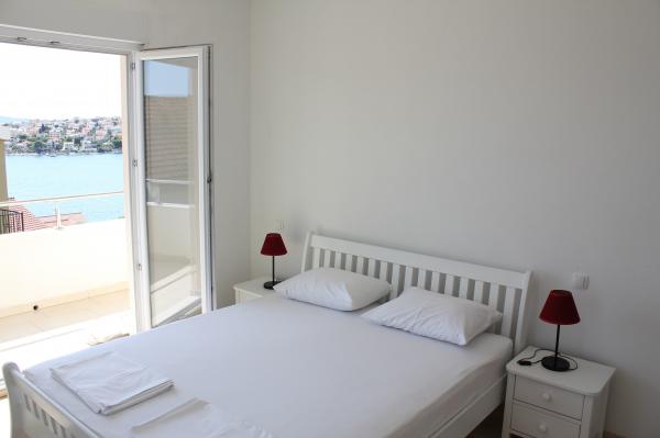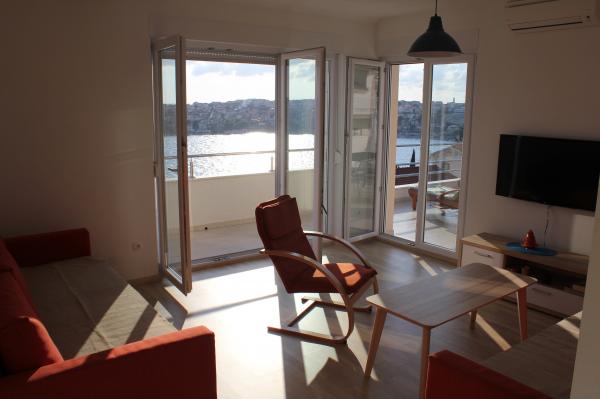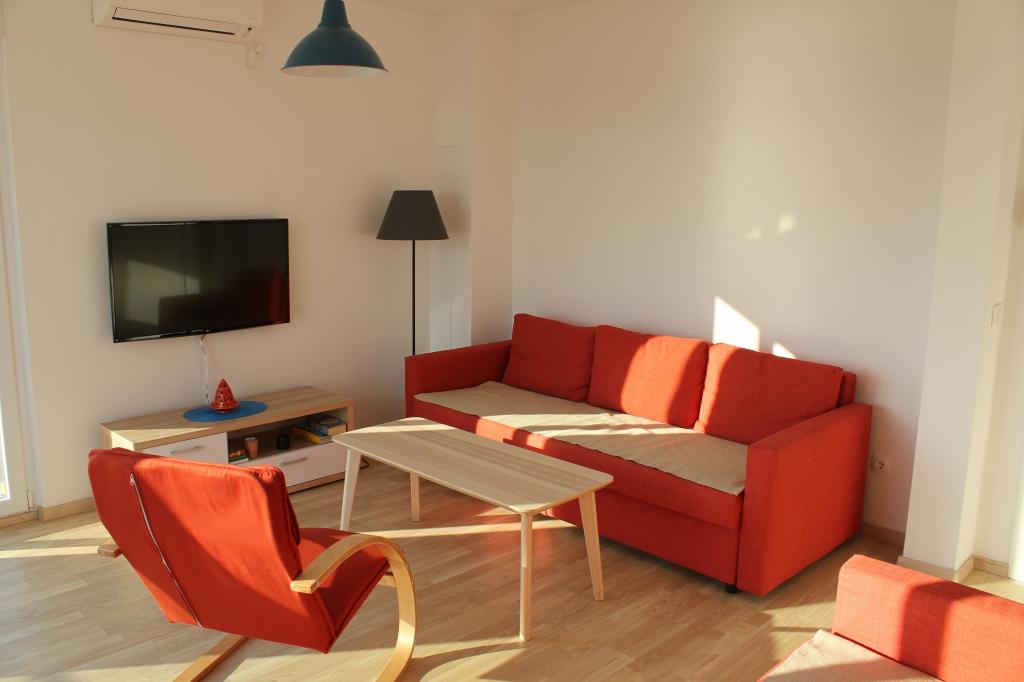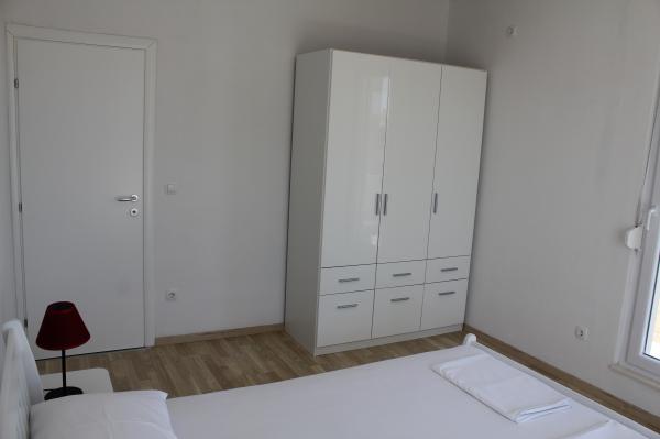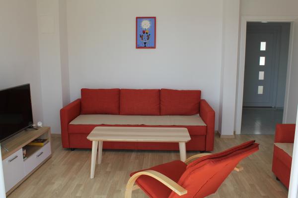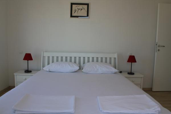 Sydvendte lejligheder er velegnede til individuelle besøgende, såvel som til par og mindre grupper og familier (4-5 personer). Lejlighederne er nybyggede og er udstyret med moderne materialer og apparater af høj kvalitet. Køkken, stue, soveværelse og badeværelse er tilgængelige fra gangen. Lejlighederne er luftige og lyse i alle rum med mulighed for dæmpning med persienner. Det indvendige rum (56m2) suppleres af en ekstra terrasse og balkon på 35m2, som er tilgængelige fra stue og soveværelse. De tilbyder en smuk udsigt over havet, som ligger 120 m væk. Lejligheden er udstyret med et 43' tv, WiFi, opvaskemaskine, keramisk kogeplade og ovn, køleskab, Nespresso-kaffemaskine, mikrobølgeovn. For en komfortabel søvn er sengene udstyret med pocketmadrasser og måler 160x200cm, samt kvalitetssengetøj. 2 udtrækssofaer (140x200cm) i stuen. Parkeringsplads. Vaskemaskine.