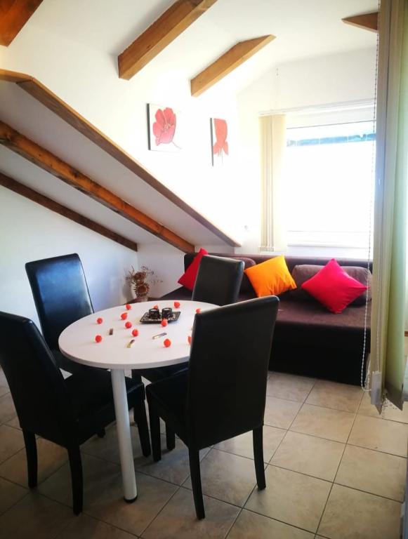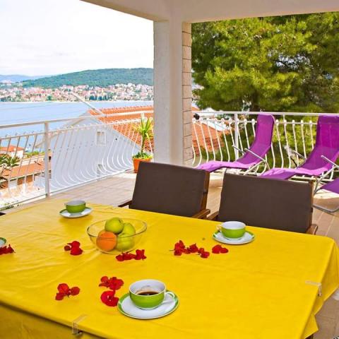 Lejlighederne er beliggende i Okrug Gornji, på adressen Planikovica VII / 3. De funktioner, der kendetegner rummet, hvor lejlighederne ligger, kan præsenteres som: klart hav, uberørt natur, et ideelt opholdssted for familier med børn og venner. Hver lejlighed har en smuk udsigt over havet og naturen fra dens altaner og rummelige terrasser. Hver lejlighed har privat parkering, aircondition og ret til gratis ubegrænset internet. Afstanden fra den gamle bydel i Trogir er kun 4,5 kilometer. I nærheden ligger den 2 km lange Copacabana-strand. Udover et behageligt ophold kan du finde en række sjove aktiviteter for alle aldre. På den vigtigste, allerede nævnte strand er der et stort antal barer, restauranter og butikker. Hvis du leder efter et behageligt ophold i et roligt sted, nær havet med solens stråler uden bilstøj, så er du på det rigtige sted Ap. 1 har 3 værelser hvert værelse har badeværelse og balkon Ap. 2 har 3 værelser med 2 badeværelser Ap 3 har 3 værelser VELKOMMEN