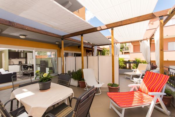 Vi boede her i 10 dage. Stort selskab på 11. Meget flotte lejligheder. Komfortable senge. Behageligt ophold. Meget tæt på havet. Du kan vælge mellem forskellige strande - sten eller småsten. Anbefalede.