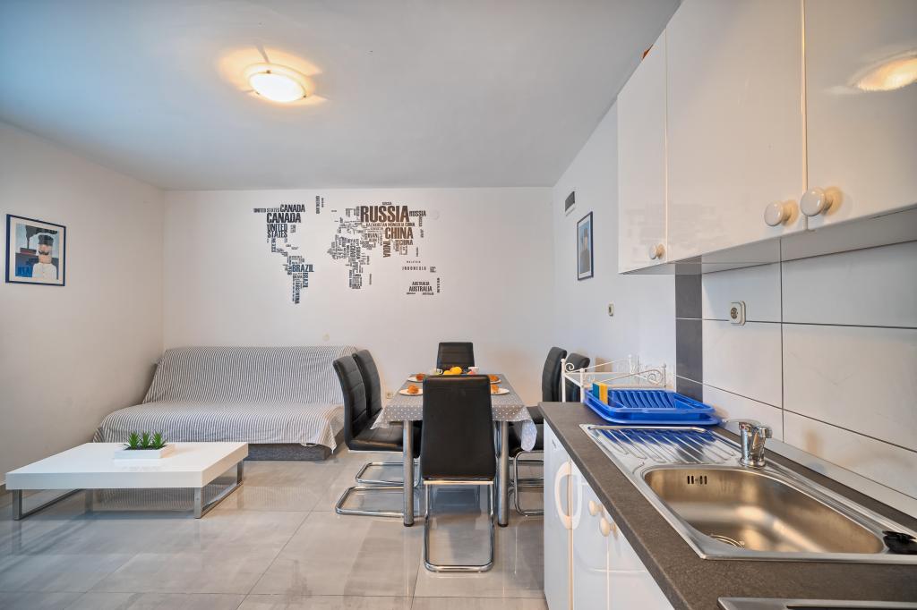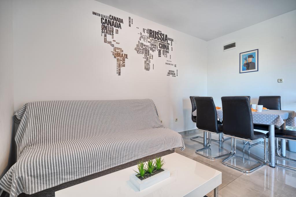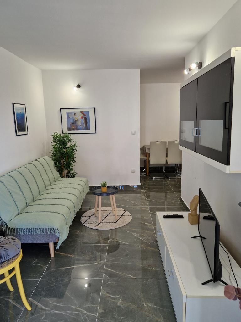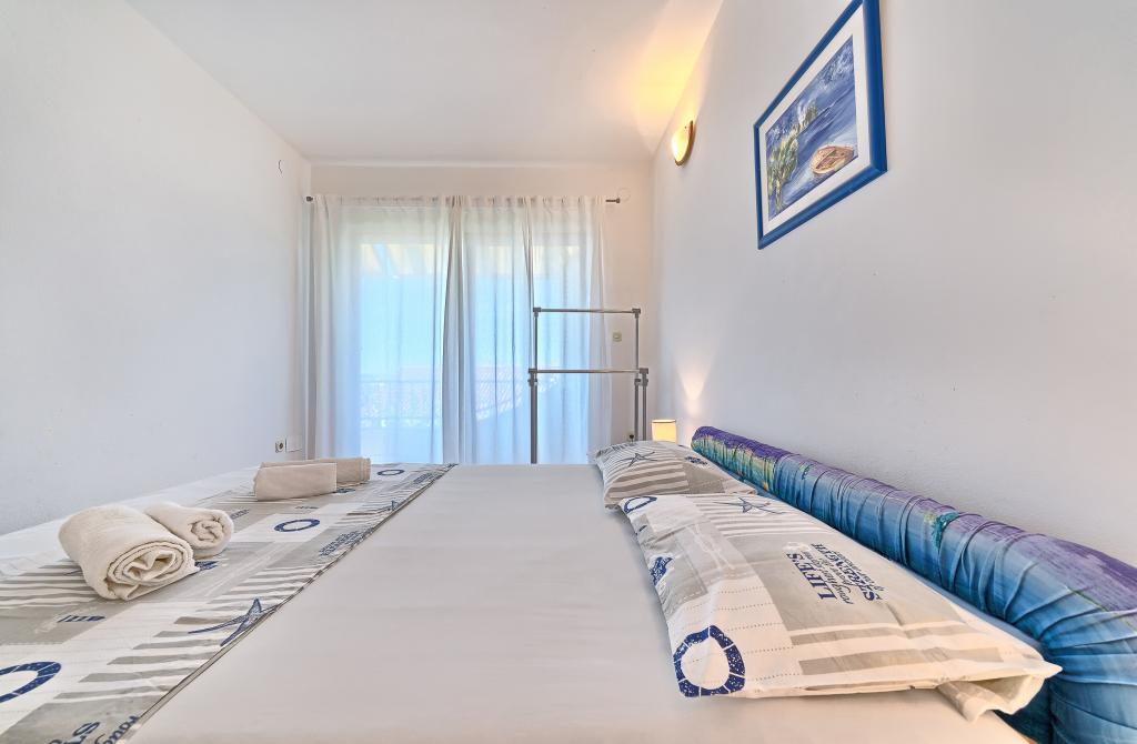 Helt perfekt plads, favorabel pris, lejlighed med direkte udsigt over havet og poolen, udendørs bruser ved poolen og liggestole for gæsternes komfort, vejen til parkeringspladsen er egentlig ret stejl og glat, vi manglede en butik i nærheden, men kvaliteten af boligen gjorde op for det.