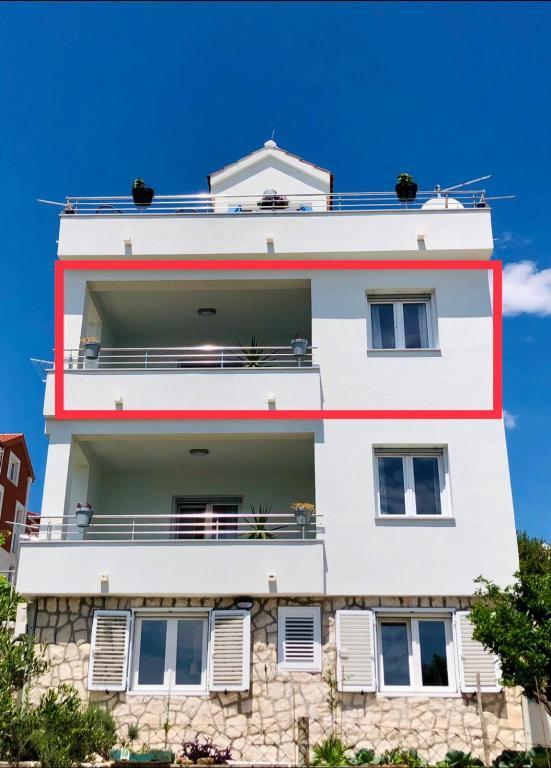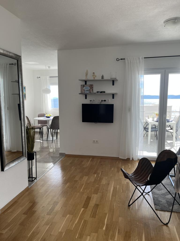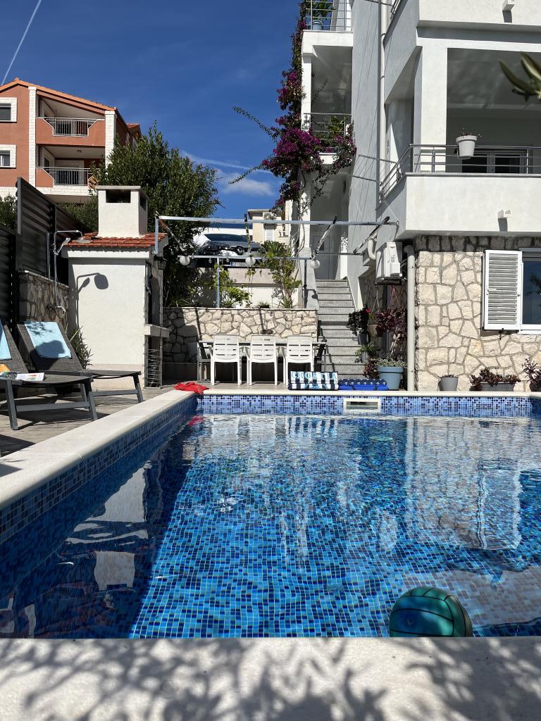 Vi boede i en lejlighed i en uge, to voksne og tre børn. Vi elskede stedet! Fantastisk lejlighed, ren og frisk. Balkonen og udsigten var fantastisk! Vi brugte poolen dagligt og var mere end tilfredse. Vi grillede også nede ved poolen et par aftener, og børnene syntes, det var hyggeligere end en restaurant. Beliggenheden er fantastisk! Der er flere forskellige muligheder for at svømme, enten på stranden eller på klipperne. Vores yngste er fire år gammel, og det var ikke noget problem for ham at gå til de forskellige steder. Det var lidt ind til "centrum" og et større købmandsforretning, men intet der føltes som et besvær uden en rimelig udflugt. Vi tog nemt med Uber til blandt andet Trogir. Darko er en vidunderlig vært, der kom med mange forskellige tips, og man kunne altid få fat i ham. Han var meget bekymret for vores velbefindende! Vi kommer tilbage.