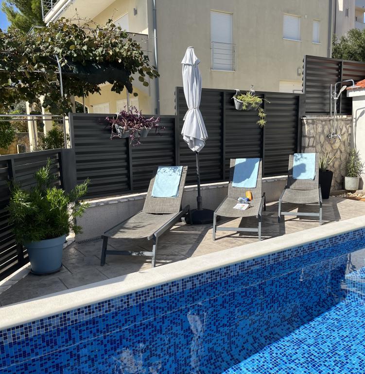 Sikke en dejlig uge vi havde i denne fantastiske lejlighed i et roligt og afslappet område. Lejligheden er i ny stand, har alt det udstyr, du har brug for, og en dejlig balkon med den bedste udsigt over havet. Udendørsområdet er dejligt med en dejlig opvarmet pool og liggestole ved siden af. Darko er virkelig en supervært, og han er altid tilgængelig for at hjælpe og give dig tips om området. Vi anbefaler virkelig denne indkvartering, hvis du leder efter en fantastisk lejlighed tæt på stranden i et roligt område. Nem booking- og betalingsproces. Nyd dit ophold!
