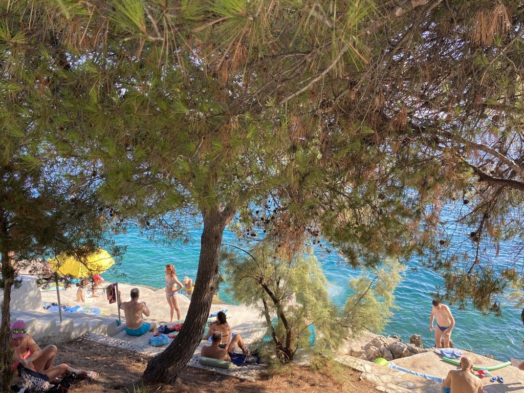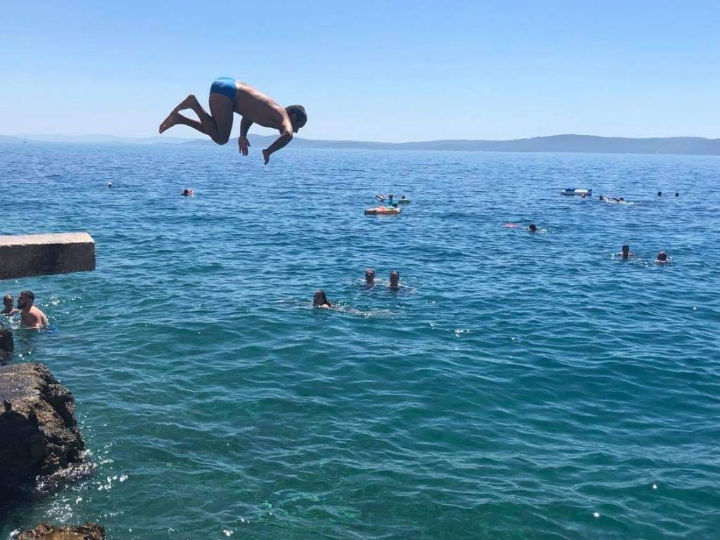 Morgenture langs et hav så blåt det gør ondt, morgenmad på balkonen med en magisk udsigt, moderne frisk lys med en dejlig gårdhave ved poolen, hvor vi spiste flere middage. Saltbade direkte under huset fra små saunaer/klipper. Dejlig stenstrand ca. 250 m fra huset, perfekt til mindre børn, lille sød købmand rundt om hjørnet. Ingen paxa-solsenge eller Eurodisco ved poolen, bare for at nyde. Fantastisk vært som hjælper med alt med stor tålmodighed, naboen har et taxaselskab og kørte os hvorhen vi ville, til/fra fly, udflugter til Trogir mv. Stærkt anbefale.