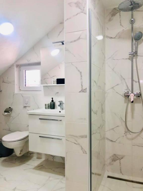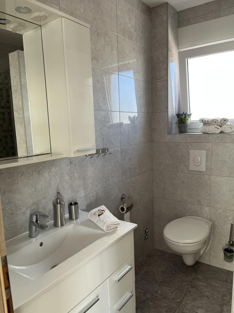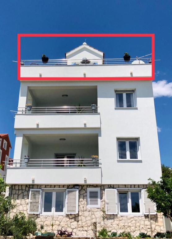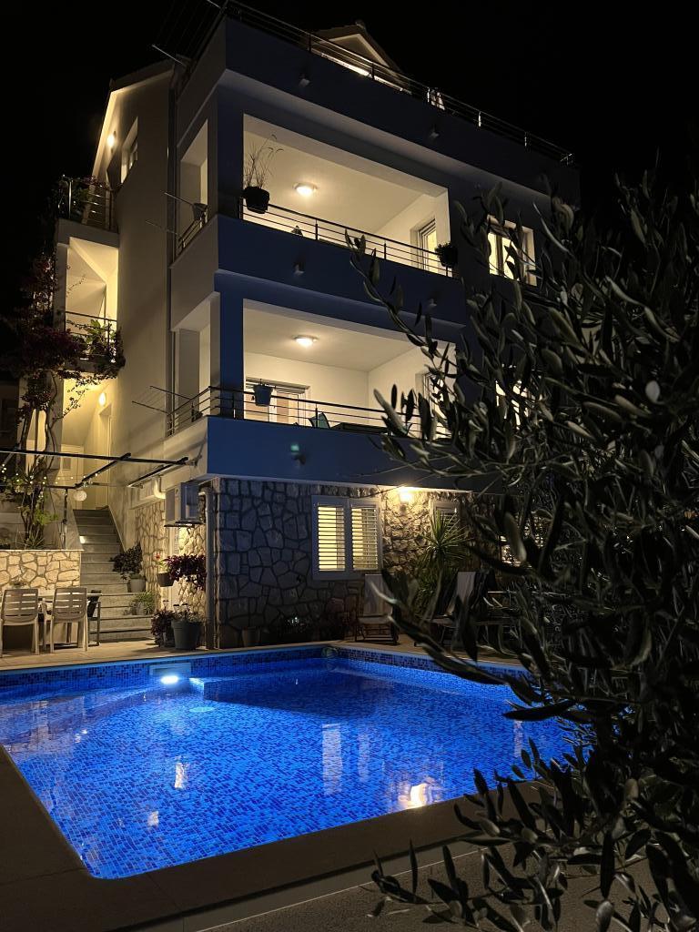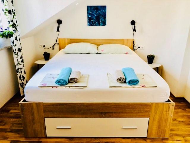 Vi lejede den øverste lejlighed, og vi kunne ikke være mere glade. Pladsen er ren og der er alt hvad du behøver. Udsigten fra terrassen er fantastisk!!! Der er et middagsbord og en lounge derude. En meget behagelig seng, opvaskemaskine, dejlig stor bruseniche og vaskemaskine gør din ferie nem. Poolen gør det meget behageligt, og i det haveområde er der også et brusebad, så du kan gå i bad, inden du går i poolen. 60 meter fra huset venter havet på dig, dejligt!!! Et minimarked er tæt på og flere caféer og gode restauranter. Gør dig selv en tjeneste og lej dette virkelig dejlige sted for en meget, meget god ferie. Darko og Niclas er de bedste værter, du kan ønske dig. De er opmærksomme, venlige og altid klar til at give dig gode tips om hvad du må og ikke må, når du er i Kroatien.