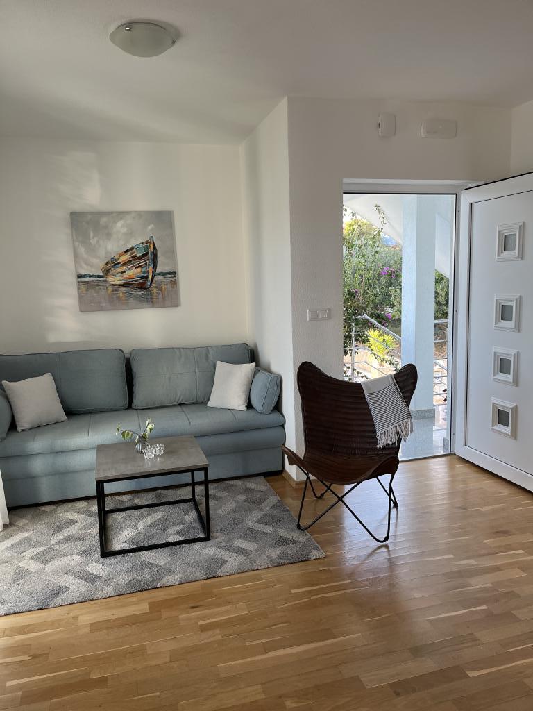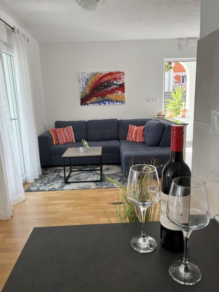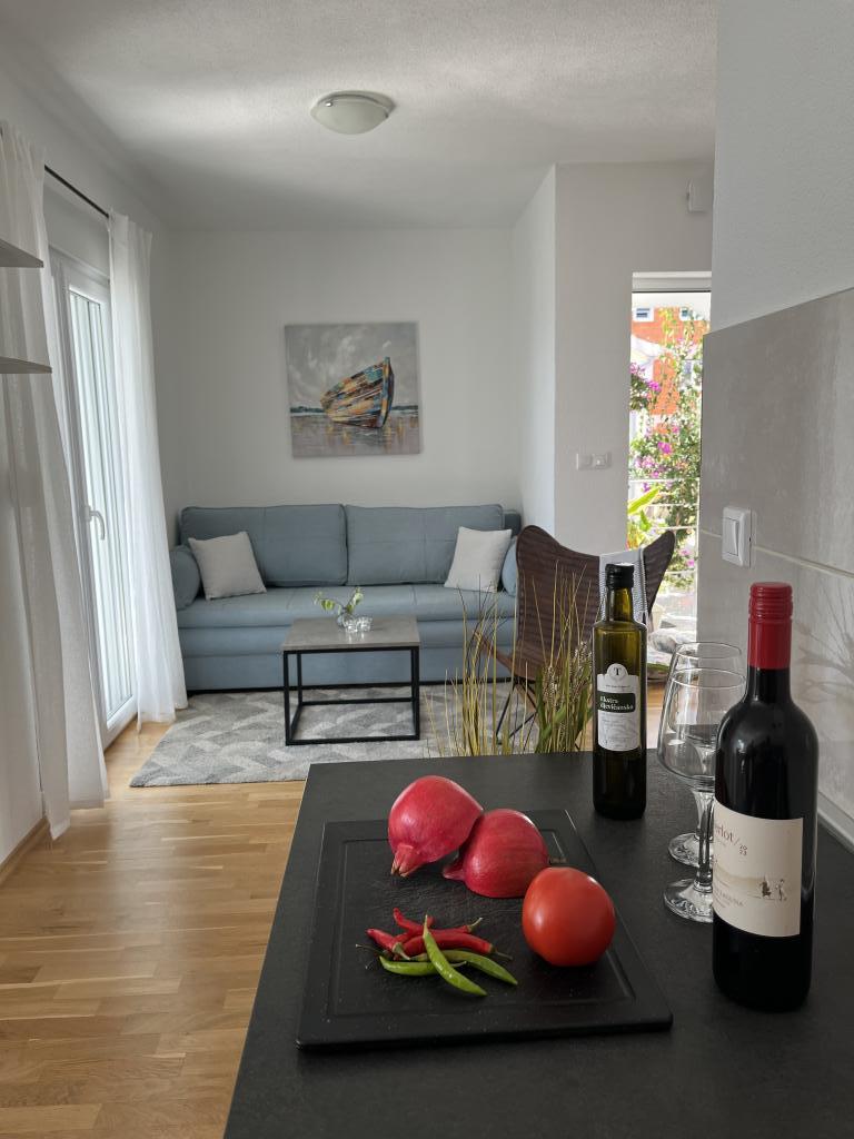 Høj standard på lejlighederne. Det er ligesom på billederne. Rent, ryddeligt og der mangler intet. Der er opvaskemaskine, mikroovn, kaffemaskine, vaskemaskine, tv. Grill, swimmingpool og liggestole på stedet. Meget tæt på havet. Fantastisk beliggenhed til korte og lange ture, fx Trogir, Split, Šibenik, Biokovo, Dubrovnik, Mostar ... Værten er meget venlig og tålmodig.