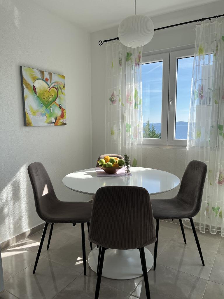 Vi bor i øjeblikket i lejligheden. Udsigten er vidunderlig. På balkonen, uanset tidspunkt på dagen, finder du skygge for at nyde en vidunderlig udsigt over havet. Hvert foto viser det faktiske udseende af lejligheden. Dette er den bedste lejlighed, vi hidtil har været i Kroatien. Jeg vil meget anbefale. Vi er sammen med en hund og to børn, og det er vidunderligt