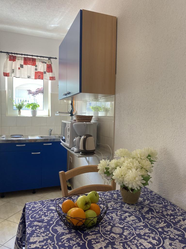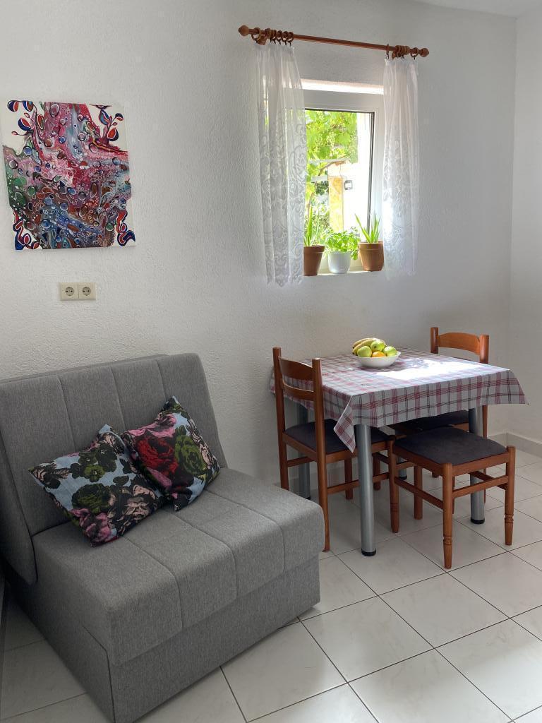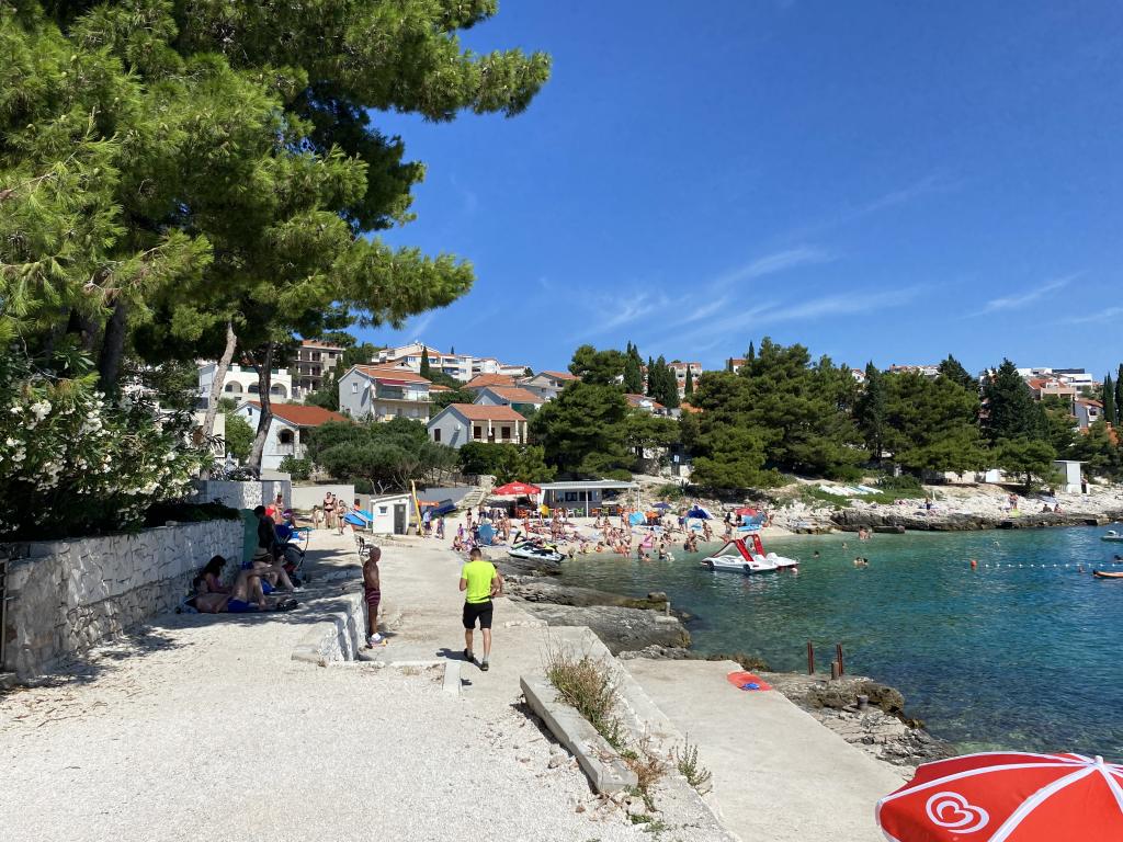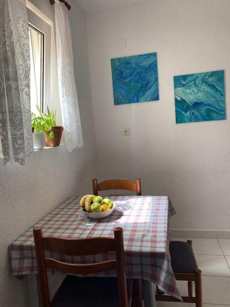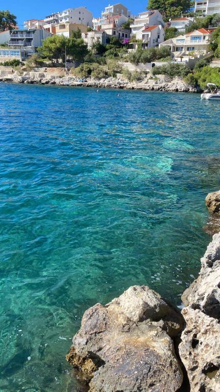 Dejlig lejlighed med det du har brug for. Fantastisk udsigt fra balkonen og en dejlig terrasse til morgenmad og middag. Det er roligt og et dejligt område. Perfekt til os som en familie på fire, 2 børn på 9 og 11 år. (Det er ret stejlt ned til havet (den tæt på), og fortovet er ru, så jeg anbefaler ikke klapvogne eller kørestole.) Nem adgang uanset om du ønsker at svømme fra klipperne med stiger, mine piger foretrak dette, eller hvis du vil gå til stranden med småsten. Vandet er fantastisk!! Så klart! Vi havde 2 vidunderlige uger, og Darko og hans forældre er fantastiske og så hjælpsomme.