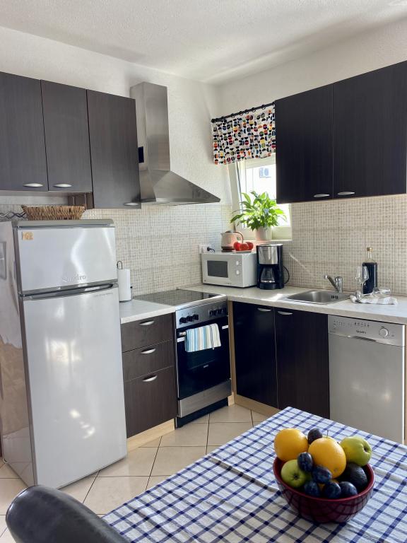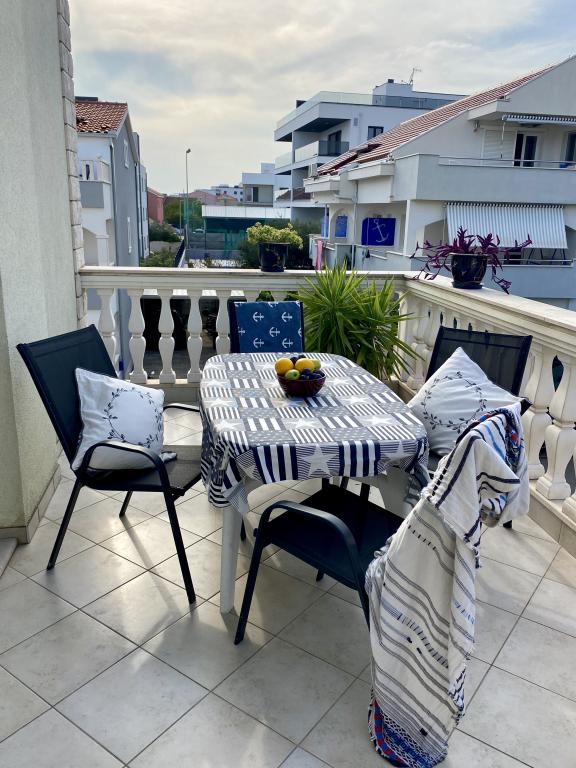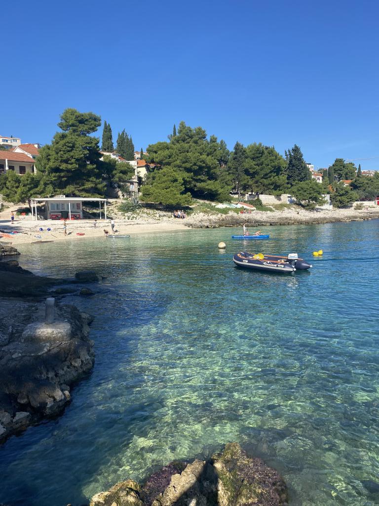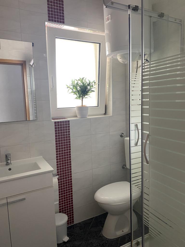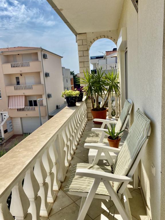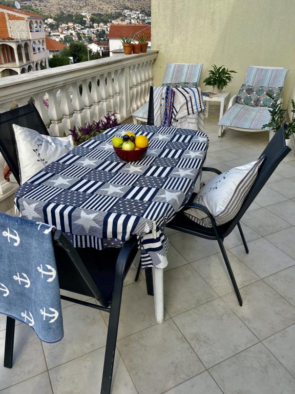 Dejlig lejlighed med det du har brug for. Fantastisk udsigt fra balkonen og en dejlig terrasse til morgenmad og middag. Det er roligt og et dejligt område. Perfekt til os som en familie på fire, 2 børn på 9 og 11 år. (Det er ret stejlt ned til havet (den tæt på), og fortovet er ru, så jeg anbefaler ikke klapvogne eller kørestole.) Nem adgang uanset om du ønsker at svømme fra klipperne med stiger, mine piger foretrak dette, eller hvis du vil gå til stranden med småsten. Vandet er fantastisk!! Så klart! Vi havde 2 vidunderlige uger, og Darko og hans forældre er fantastiske og så hjælpsomme.