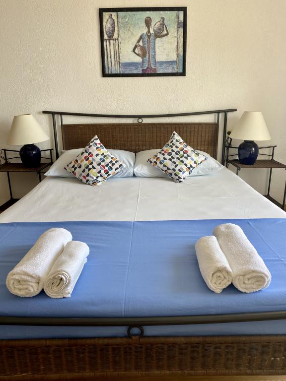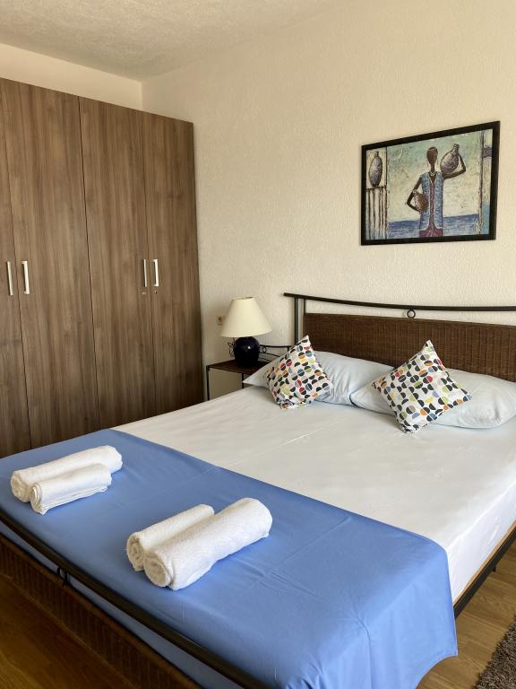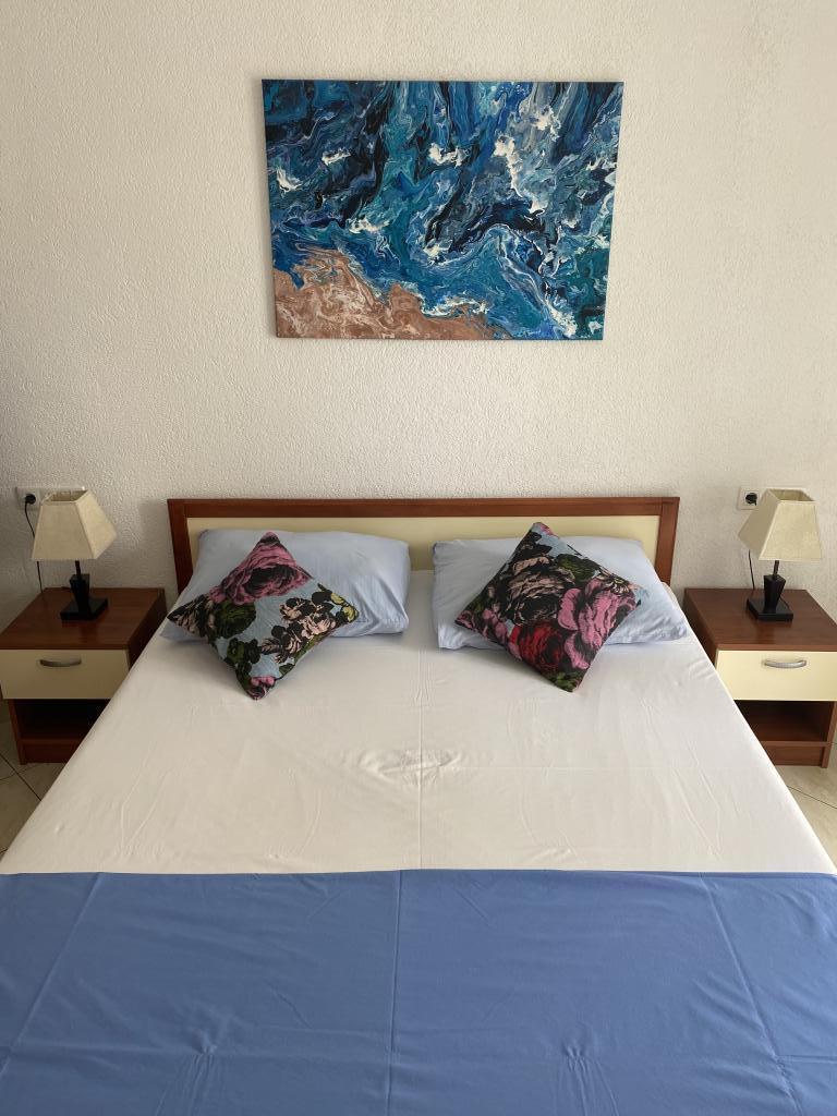 En hyggelig lejlighed på 3. sal med havudsigt fra den ene balkon. Perfekt med to balkoner, så man kan vælge sol/skygge. Den ene er lidt større, og det er perfekt at sidde og spise der. Et godt køkken med alt hvad man behøver for at klare hverdagen. Aircondition i køkkenet, gode ventilatorer i soveværelserne. To gode soveværelser med dobbeltsenge. God parkering inden for portene, og området er roligt og føltes trygt og sikkert. Meget god kontakt med udlejer og familie. De var yderst imødekommende og hjælpsomme.