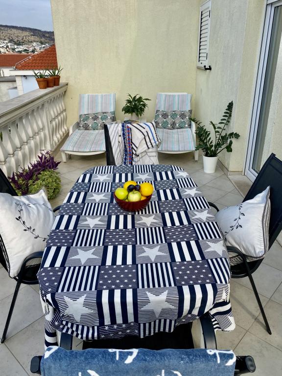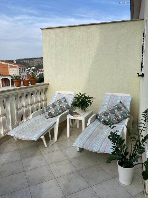 Perfekt indkvartering for os. Frisk, ren og alle nødvendige faciliteter til morgenmad og middag var tilgængelige. Køleskab og fryser, mikroovn, kaffemaskine. Vaskemaskine, klimaanlæg og bruser osv. Tæt på havet, måske lidt mere end 100 m, mange badesteder ligger meget tæt på, man kan svømme langs hele kysten, mest klipper men også strande. Vi boede på 2. sal. 2 altaner i 2 forskellige retninger med havudsigt. Stille og fredeligt, tæt på flere restauranter, gåafstand til butikker og restauranter, strand og biludlejning. Hvis du ønsker at nå natteliv som Trogir, er det tæt på med taxa. Vi vil være tilbage. Tak Darko for en vidunderlig ferie. Vi kan varmt anbefale både Darka og lejligheden. Han er også meget venlig og gav gode tips om mad og seværdigheder. Anne og Johan med deres familie.