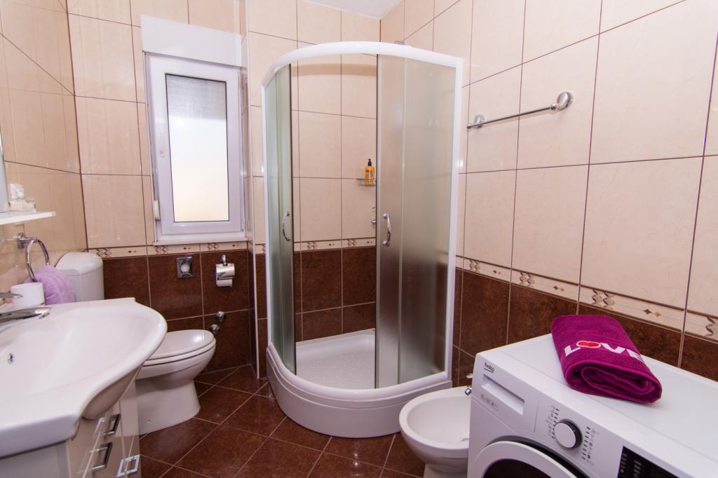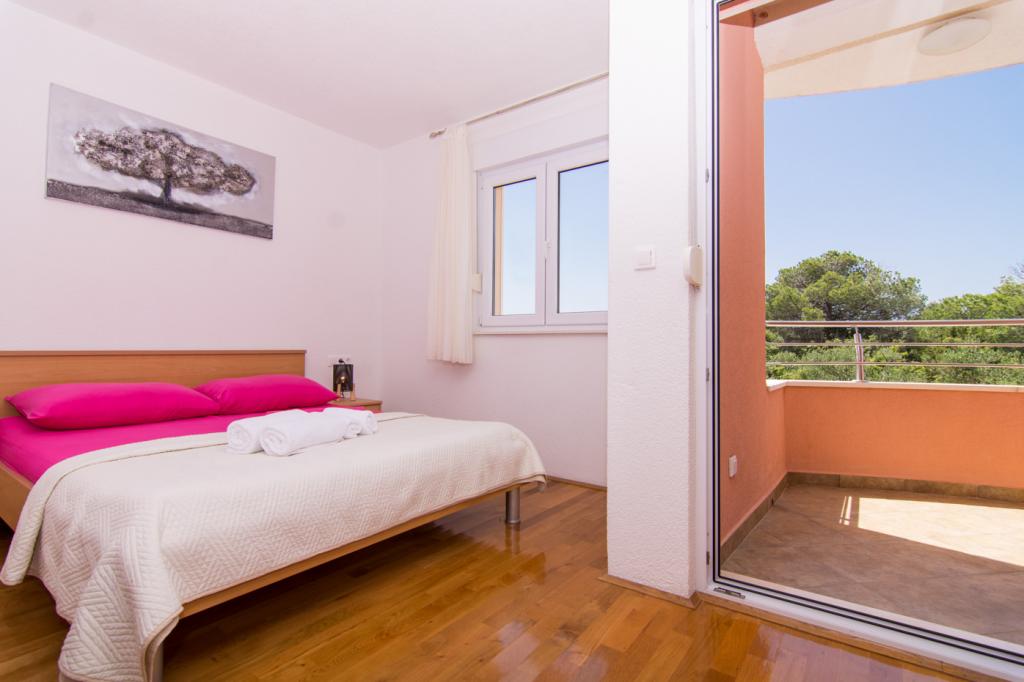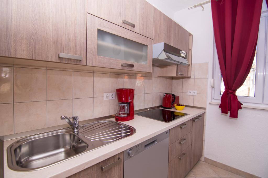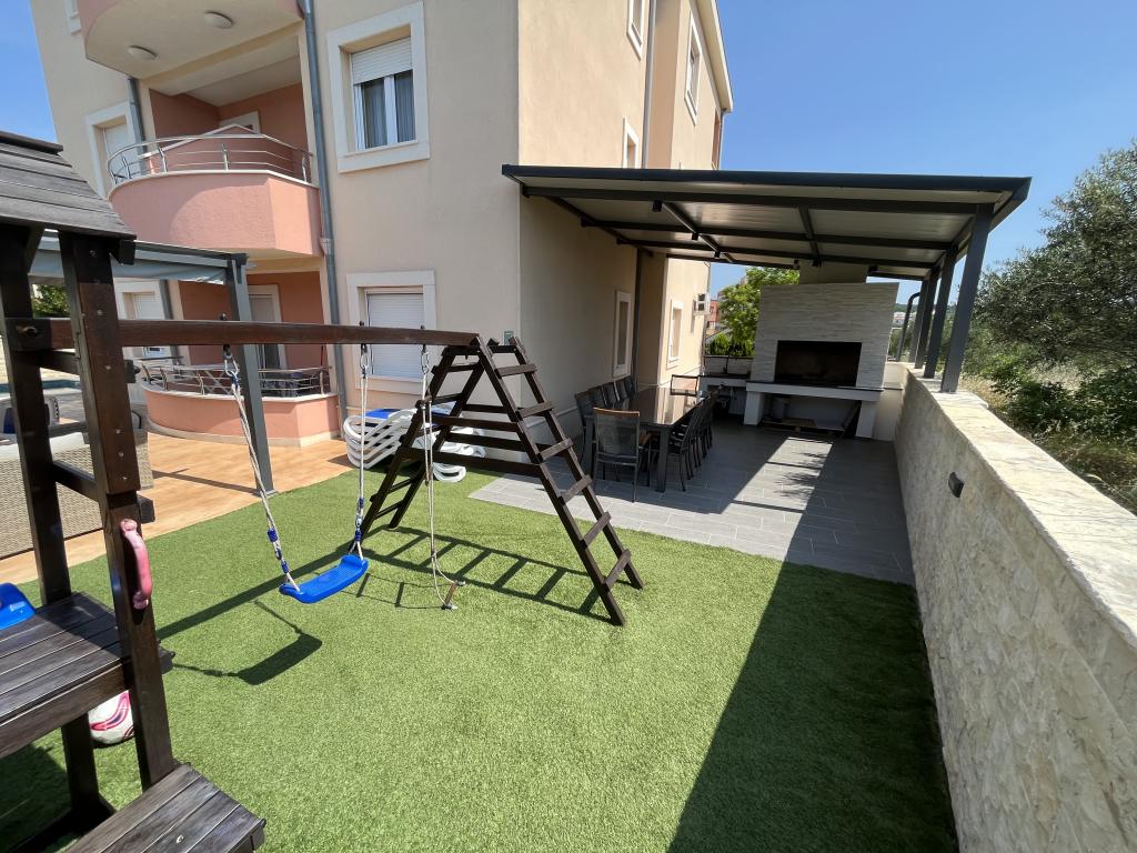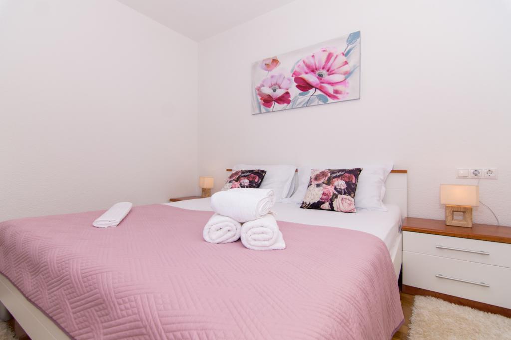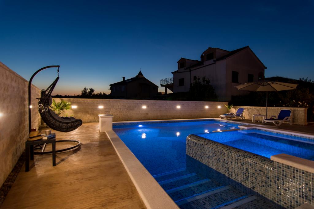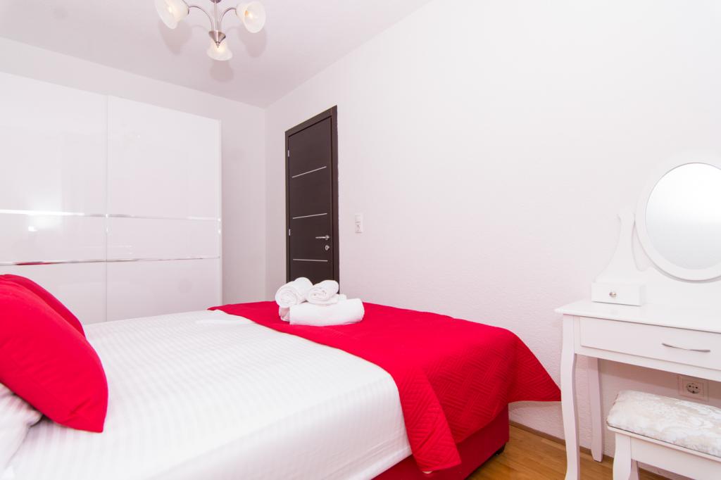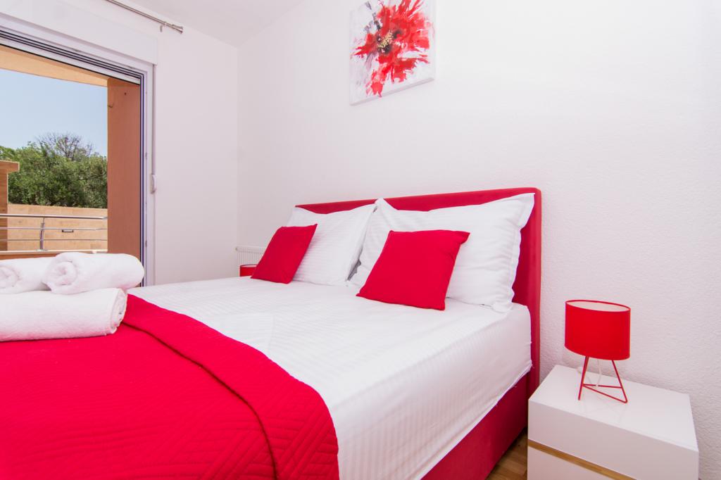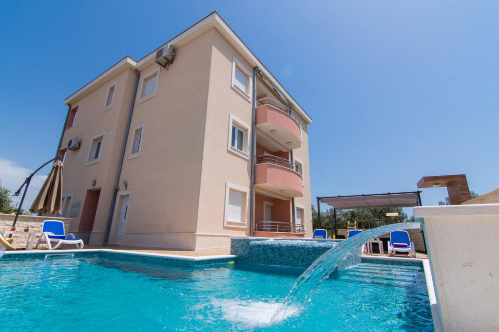 Apartments Villa Peky er moderne udstyret og har aircondition og ligger i et familiehus på øen Čiovo i Okrug Gornji. To A2 2 lejligheder og en 4 2 lejlighed kan huse op til 14 personer. Der er en parkeringsplads til gæster foran huset. På bagsiden af huset er der en opvarmet swimmingpool med jacuzzi, en legeplads og en overdækket udendørs grill med et stort bord. Den mest populære destination i Trogir-regionen er Okrug Gornji på øen Čiovo med dens smukke strand. Den gamle landsby Okrug ligger på toppen af en lille bakke, i bunden af hvilken er en fiskerihavn, omkring 4 km fra centrum af Trogir eller 8 km fra Split lufthavn. På stranden i Okrug Gornji kan du leje en scooter, jetski, du kan nyde parasailing og andre aktiviteter på havet. Om sommeren i Okrug kan du også nyde skyggen af caféer eller restauranter, der tilbyder dalmatiske specialiteter ud over andre retter. Dykkerskolen Trogir Diving Center i Mavarčica vil introducere dig til skønhederne i undersøen i det centrale Dalmatien.