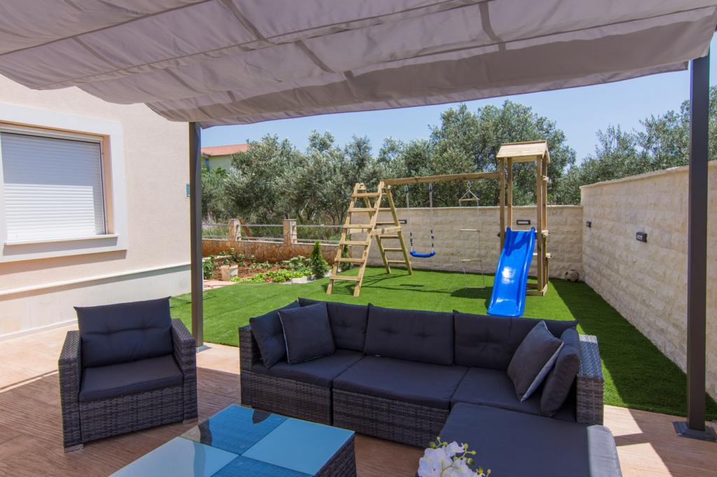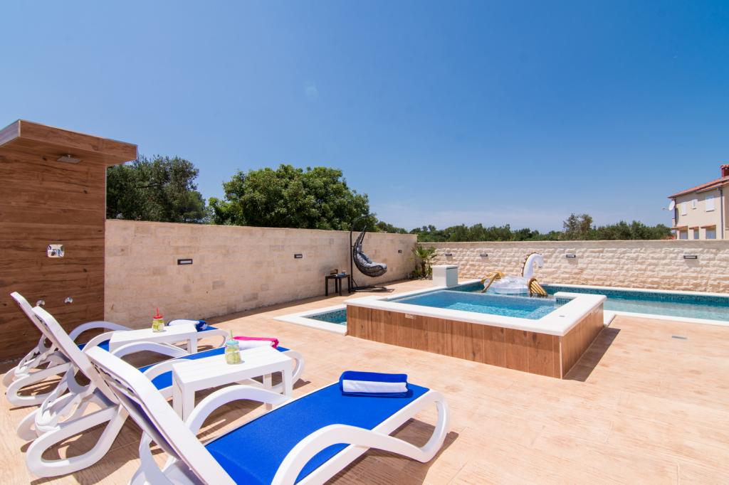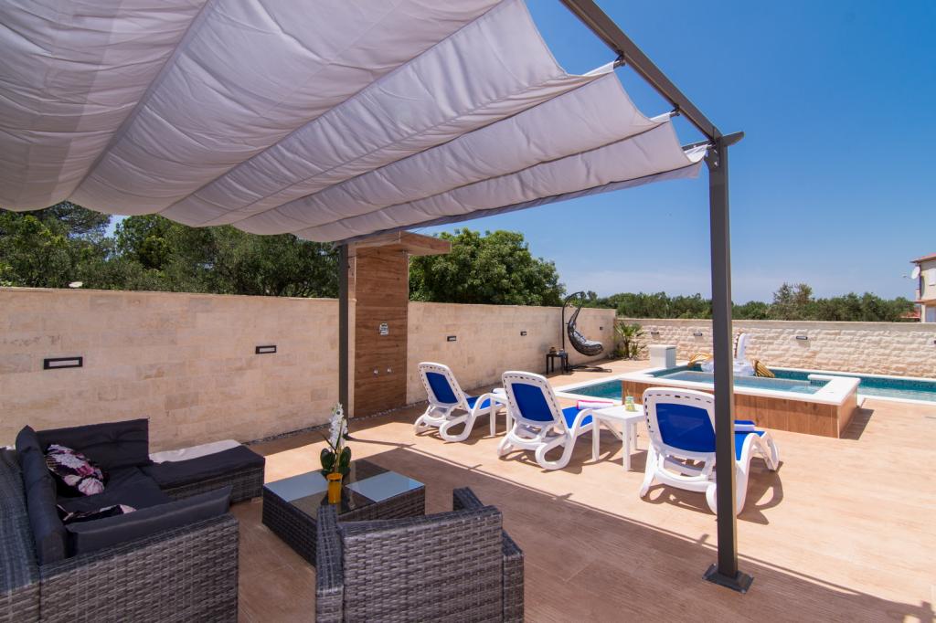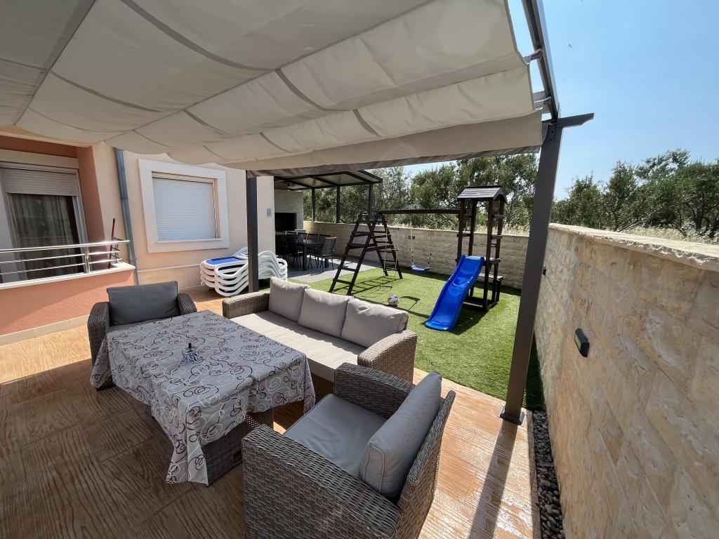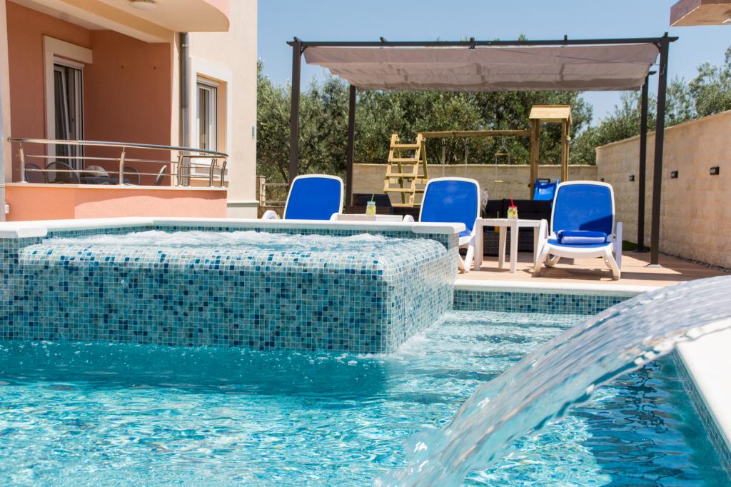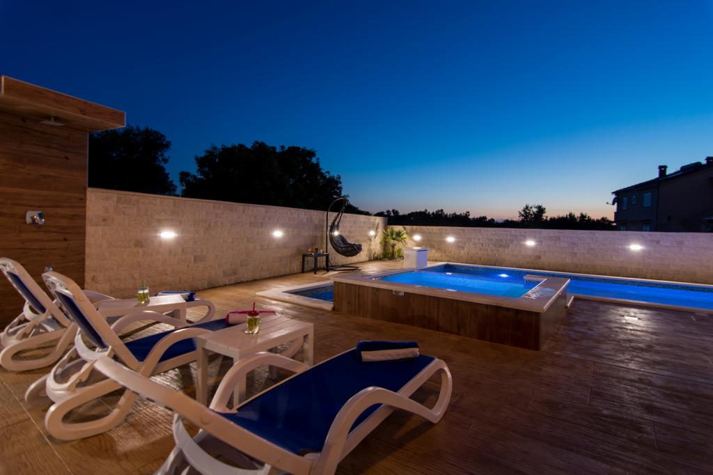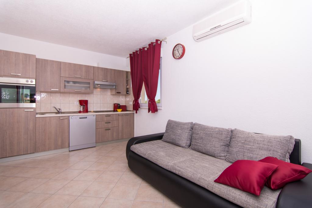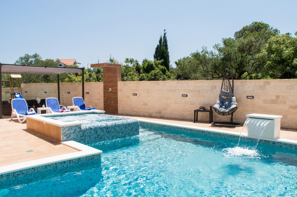 Apartments Villa Peky er moderne udstyret og har aircondition og ligger i et familiehus på øen Čiovo i Okrug Gornji. To A2 2 lejligheder og en 4 2 lejlighed kan huse op til 14 personer. Der er en parkeringsplads til gæster foran huset. På bagsiden af huset er der en opvarmet swimmingpool med jacuzzi, en legeplads og en overdækket udendørs grill med et stort bord. Den mest populære destination i Trogir-regionen er Okrug Gornji på øen Čiovo med dens smukke strand. Den gamle landsby Okrug ligger på toppen af en lille bakke, i bunden af hvilken er en fiskerihavn, omkring 4 km fra centrum af Trogir eller 8 km fra Split lufthavn. På stranden i Okrug Gornji kan du leje en scooter, jetski, du kan nyde parasailing og andre aktiviteter på havet. Om sommeren i Okrug kan du også nyde skyggen af caféer eller restauranter, der tilbyder dalmatiske specialiteter ud over andre retter. Dykkerskolen Trogir Diving Center i Mavarčica vil introducere dig til skønhederne i undersøen i det centrale Dalmatien.